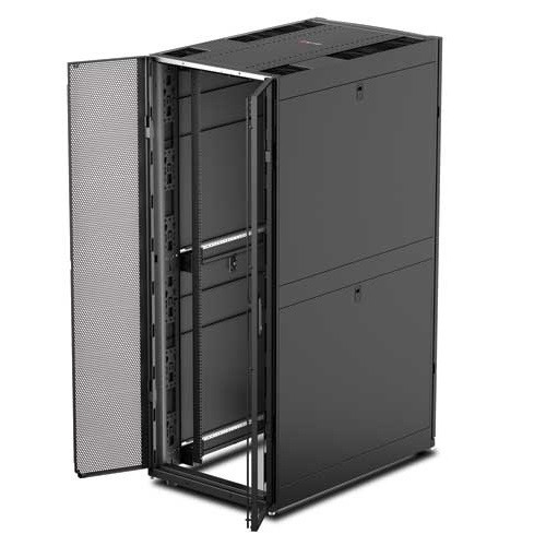 - The APC NetShelter SX 42U features a sturdy steel frame with perforated front and rear doors, optimising airflow and heat dissipation for high-density IT environments.
