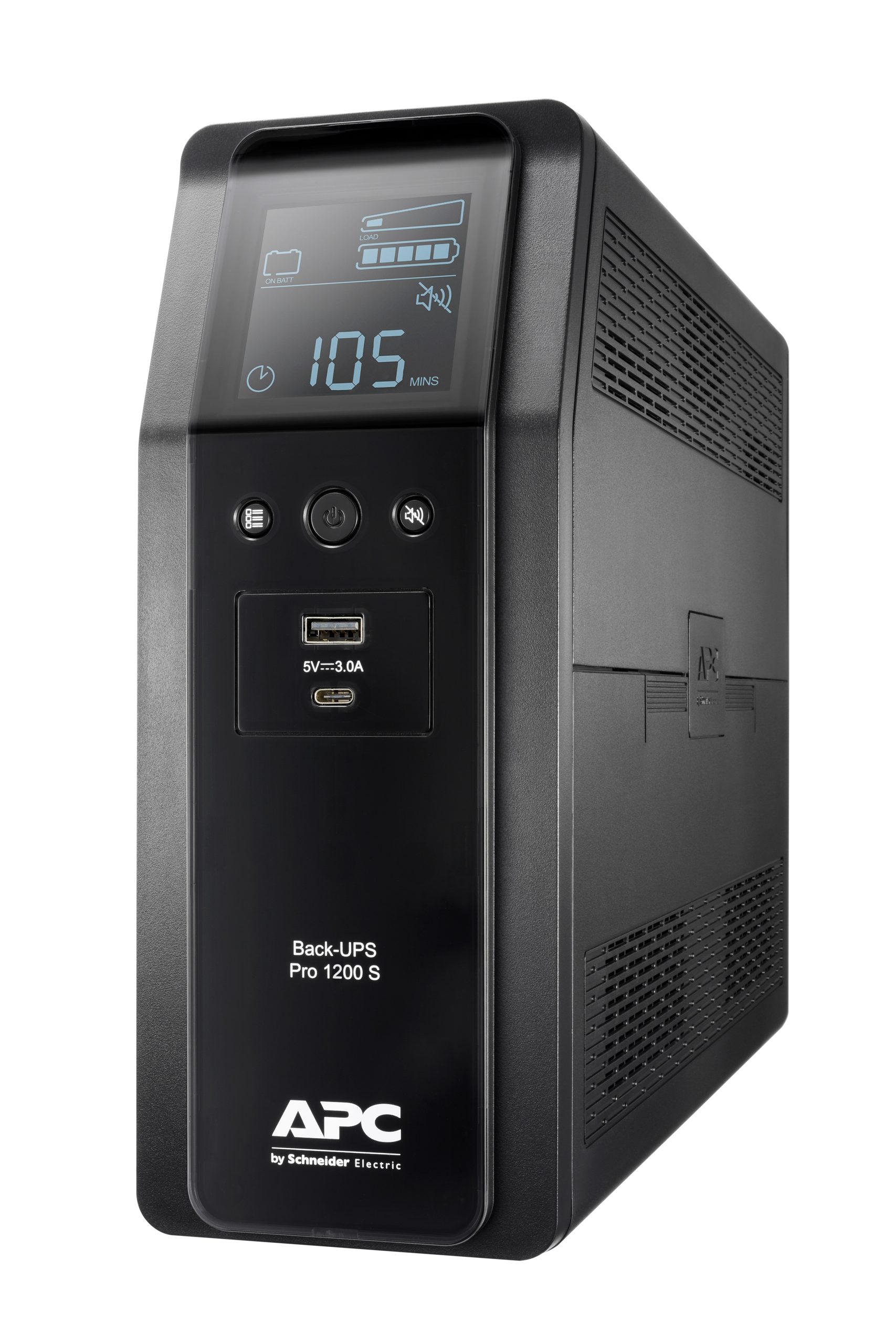 The APC BACK UPS PRO BR 1200VA uninterruptible power supply (UPS) features a compact, robust design suitable for office and server room environments. Its sleek black chassis with an intuitive LCD panel blends functionality with professional aesthetics. The unit’s form factor allows for flexible placement, optimising space without compromising accessibility.