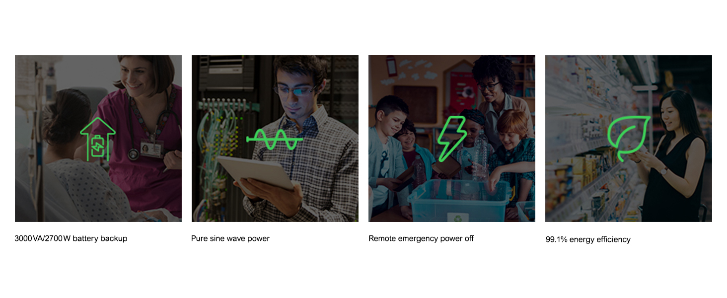 - High-capacity 3000VA/2700W power rating supports multiple servers and networking equipment simultaneously.