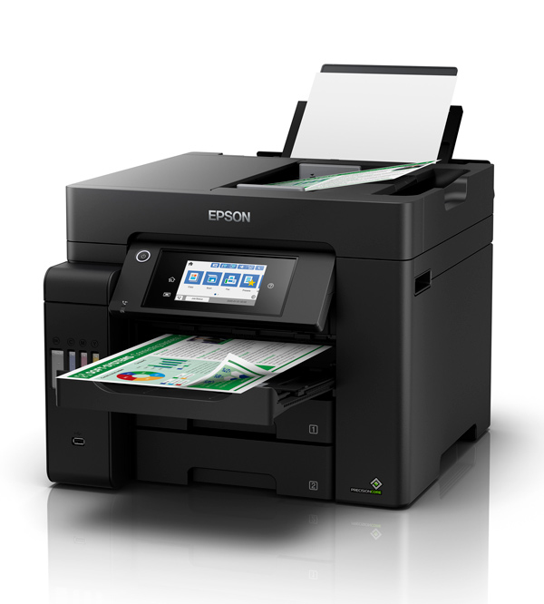 - The Epson EcoTank Pro ET-5800 uses precision core technology to deliver sharp text and vibrant colour prints, enhancing professional document presentation.
