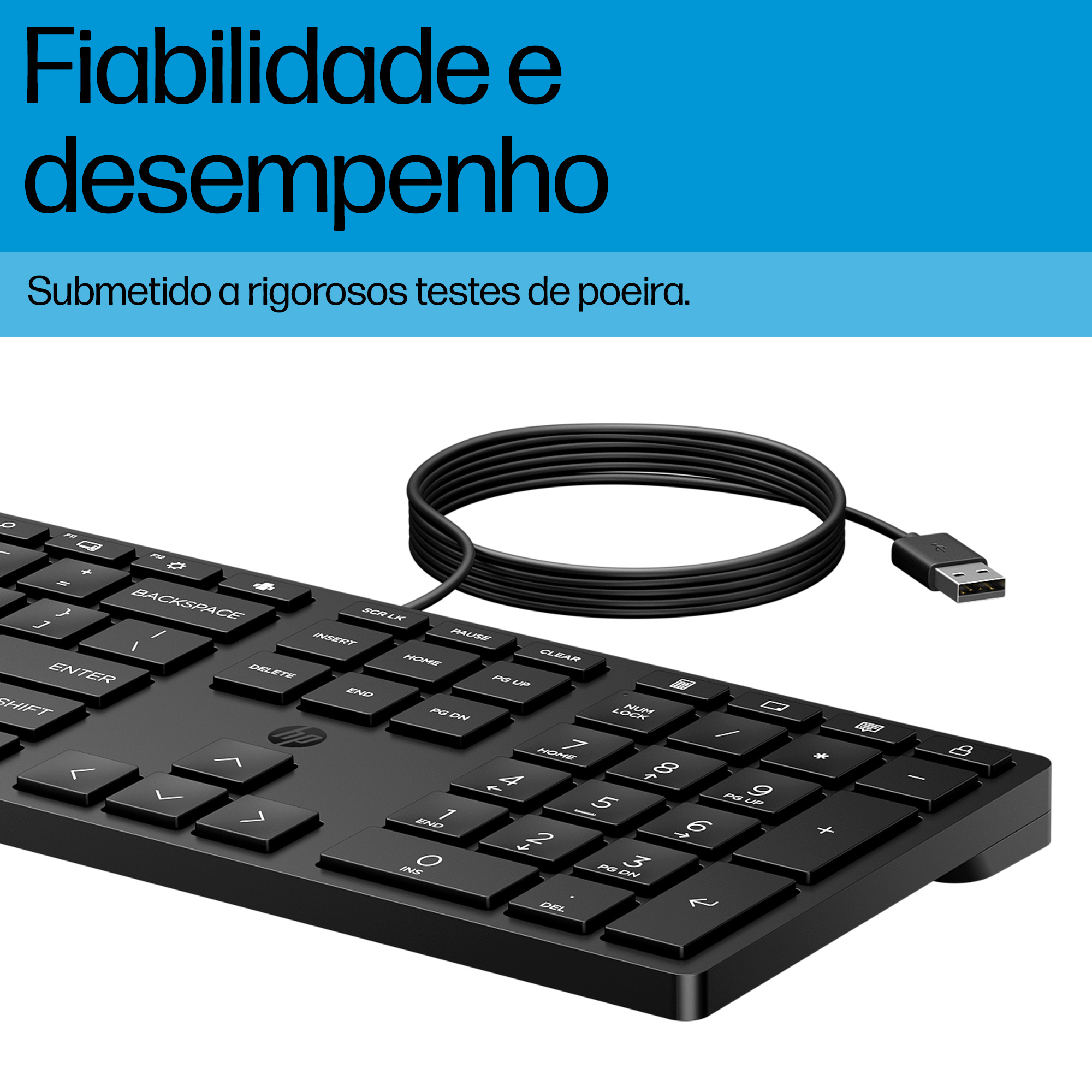 The HP 320K Wired keyboard features a sleek, professional design with low-profile keys that provide tactile feedback without excessive noise. Its matte finish resists fingerprints and smudges, maintaining a clean appearance in shared workspaces. The keyboard’s compact footprint fits comfortably on any desk, making it suitable for both open-plan offices and home workstations.