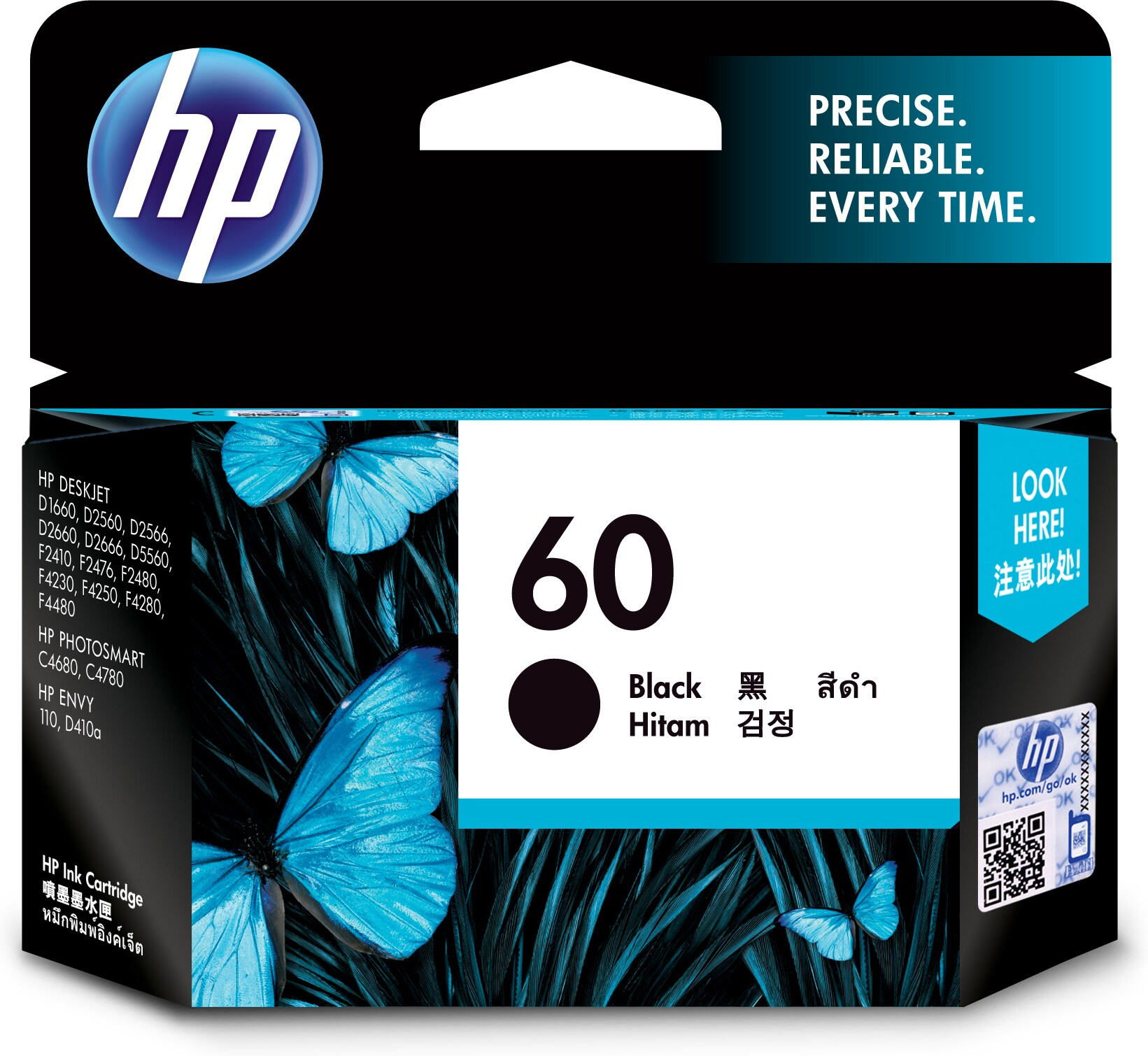 The HP 60 Black ink cartridge features a compact, ergonomic design that fits securely into compatible printers. Its robust casing protects the ink from drying out, ensuring longevity and reliability. The cartridge’s sleek black exterior aligns with HP’s professional branding, making it easy to identify during routine maintenance. Overall, it combines functionality with a clean, practical design suited for busy office environments.