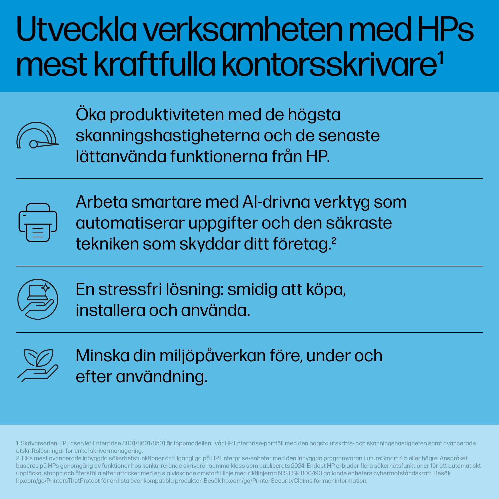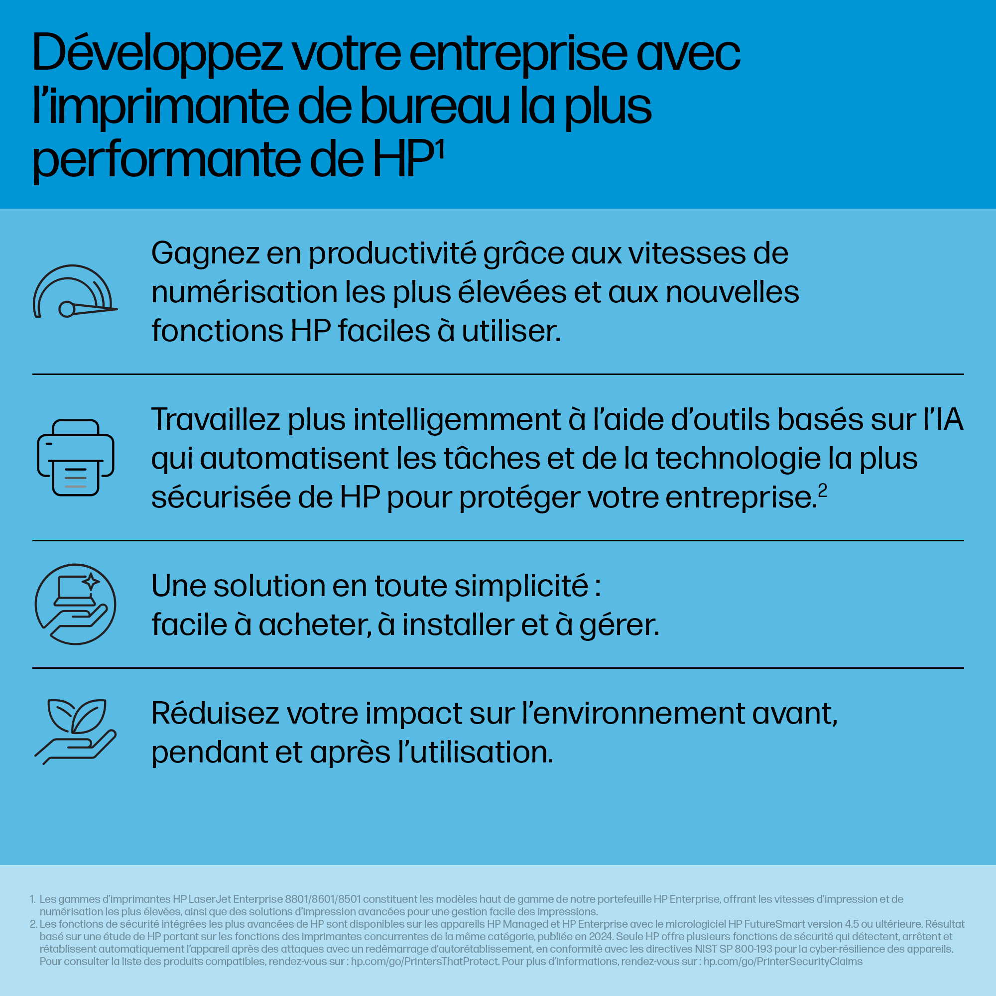 - Equipped with HP’s JetIntelligence technology, the printer delivers faster print speeds and improved toner efficiency, reducing overall cost per page.
