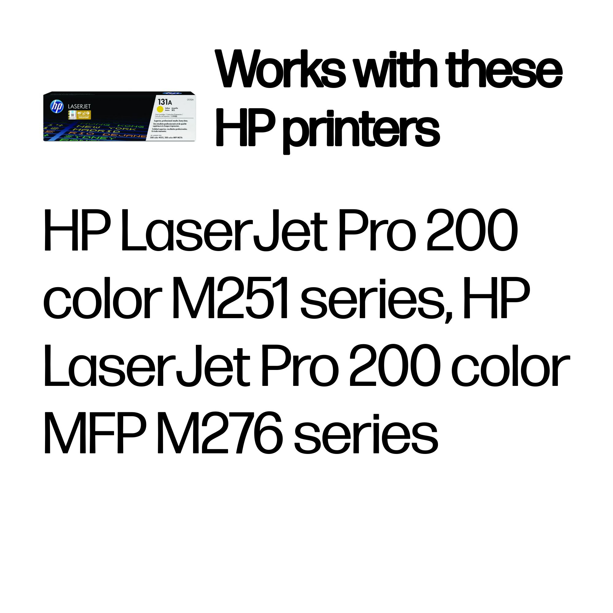 - The HP 131A Yellow Original LaserJet toner cartridge SKU: CF212A uses advanced toner formulation to produce sharp, vibrant yellow prints that resist fading over time, ideal for business reports and marketing collateral.