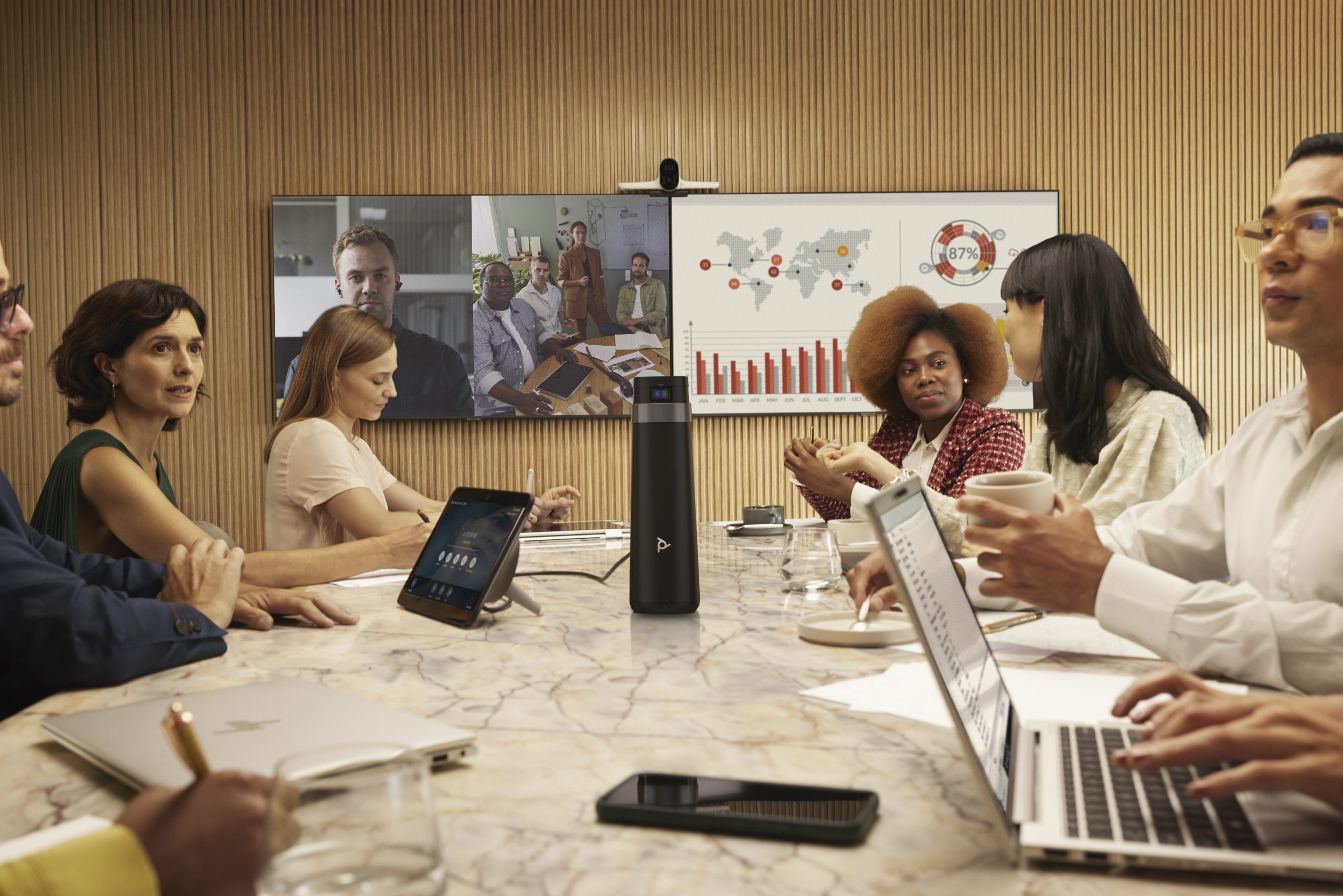 - 4K Ultra HD video quality with AI-driven auto-framing and speaker tracking for crystal-clear meetings.
