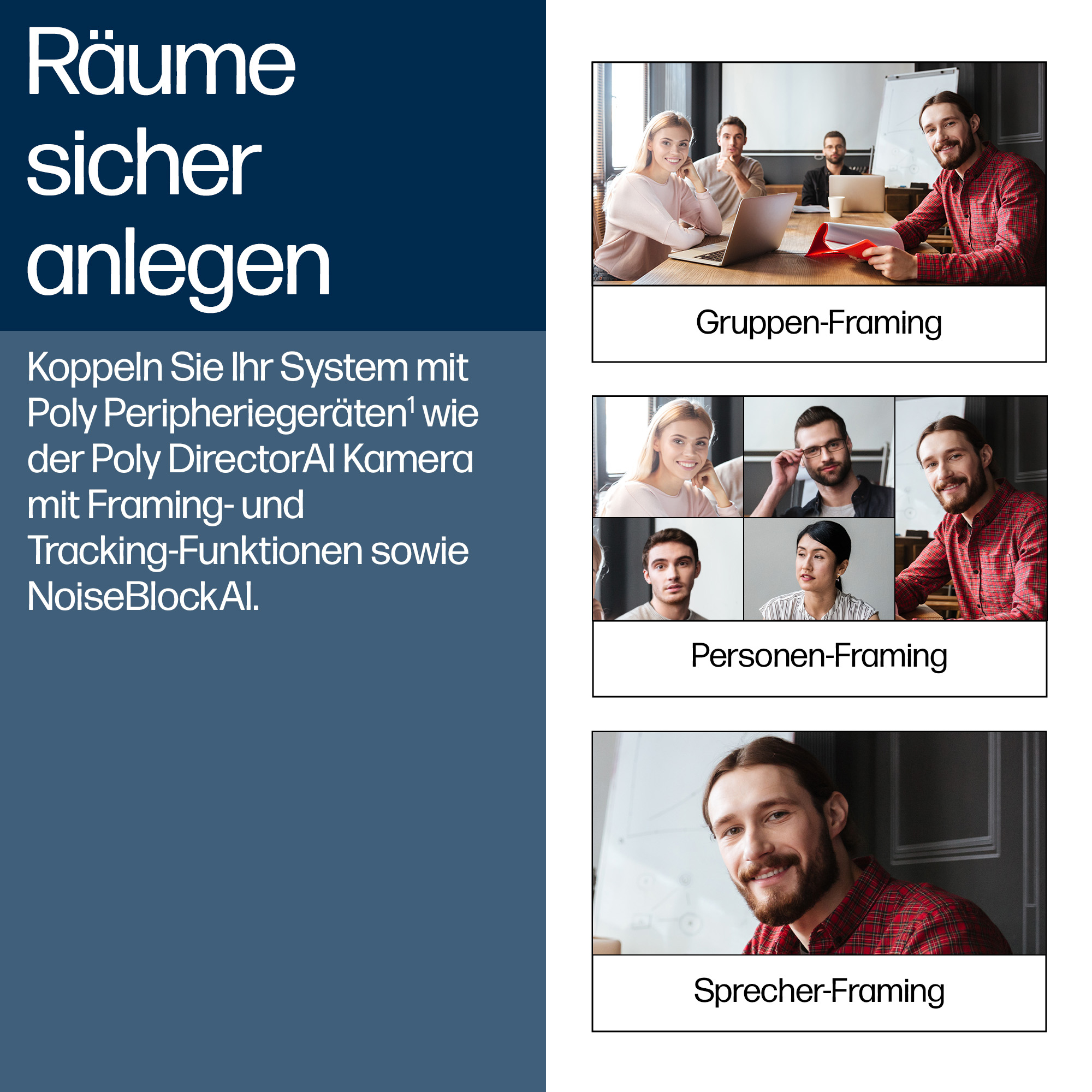 - The Poly Studio G62 utilises advanced AI technology to automatically adjust framing and focus, ensuring all participants are clearly visible without manual intervention.