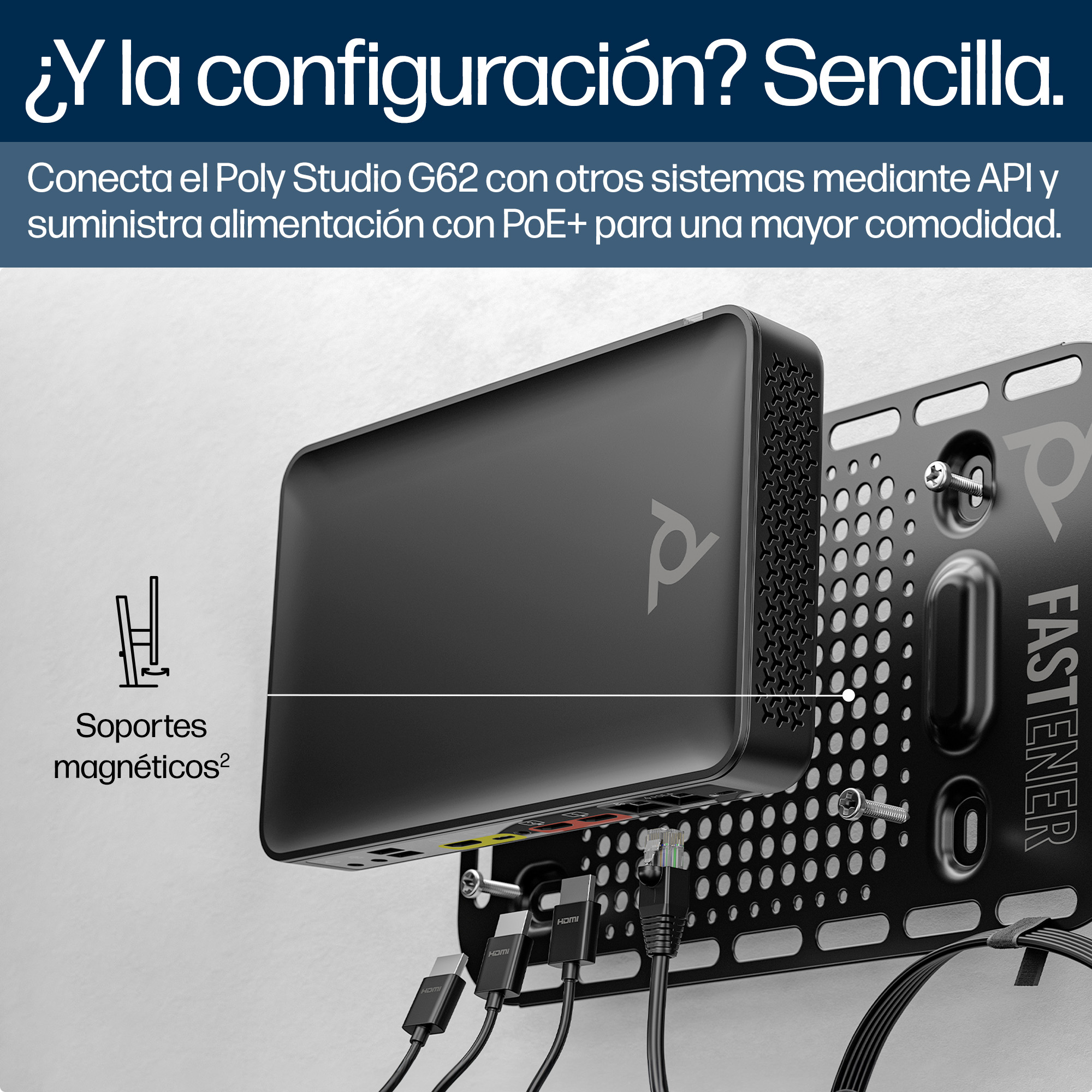 The Poly Studio G62 With Mounting Plate Kit video conferencing system features a sleek, modern design that complements professional office environments. Its compact form factor and discreet mounting plate allow for flexible installation without cluttering meeting spaces. The premium build quality reflects Poly’s commitment to durability and performance, ensuring a long-lasting solution for hybrid work setups.