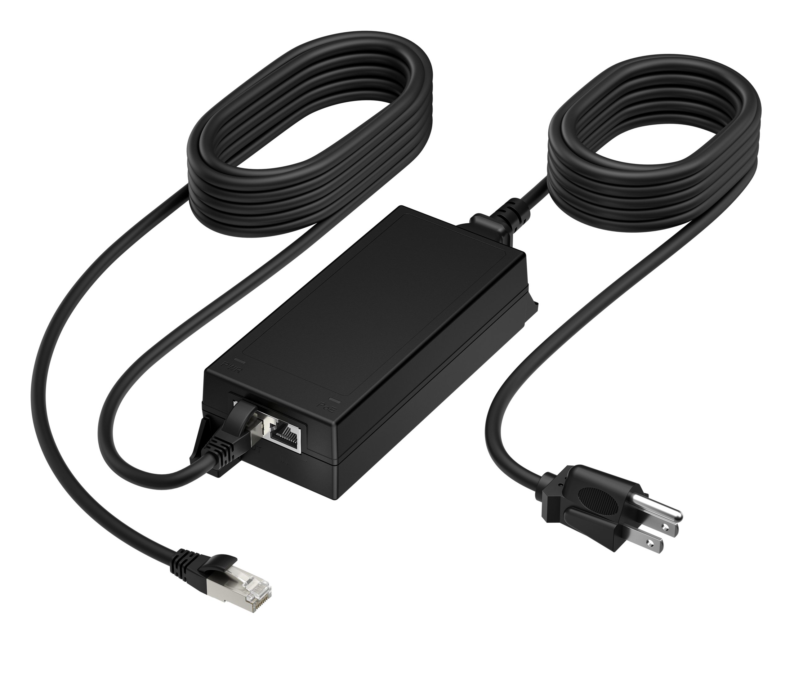 The Poly PoE++ 65W 2.5G Adapter with 3.66m CAT6A Cable and Power Cord power adapter/inverter features a sleek, compact design that fits effortlessly into any modern office setup. Its durable casing and integrated cable management provide a clean, professional appearance. The included CAT6A cable is robust yet flexible, allowing easy routing and installation in diverse work environments.