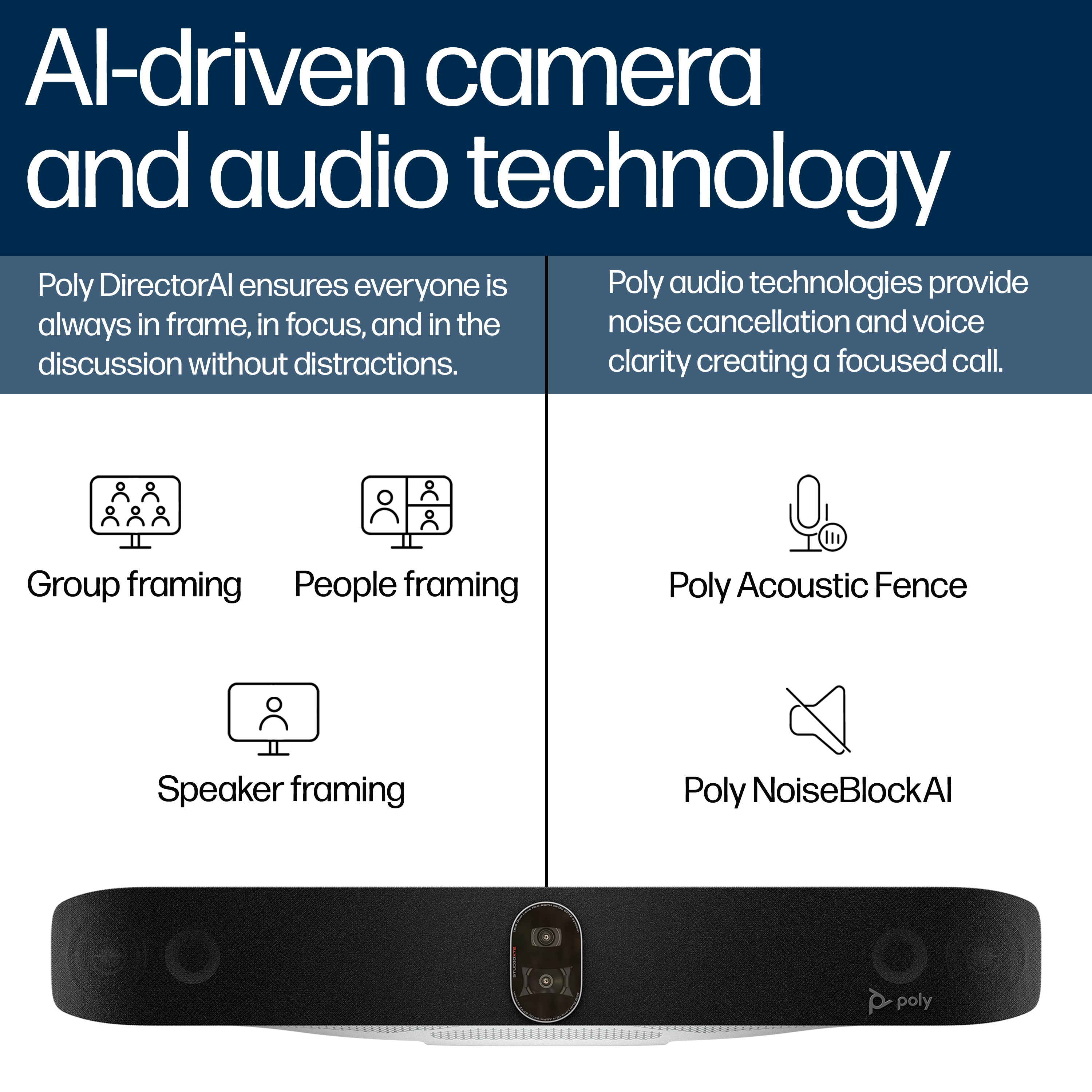 - Advanced audio technology featuring beamforming microphones and noise cancellation to ensure every voice is heard clearly.