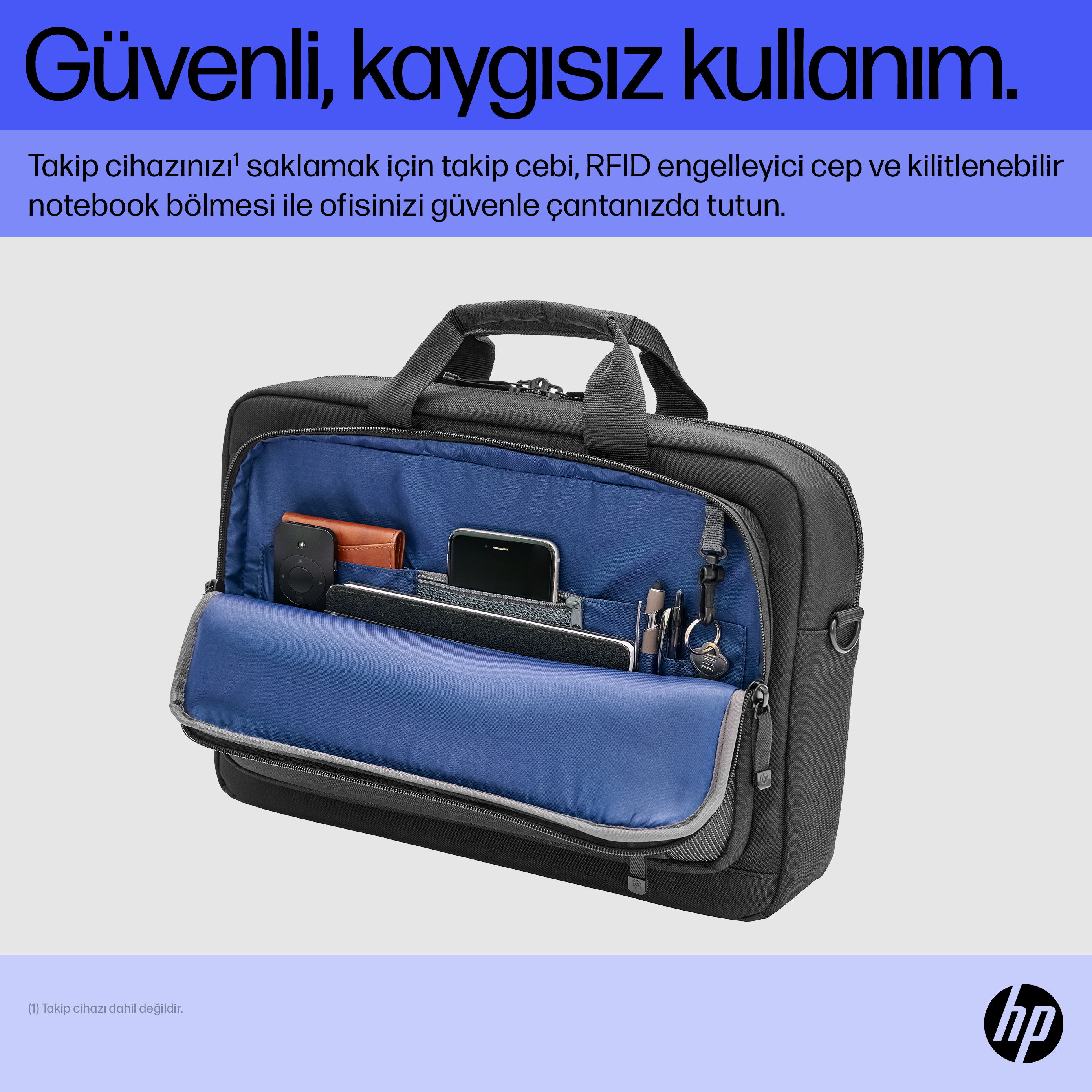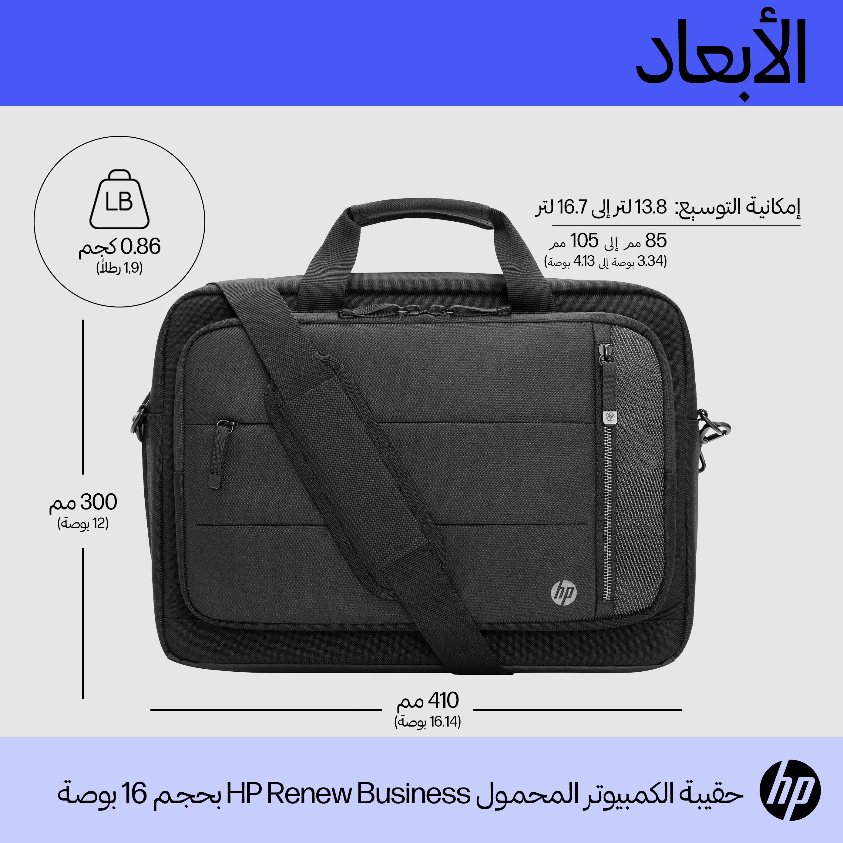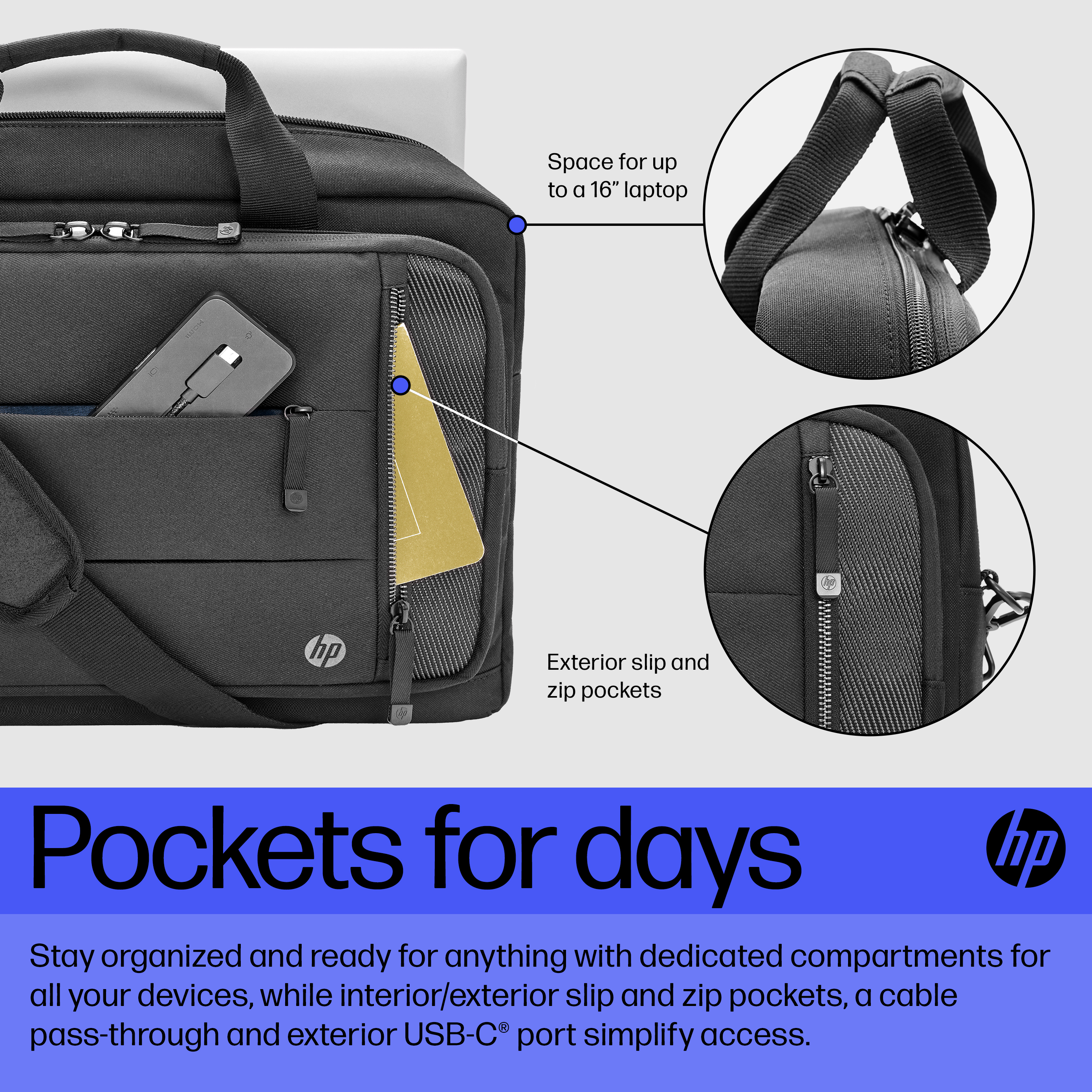 The HP Renew Executive 16 Laptop Bag features a sleek, minimalist design that projects professionalism. Its matte black finish and subtle branding make it suitable for any corporate setting. The ergonomic padded strap and smooth zipper pulls contribute to a premium tactile experience, ensuring comfort and ease of use throughout the workday.