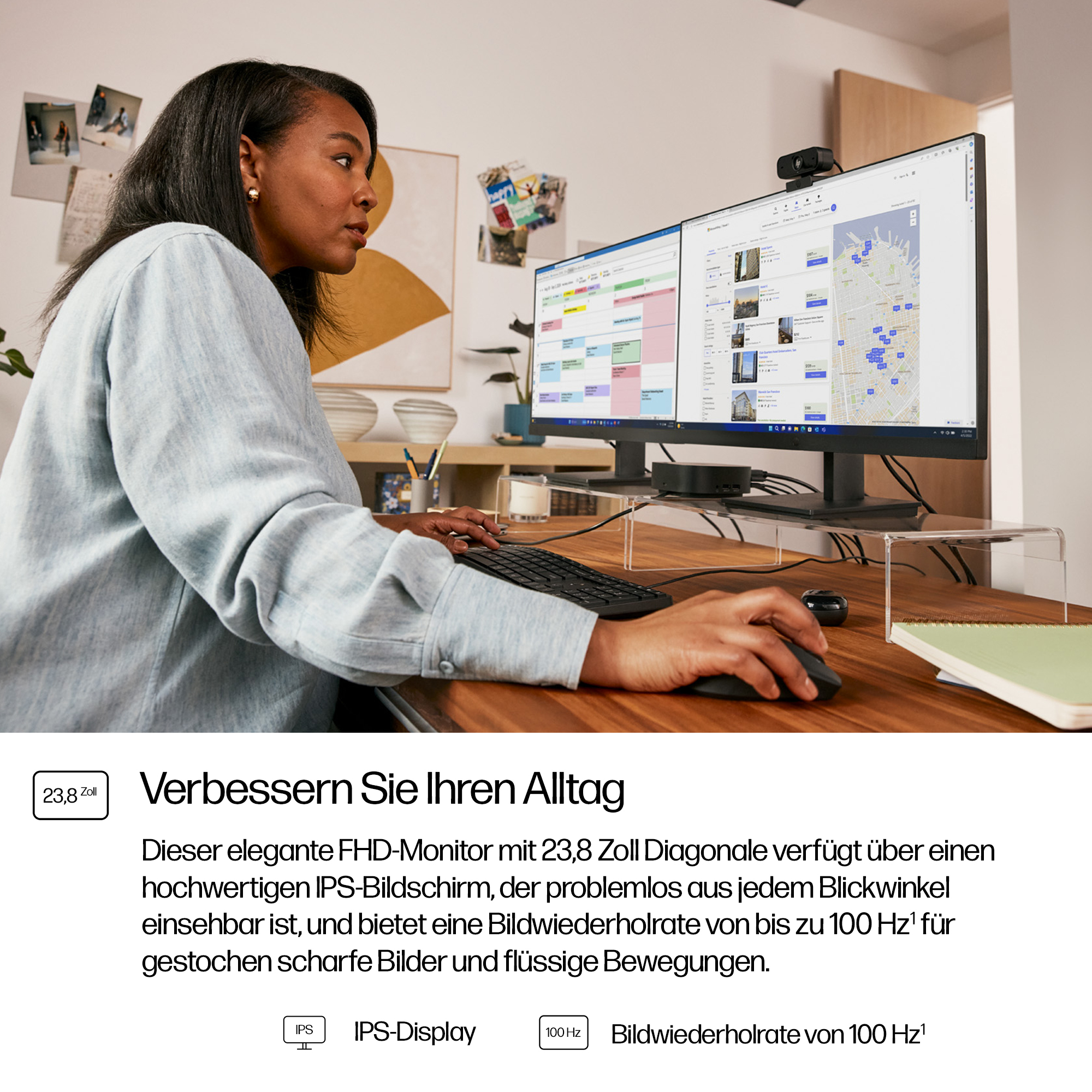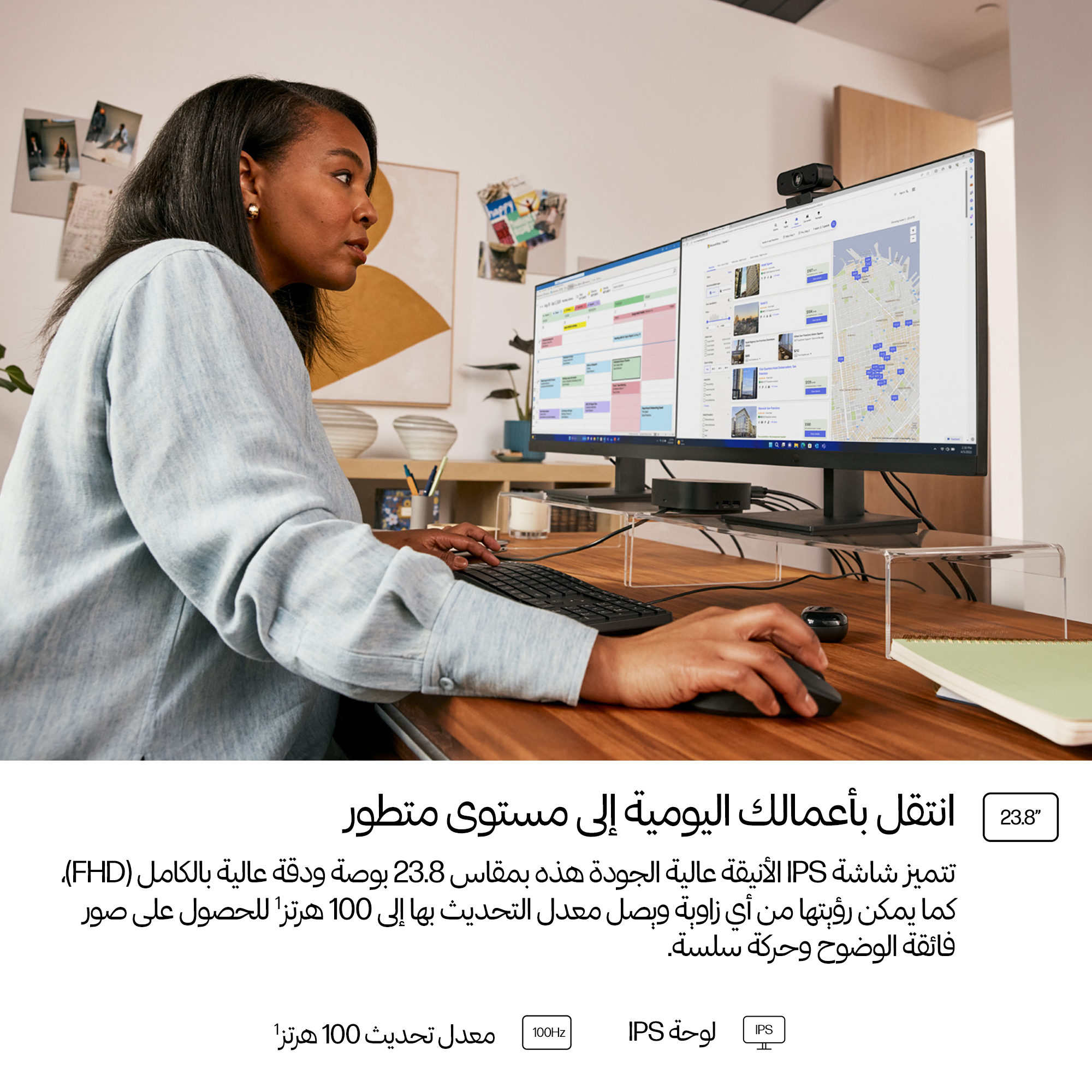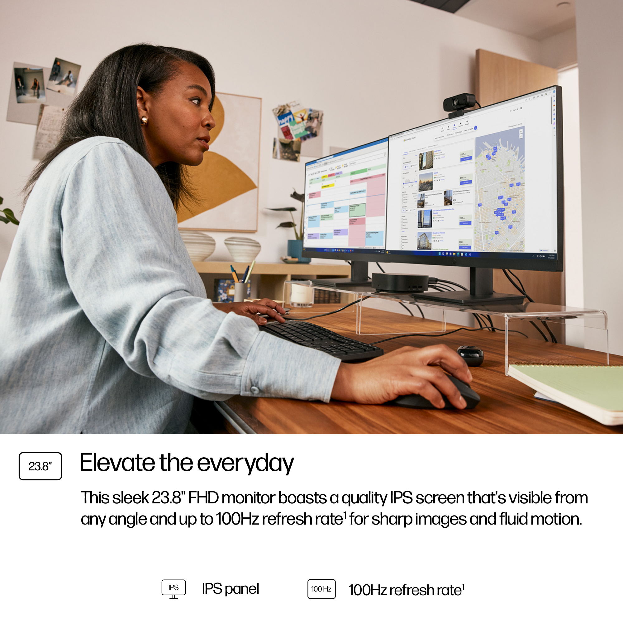 - 23.8-inch Full HD (1920×1080) display delivers sharp, clear images for detailed work and presentations.