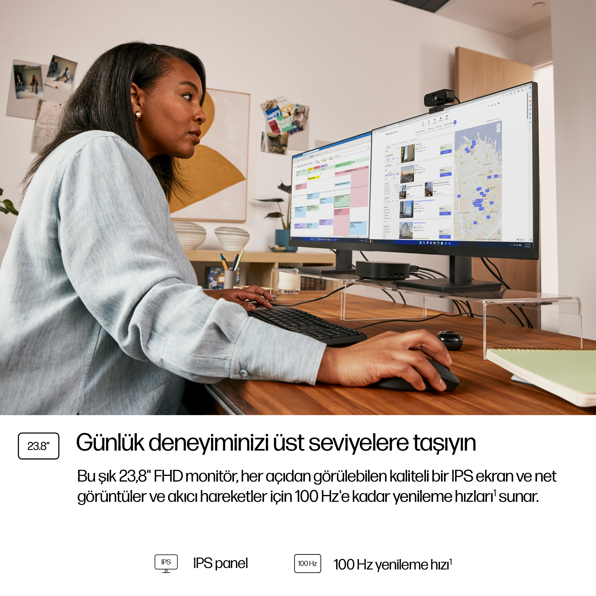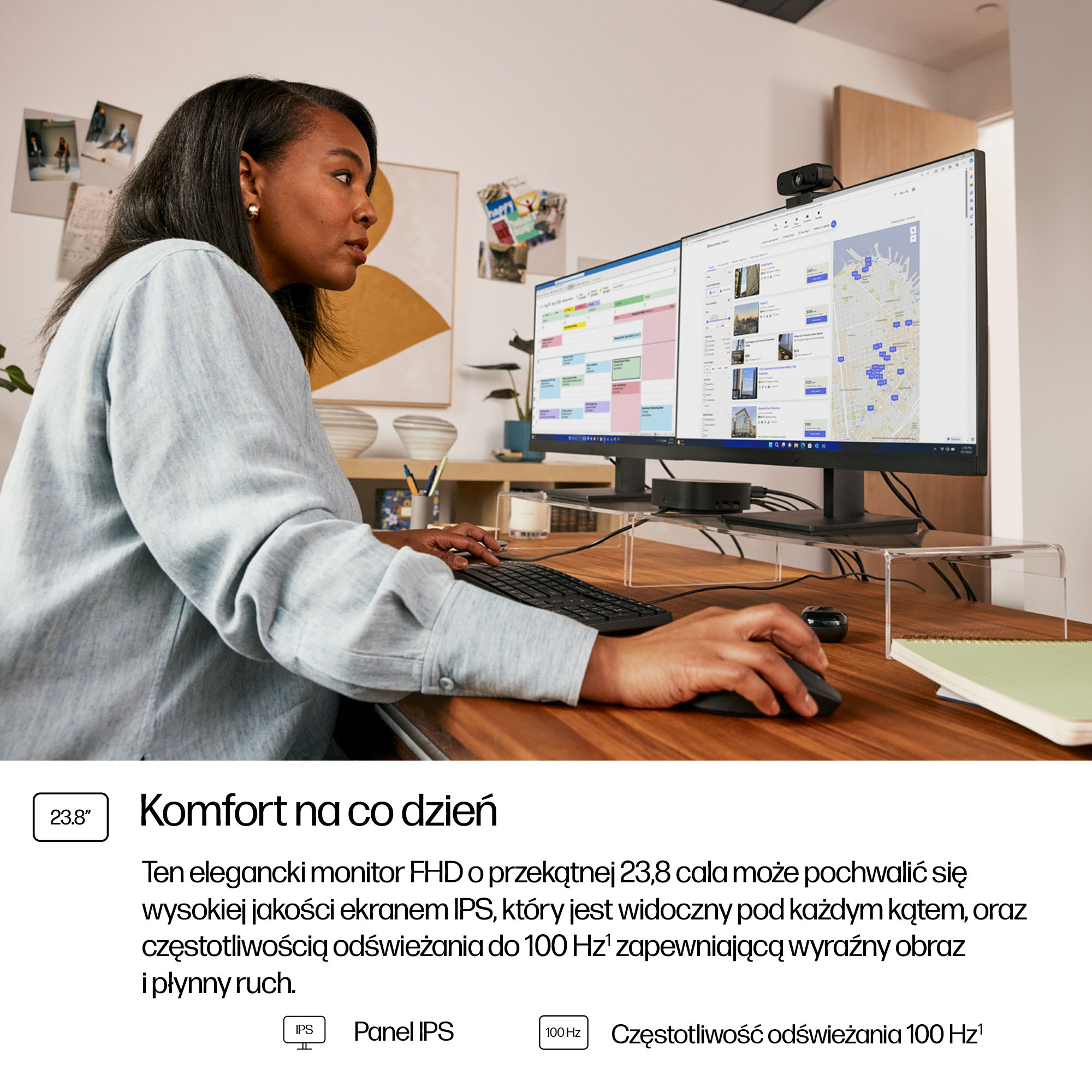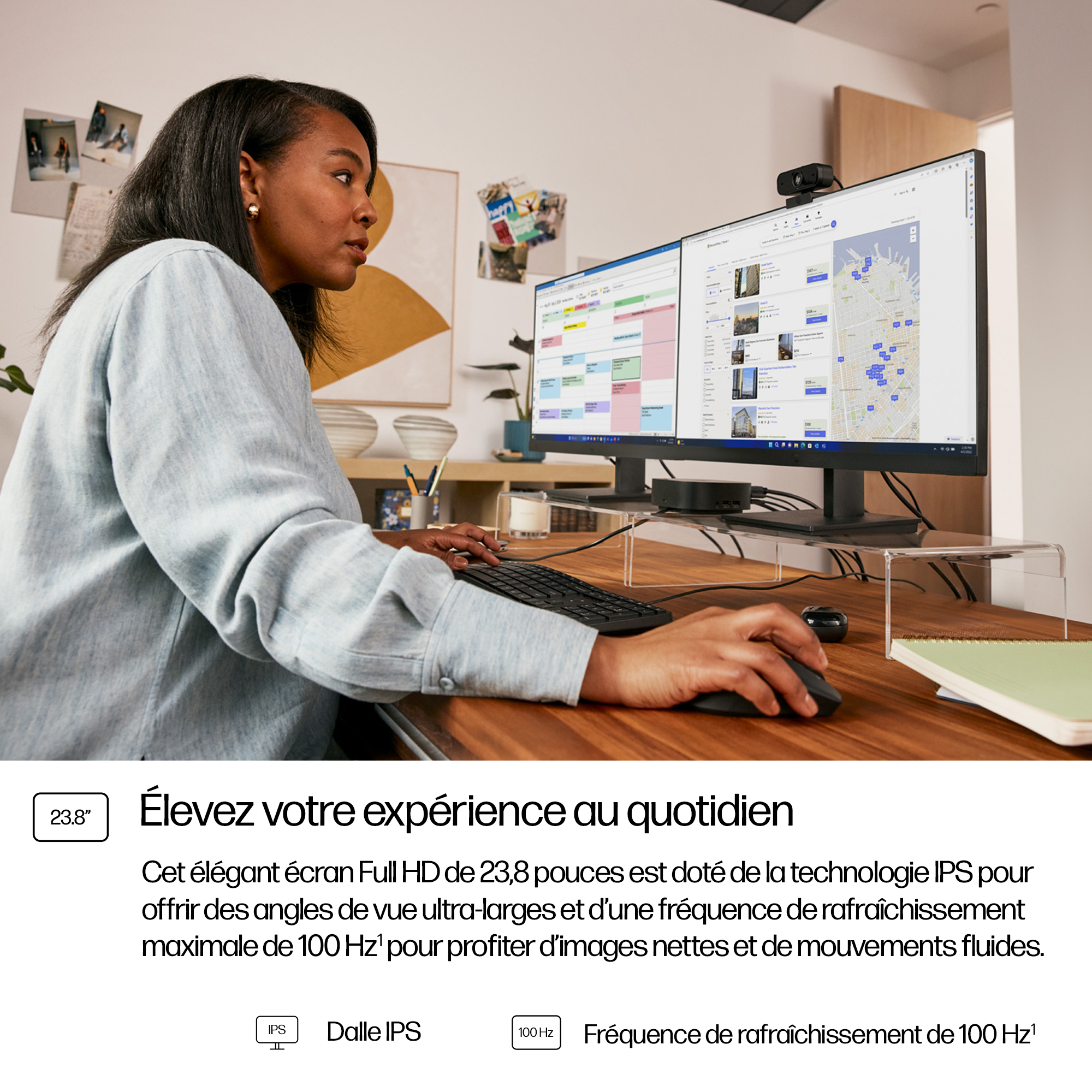 - 23.8-inch Full HD (1920×1080) display delivers sharp, clear images for detailed work and presentations.