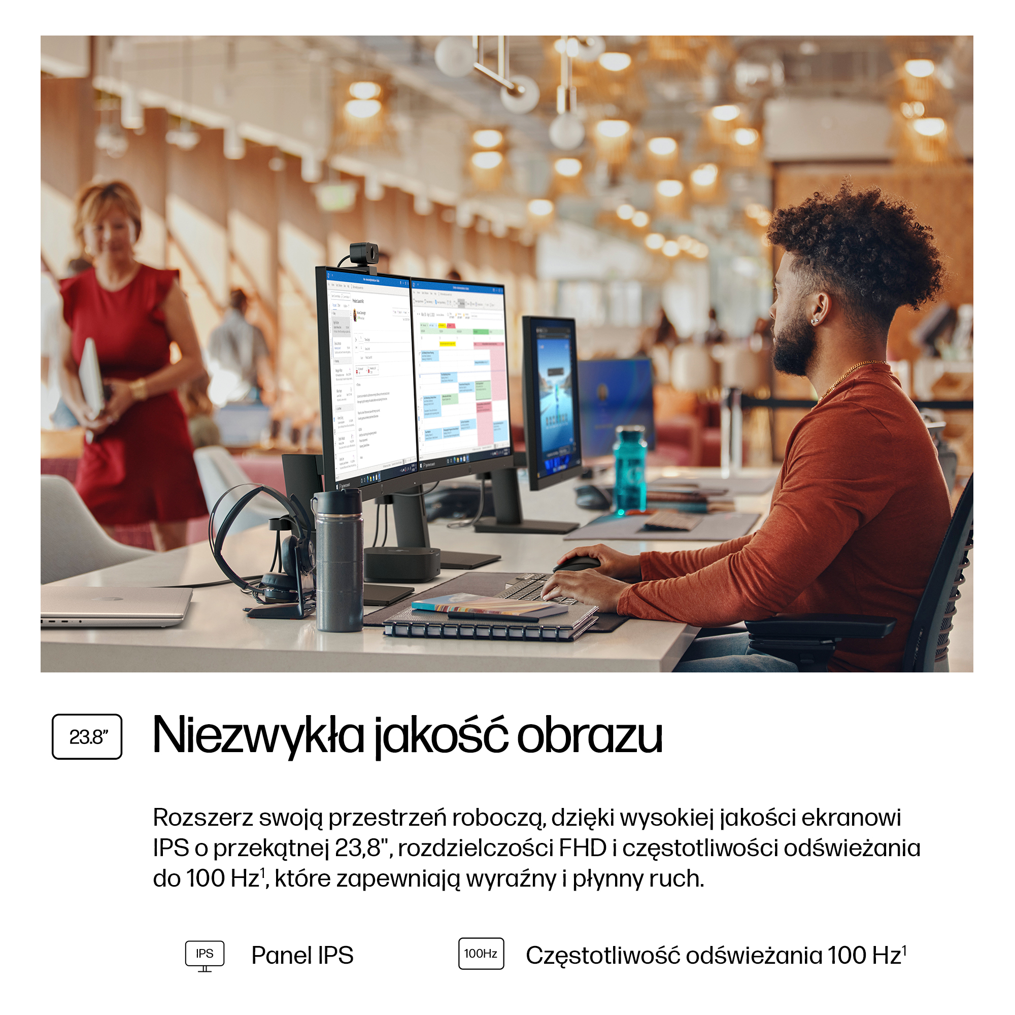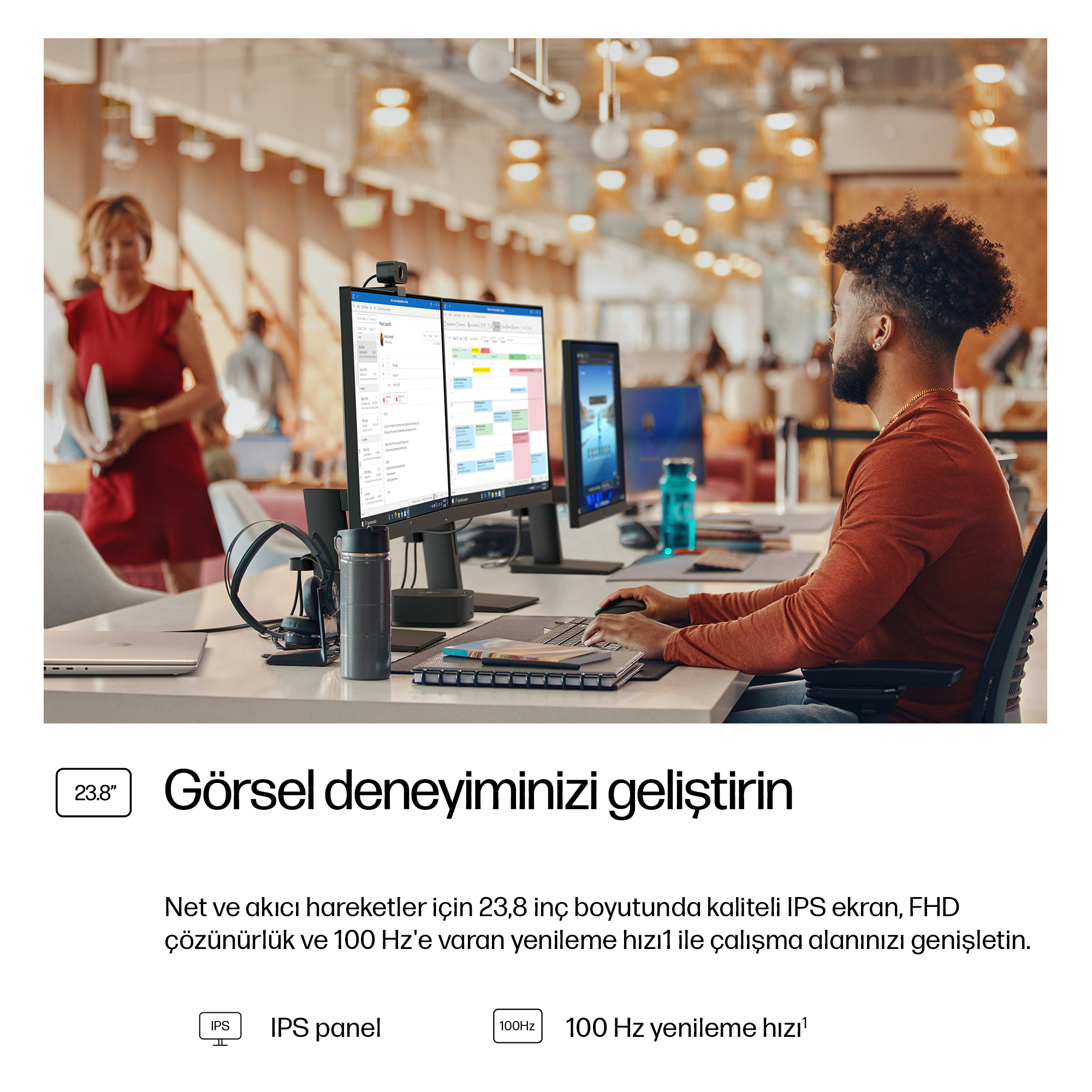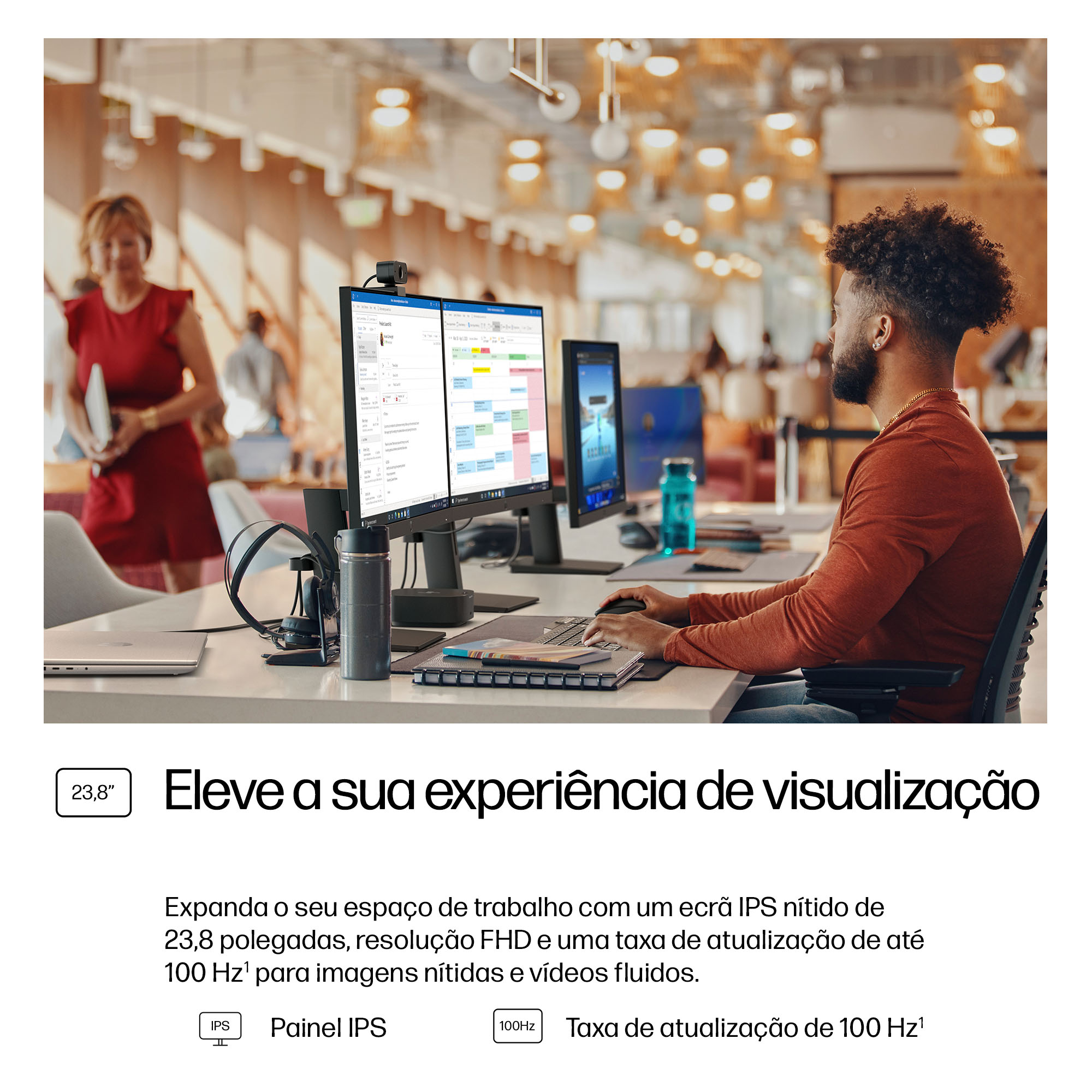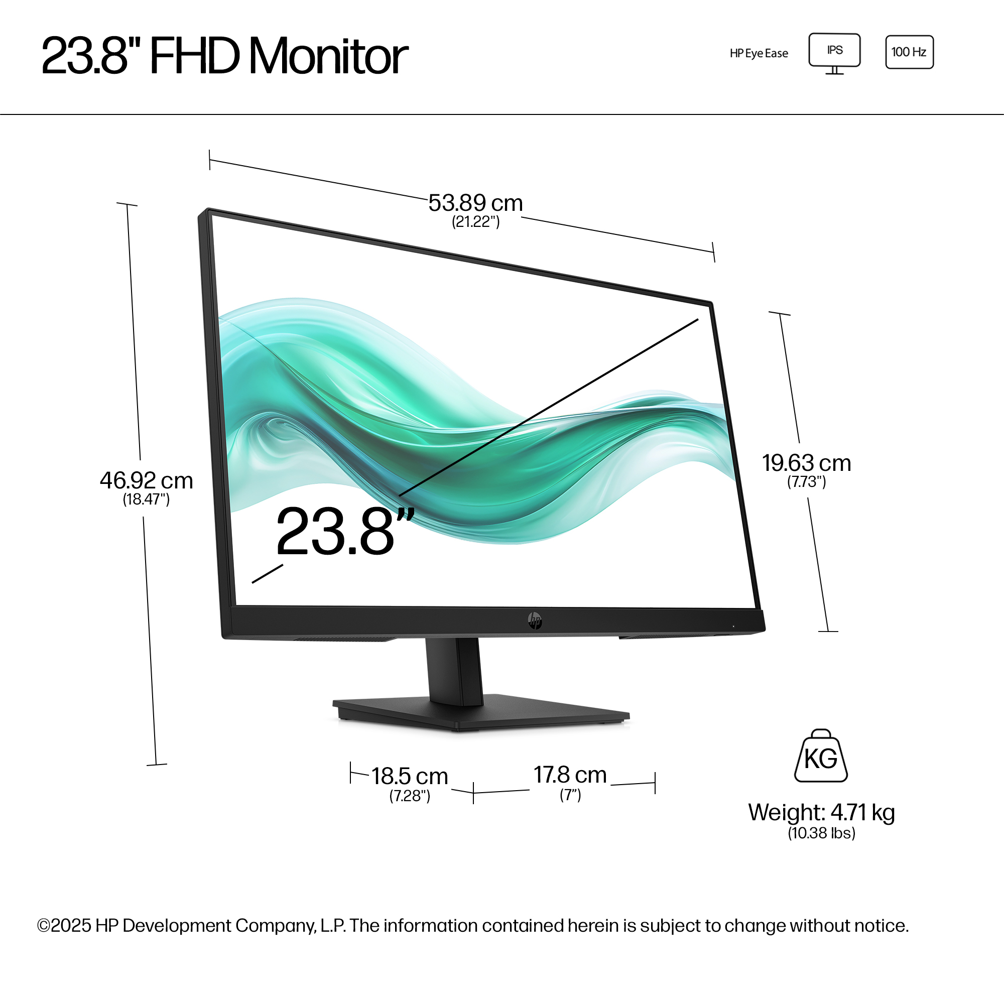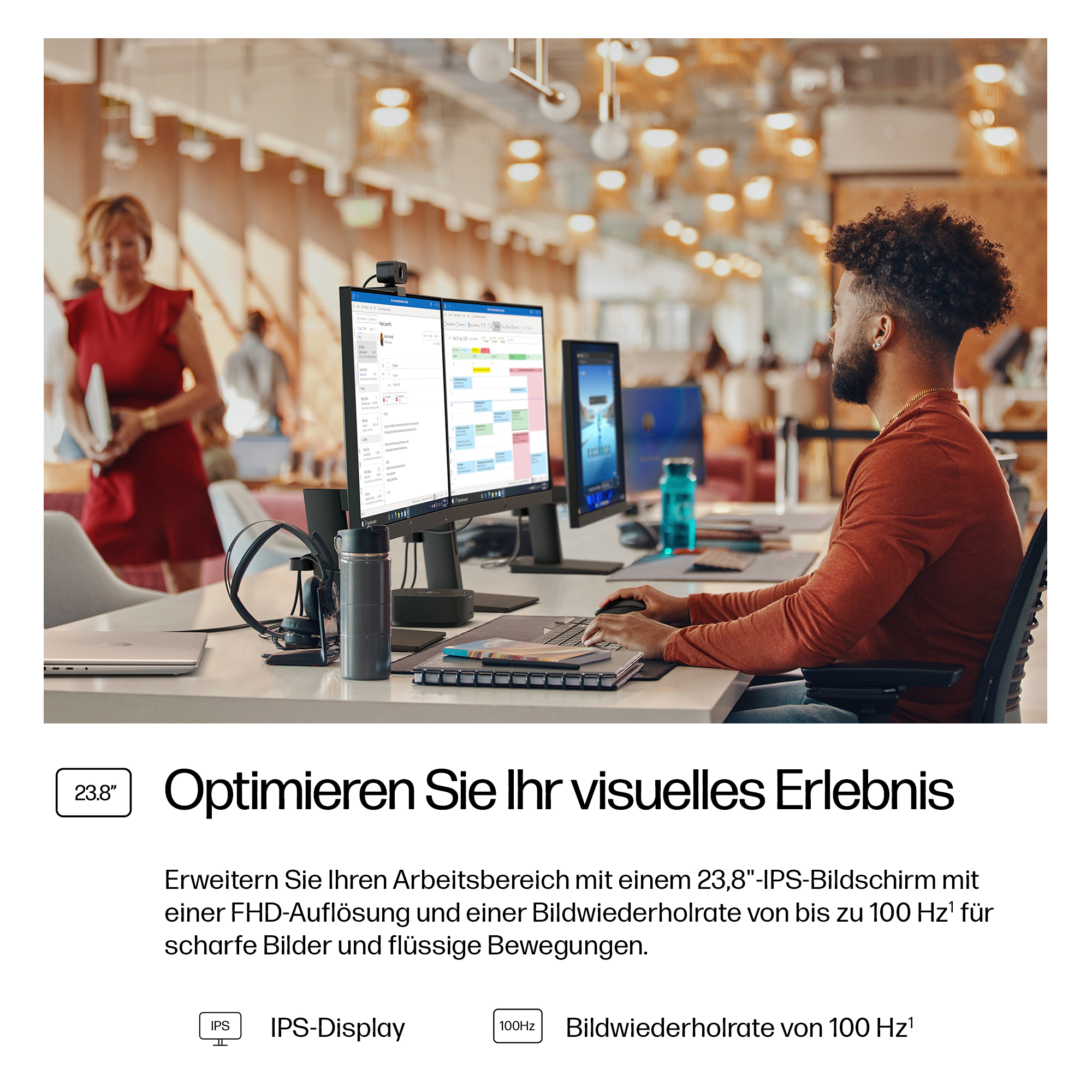 - 23.8 inch Full HD (1920 x 1080) IPS panel delivers sharp, vibrant images with wide viewing angles for collaborative workspaces.