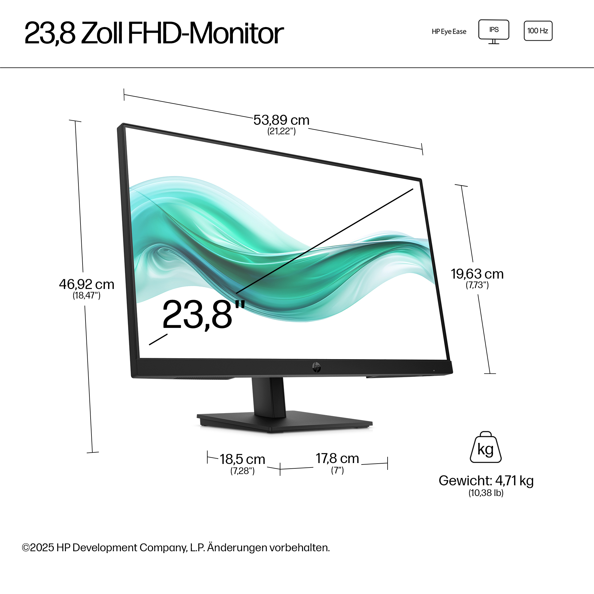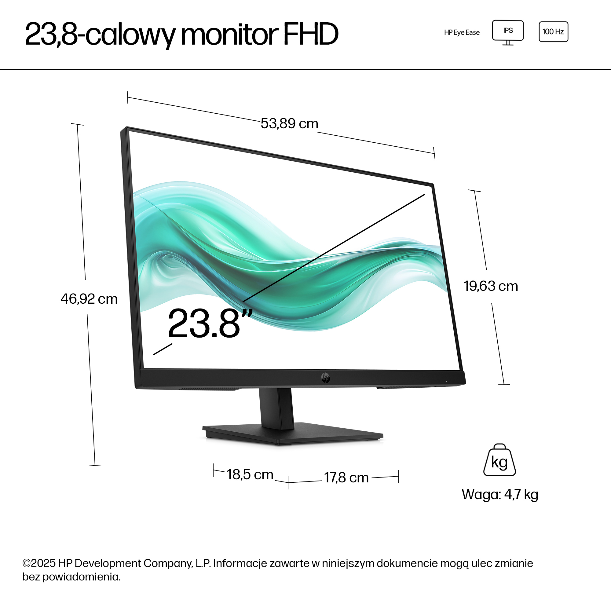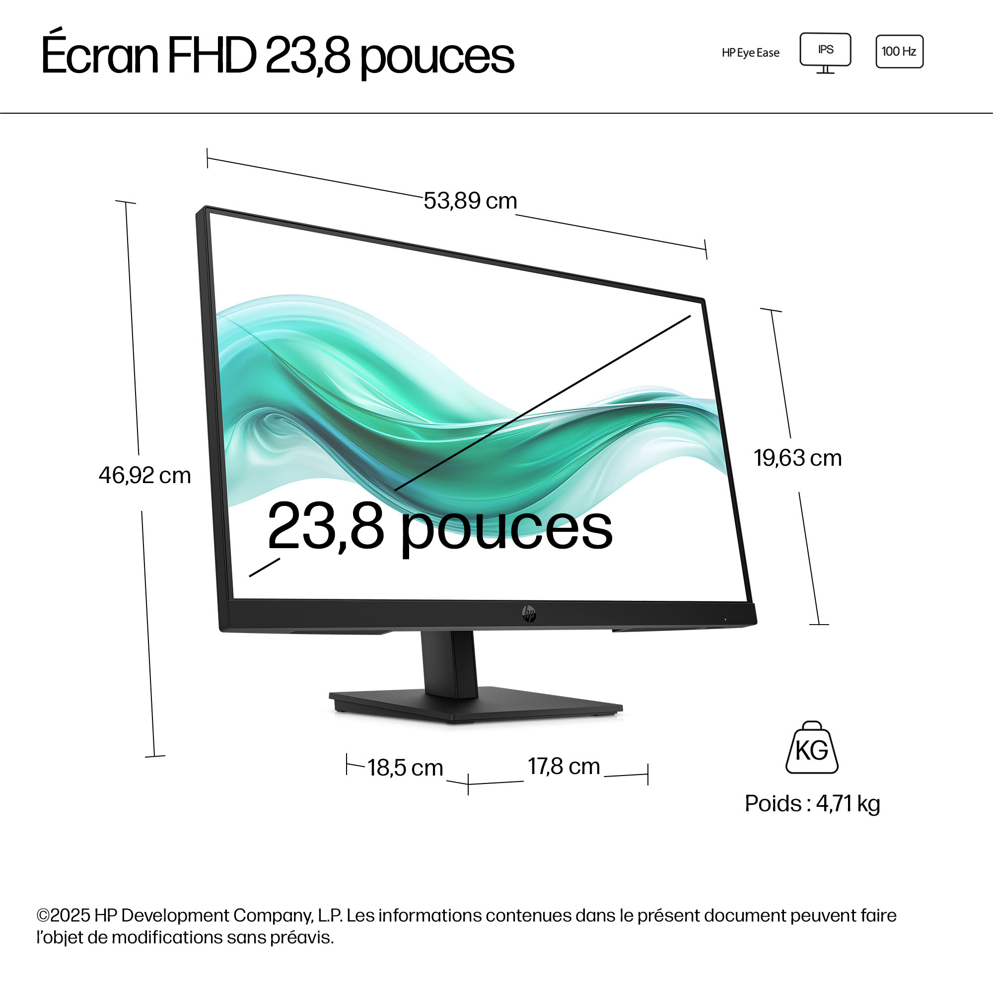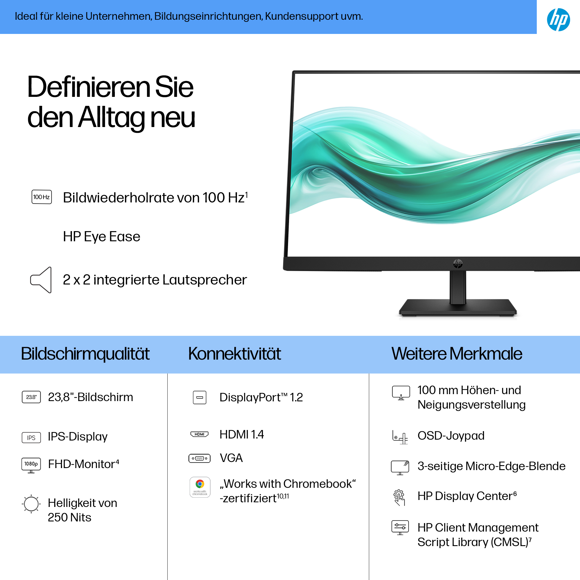 - 23.8 inch Full HD (1920 x 1080) IPS panel delivers sharp, vibrant images with wide viewing angles for collaborative workspaces.