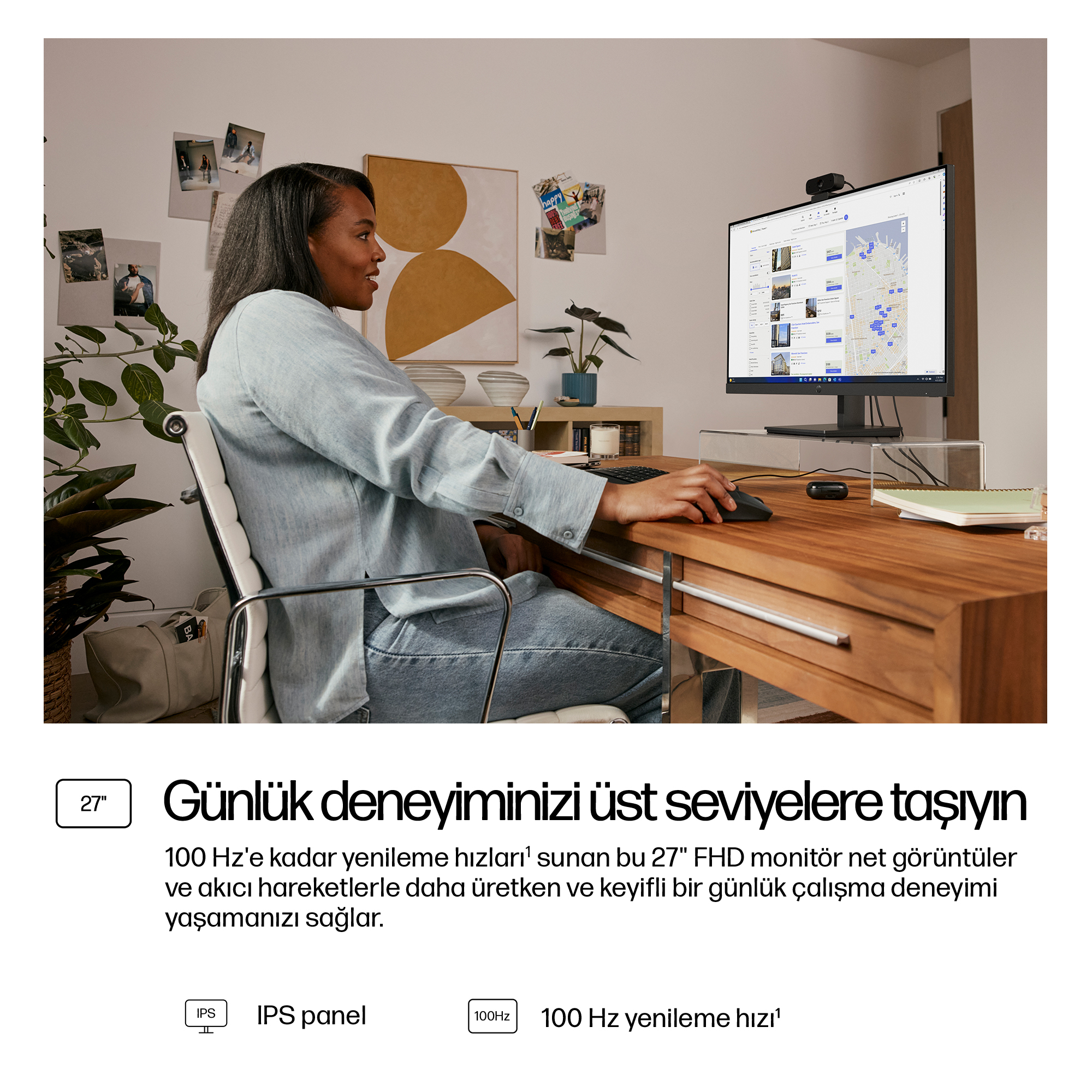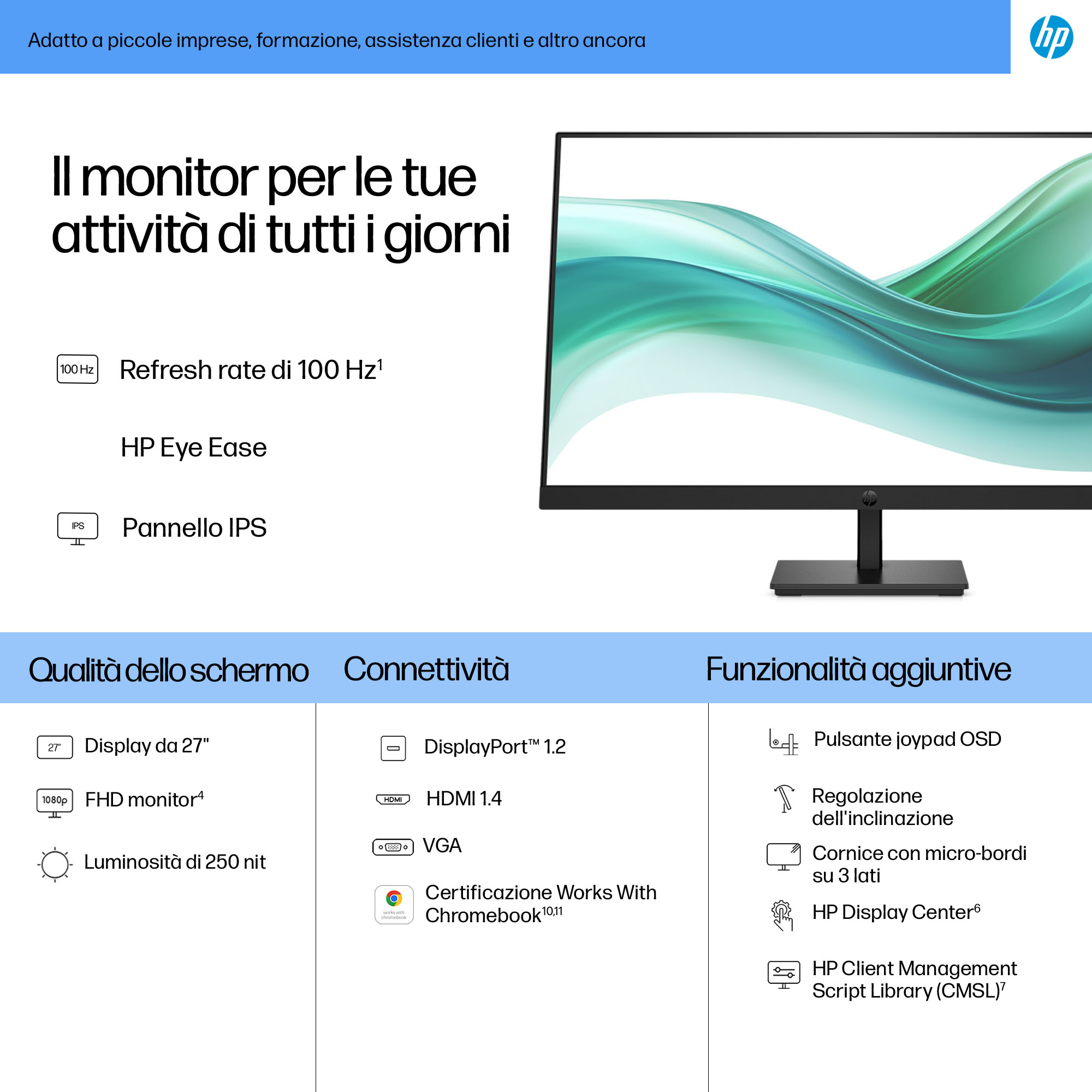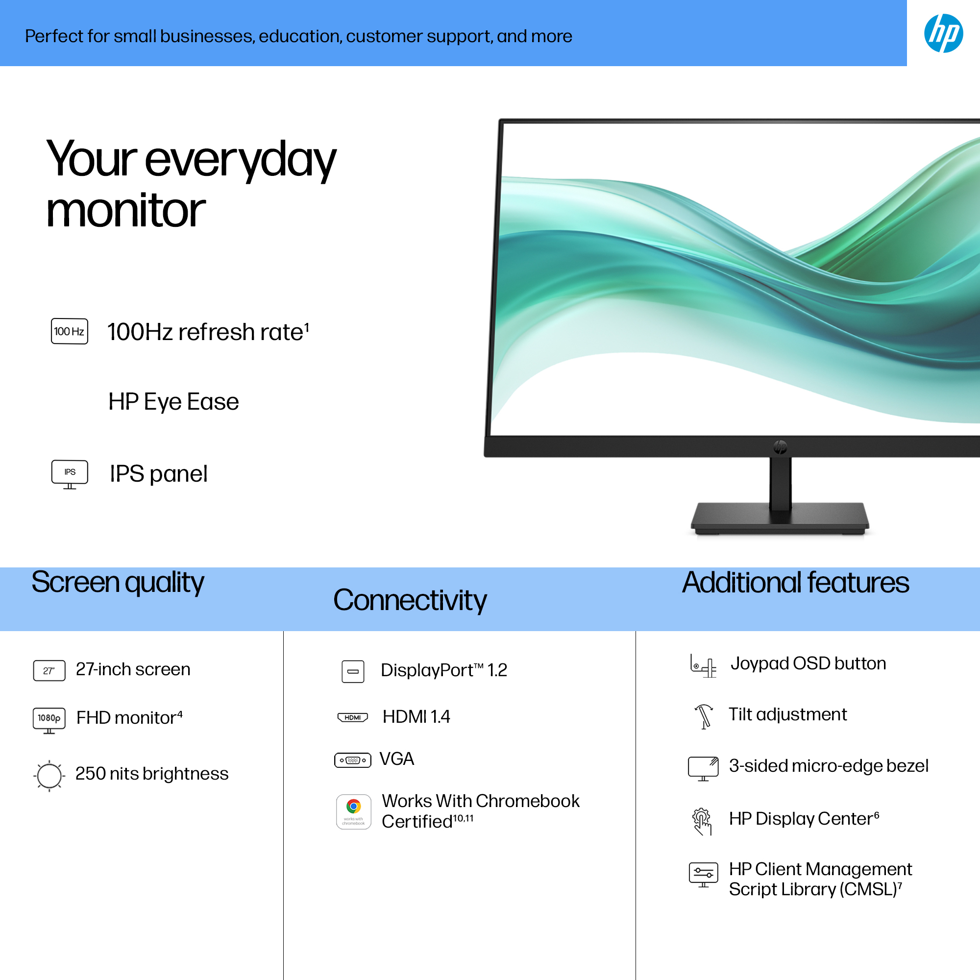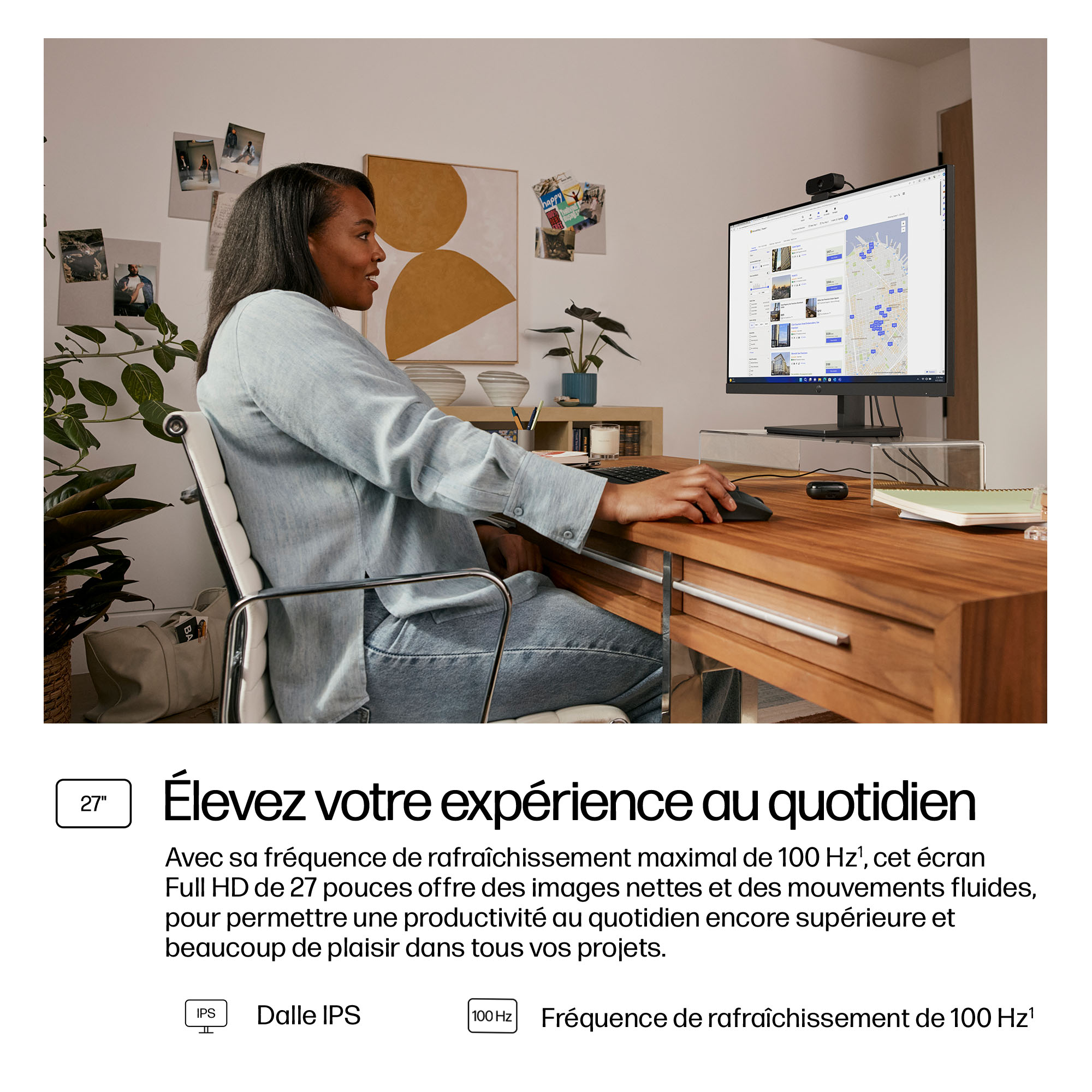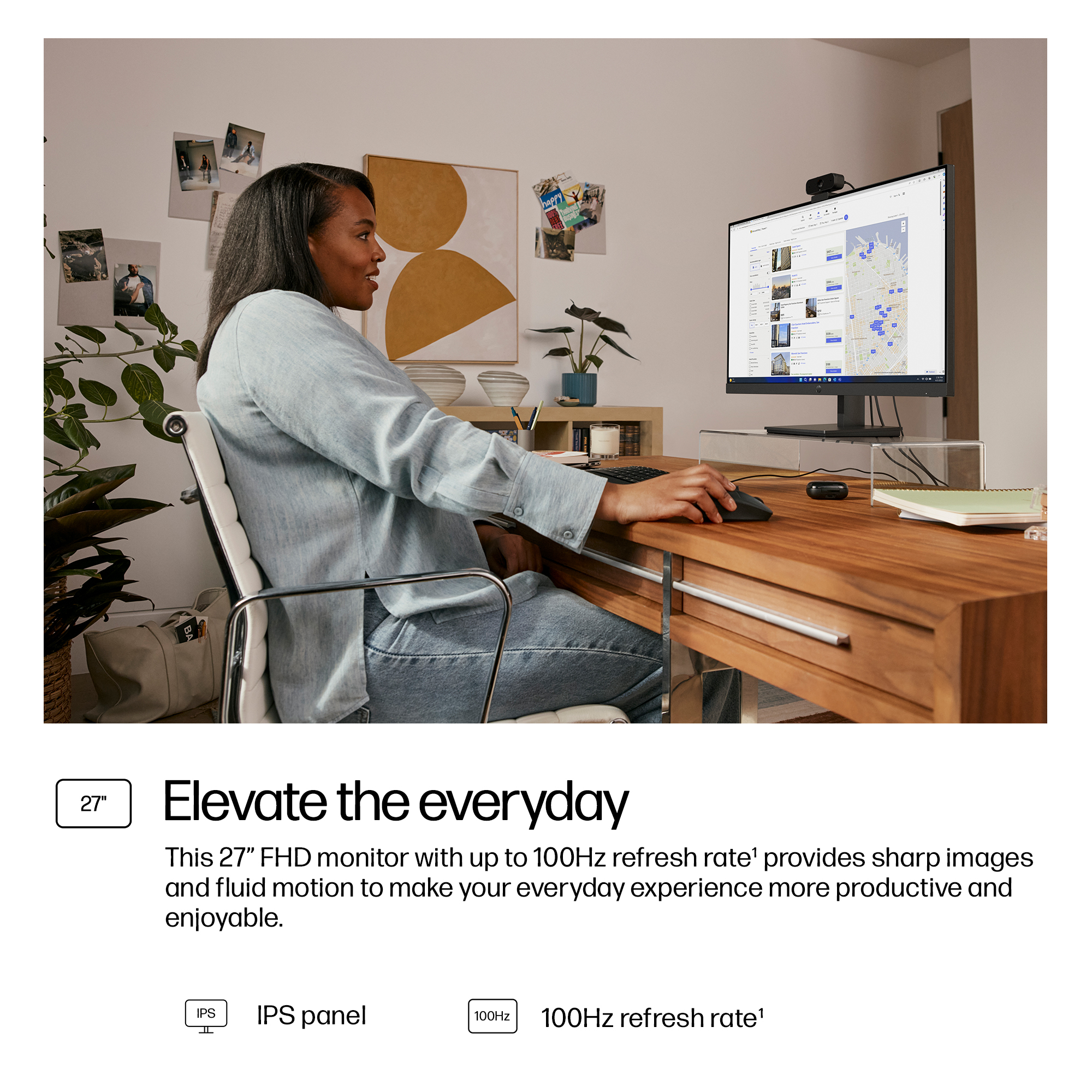 - 27-inch Full HD (1920×1080) display delivering sharp, vibrant images for detailed work and presentations.
