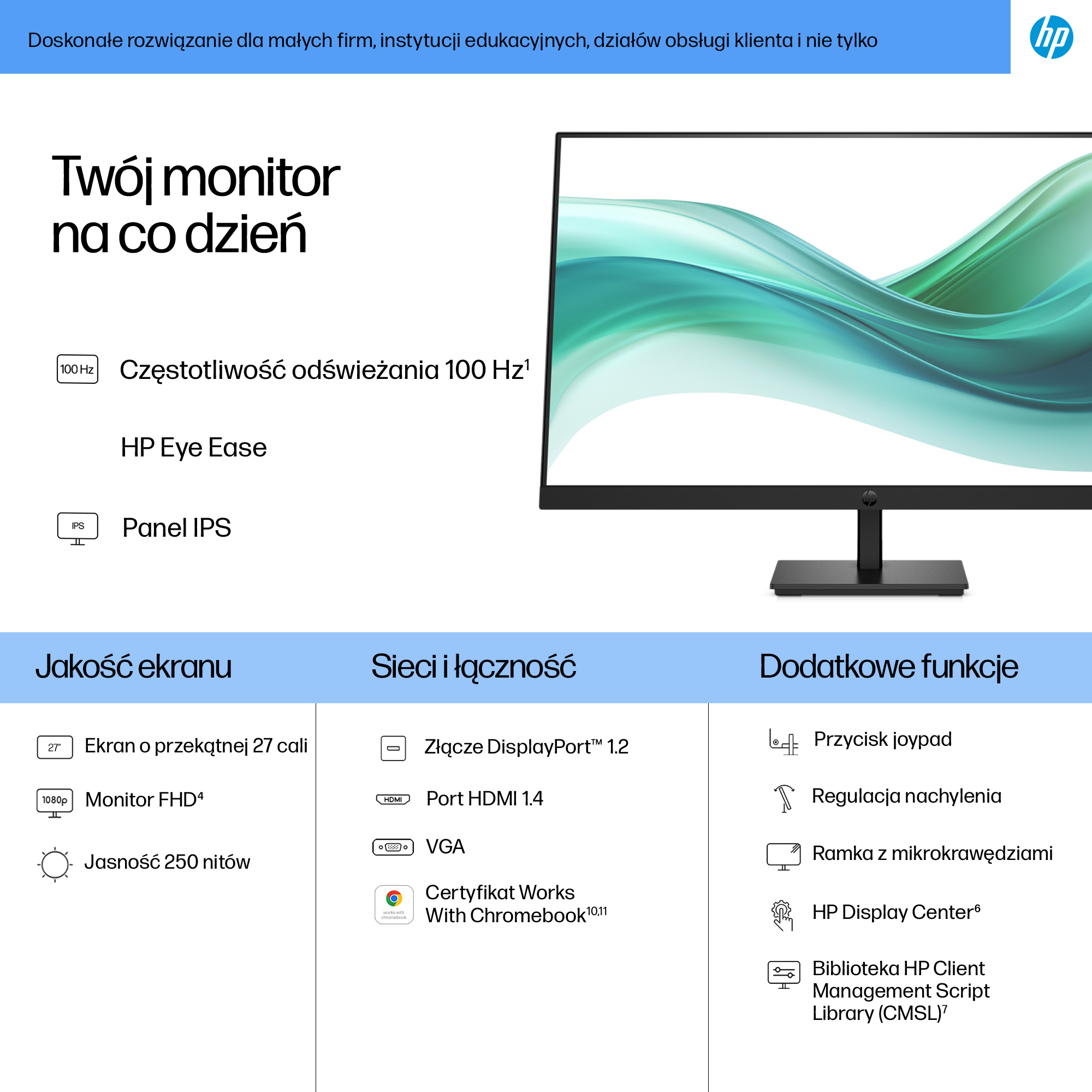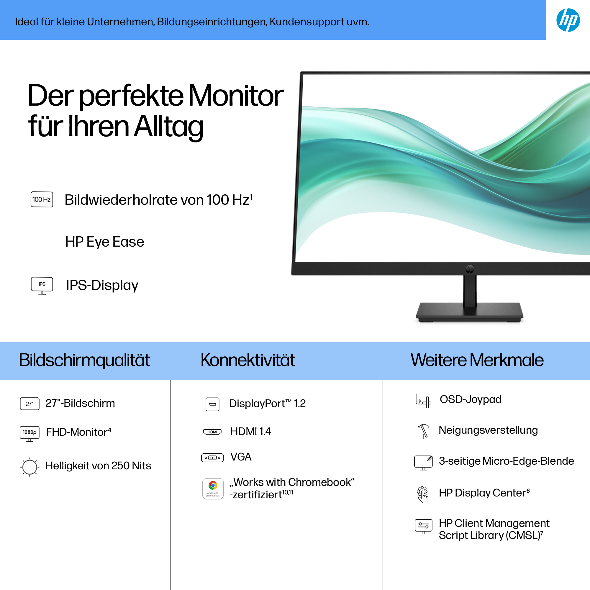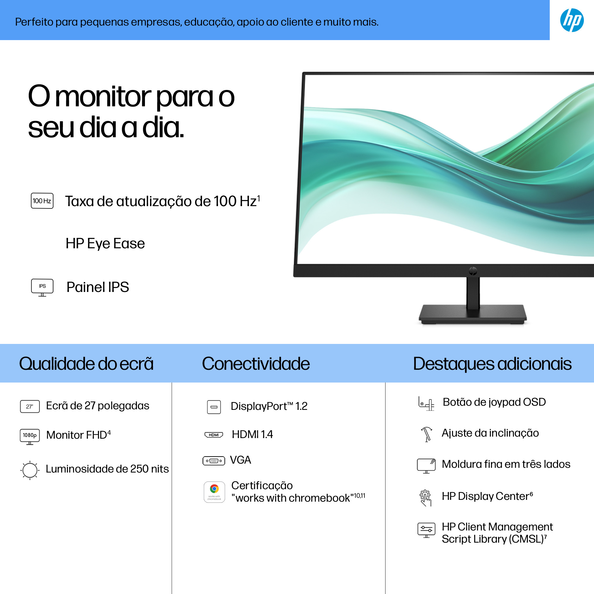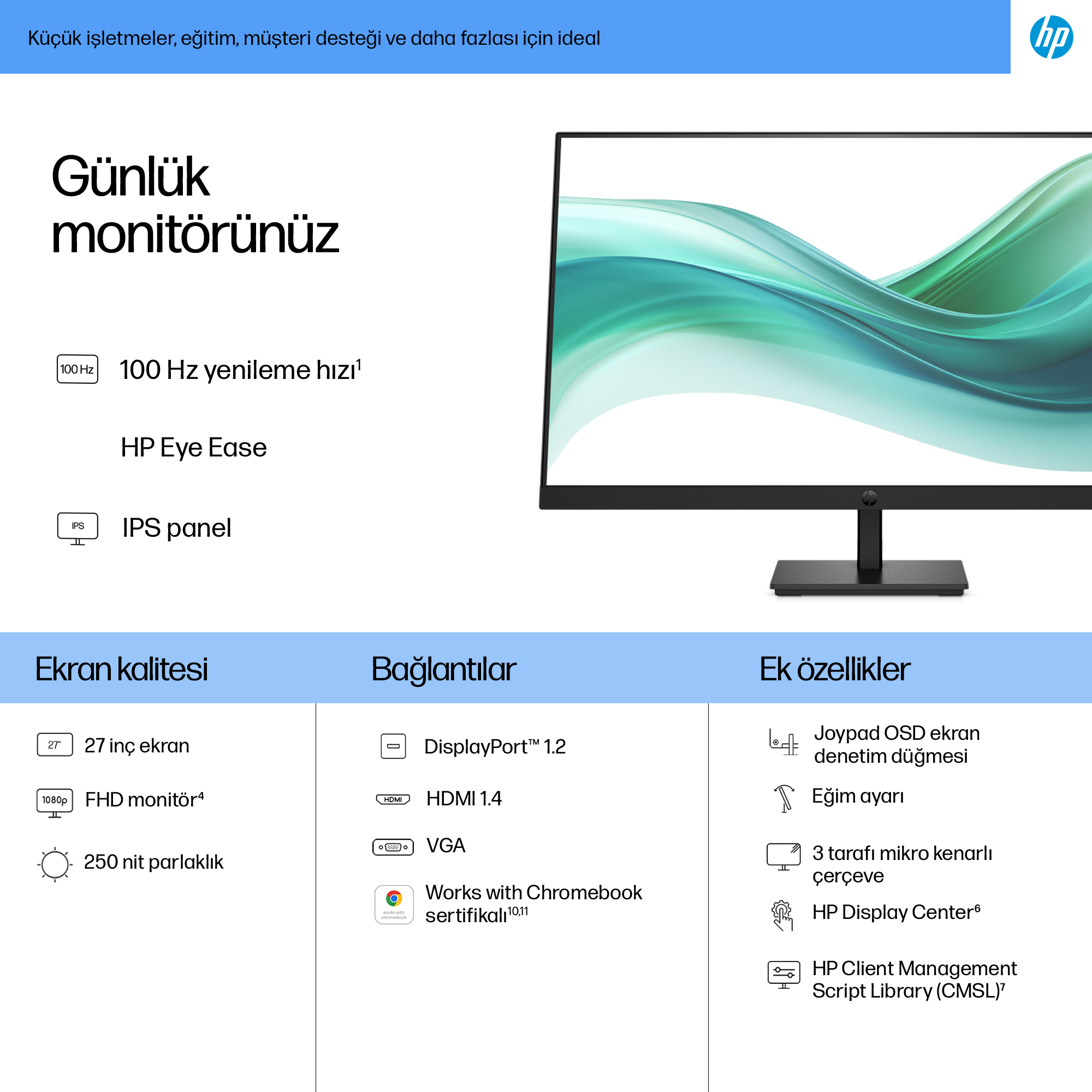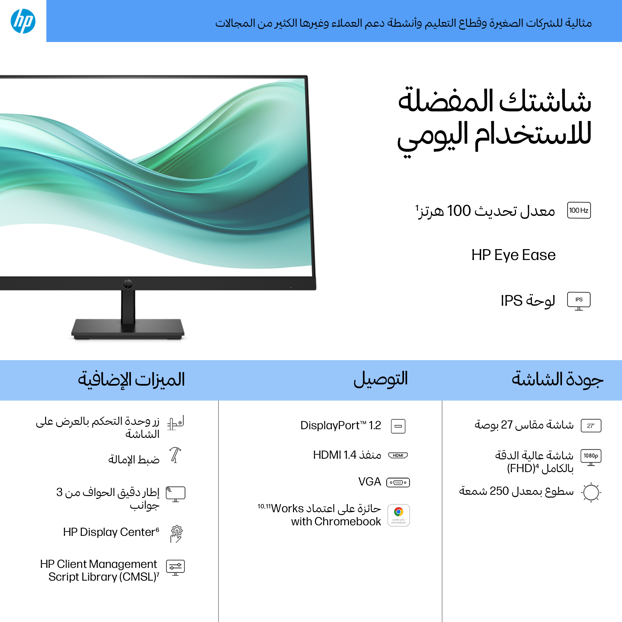 - 27-inch Full HD (1920×1080) display delivering sharp, vibrant images for detailed work and presentations.