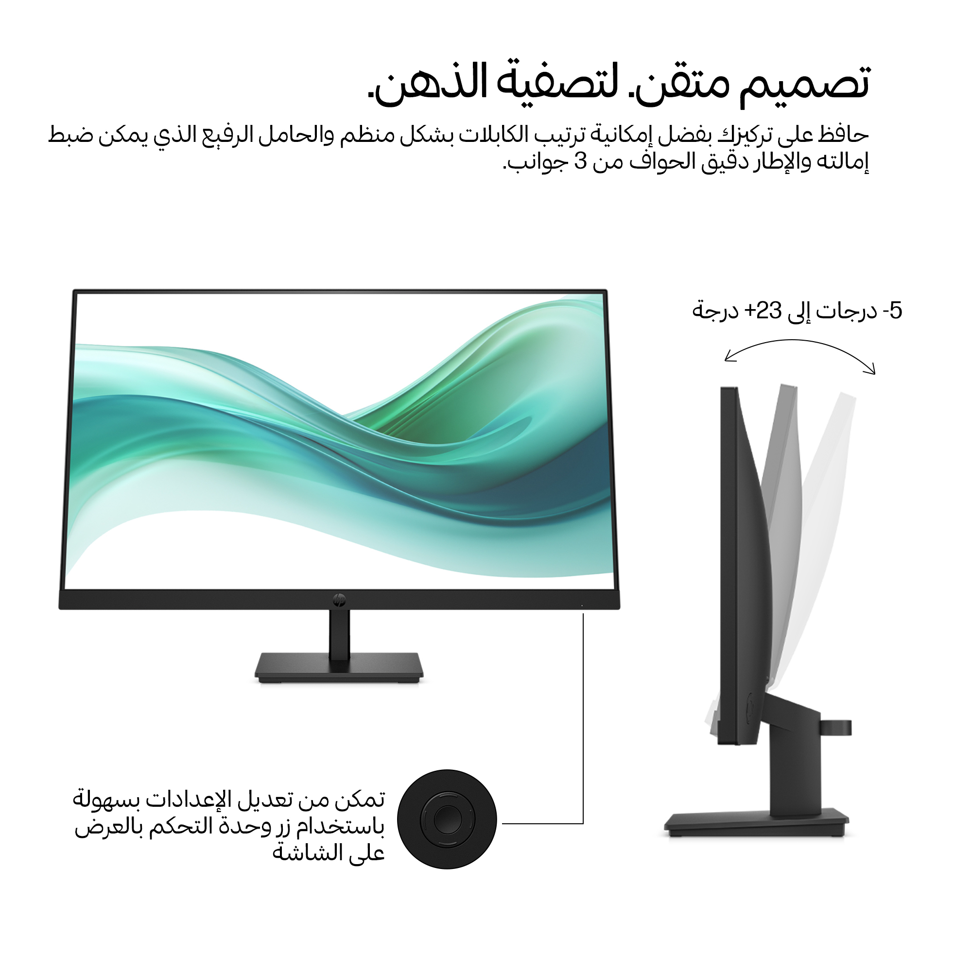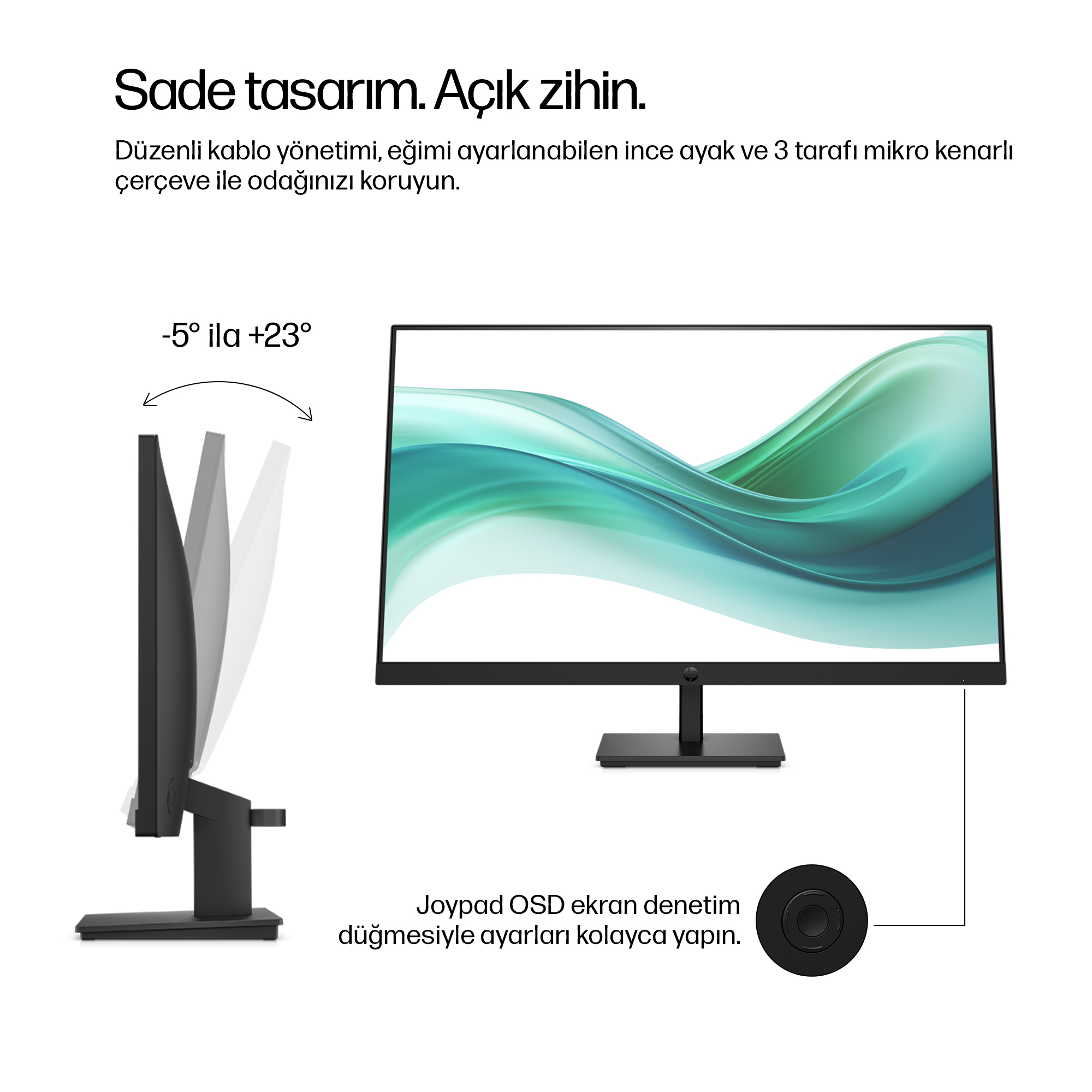 The HP Series 3 Pro 27 inch FHD Monitor – 327pf computer monitor boasts a sleek, professional aesthetic with a matte black finish that complements any office environment. Its slim profile and narrow bezels provide a modern look while maximising screen real estate. The sturdy stand offers reliable stability with easy tilt adjustments, combining form and function for a comfortable user experience.