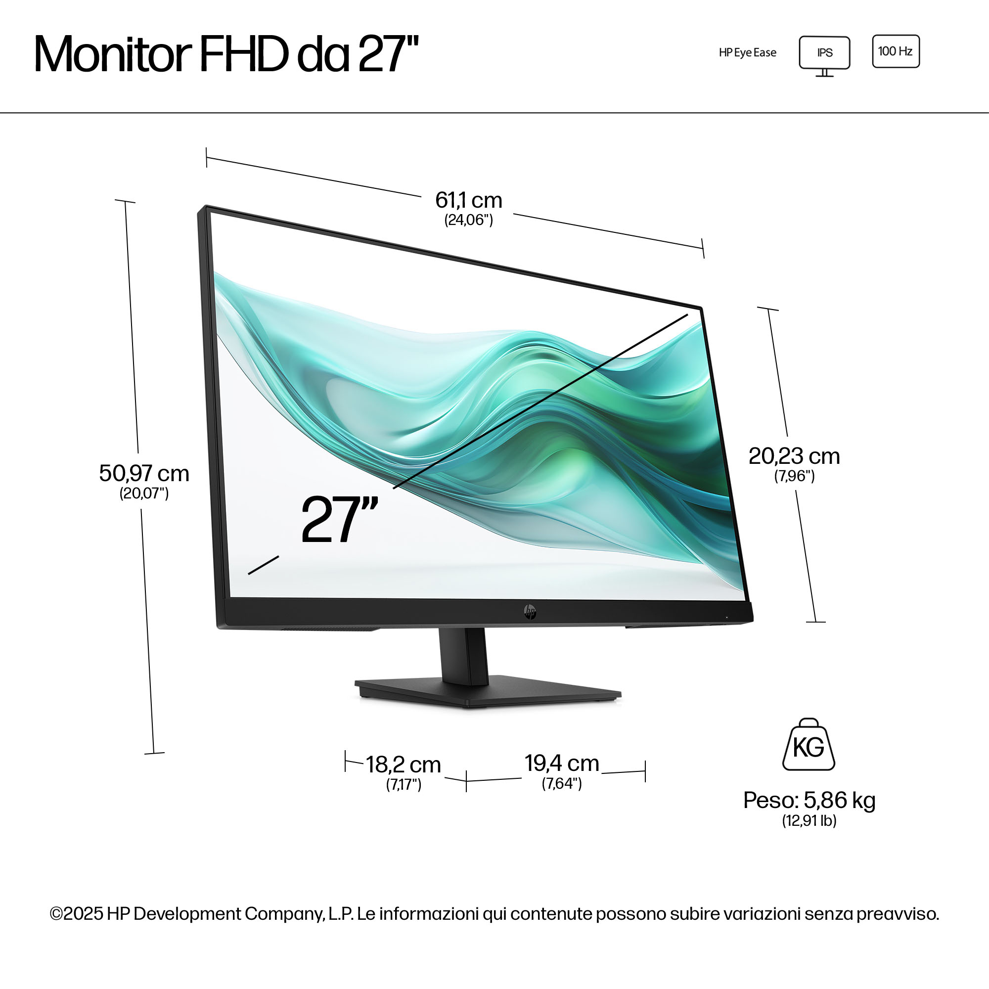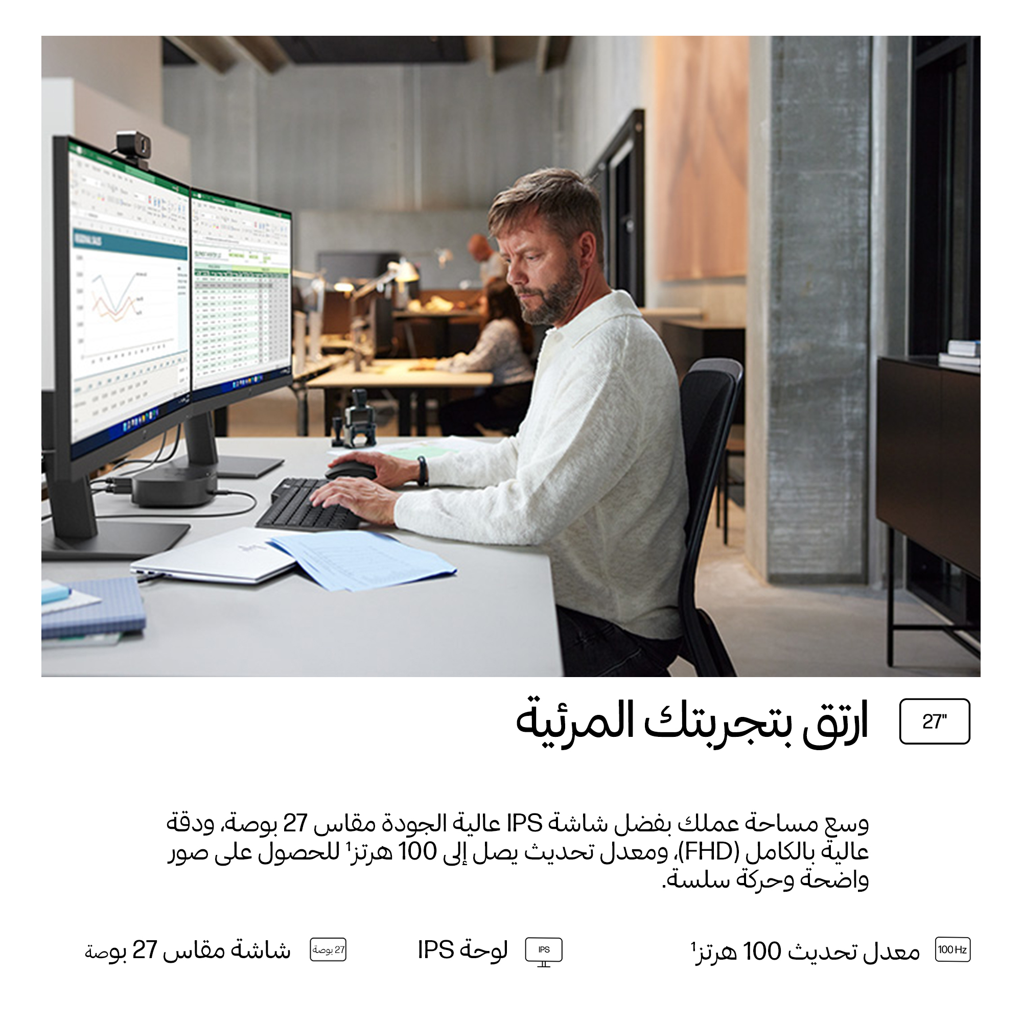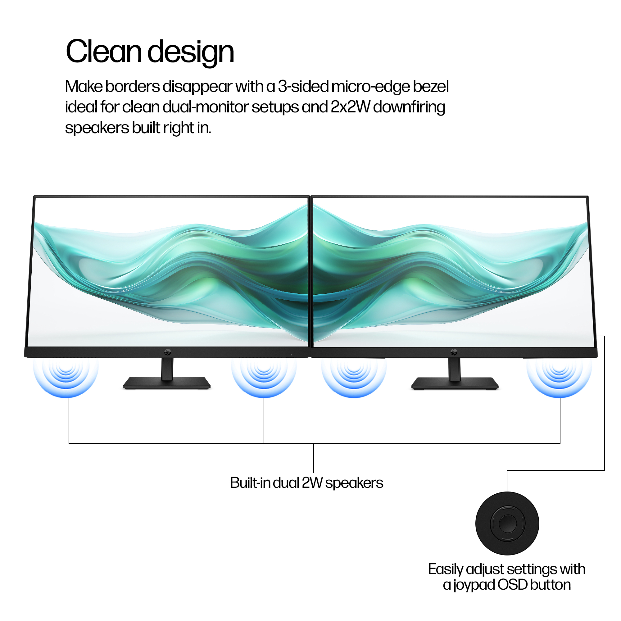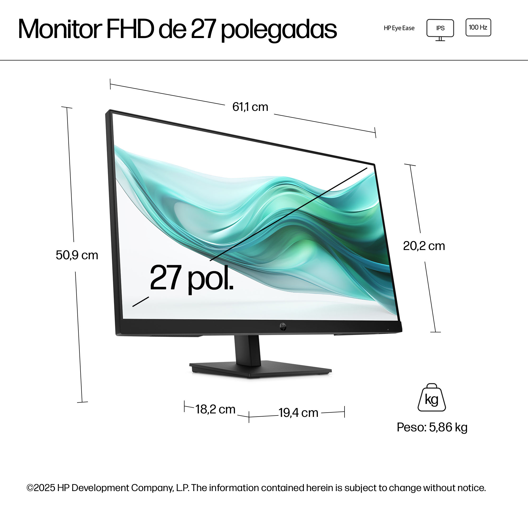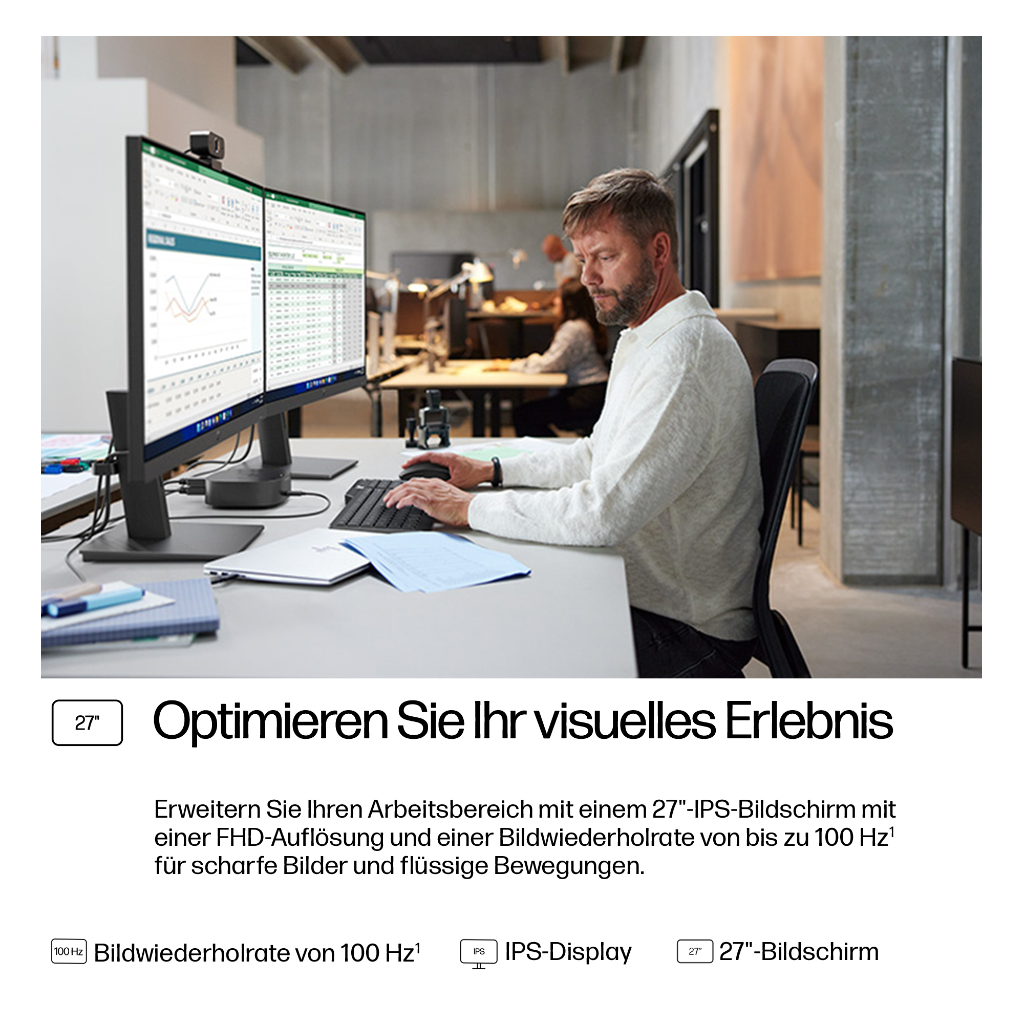 - 27-inch Full HD (1920 x 1080) display delivers sharp, vibrant images ideal for detailed work and video conferencing.