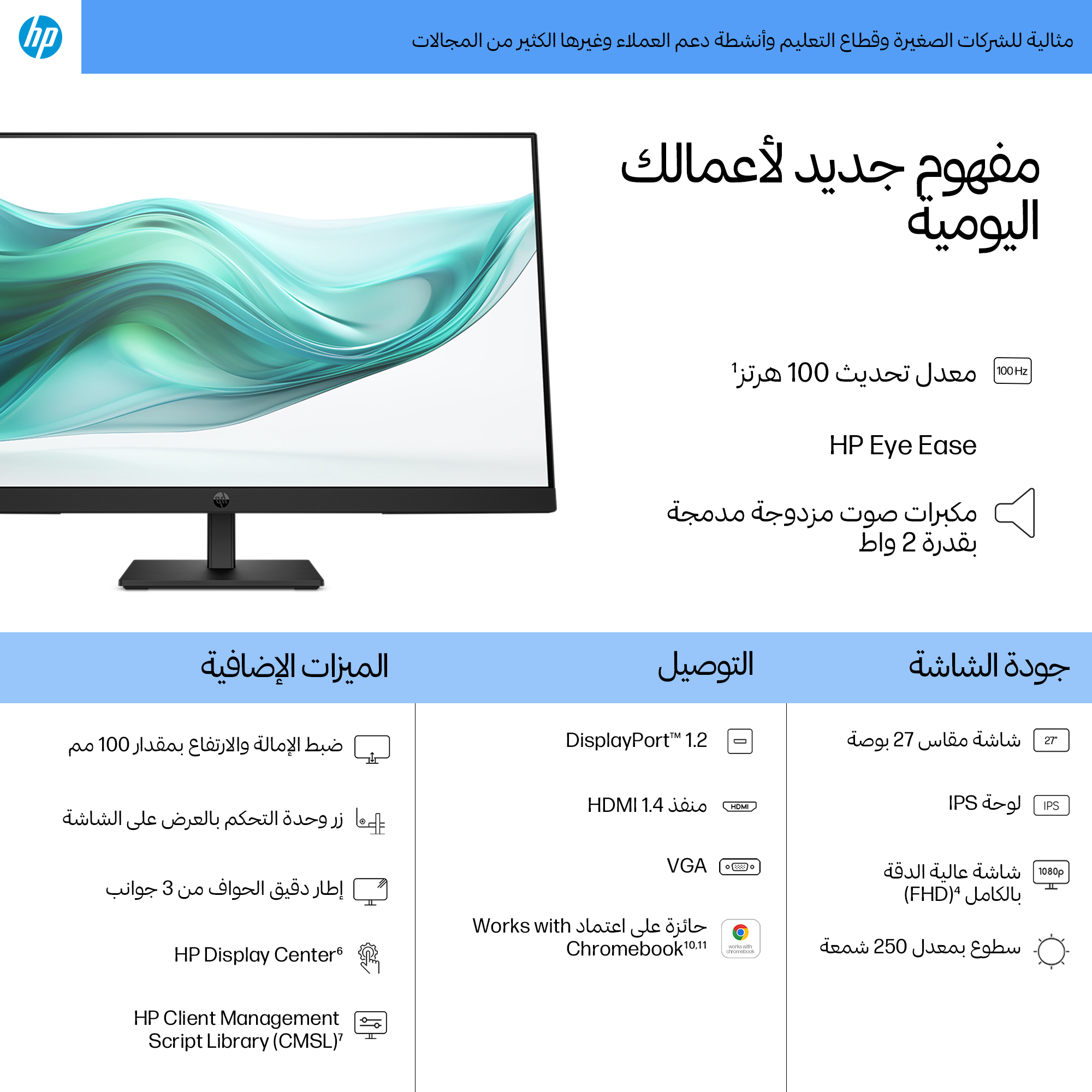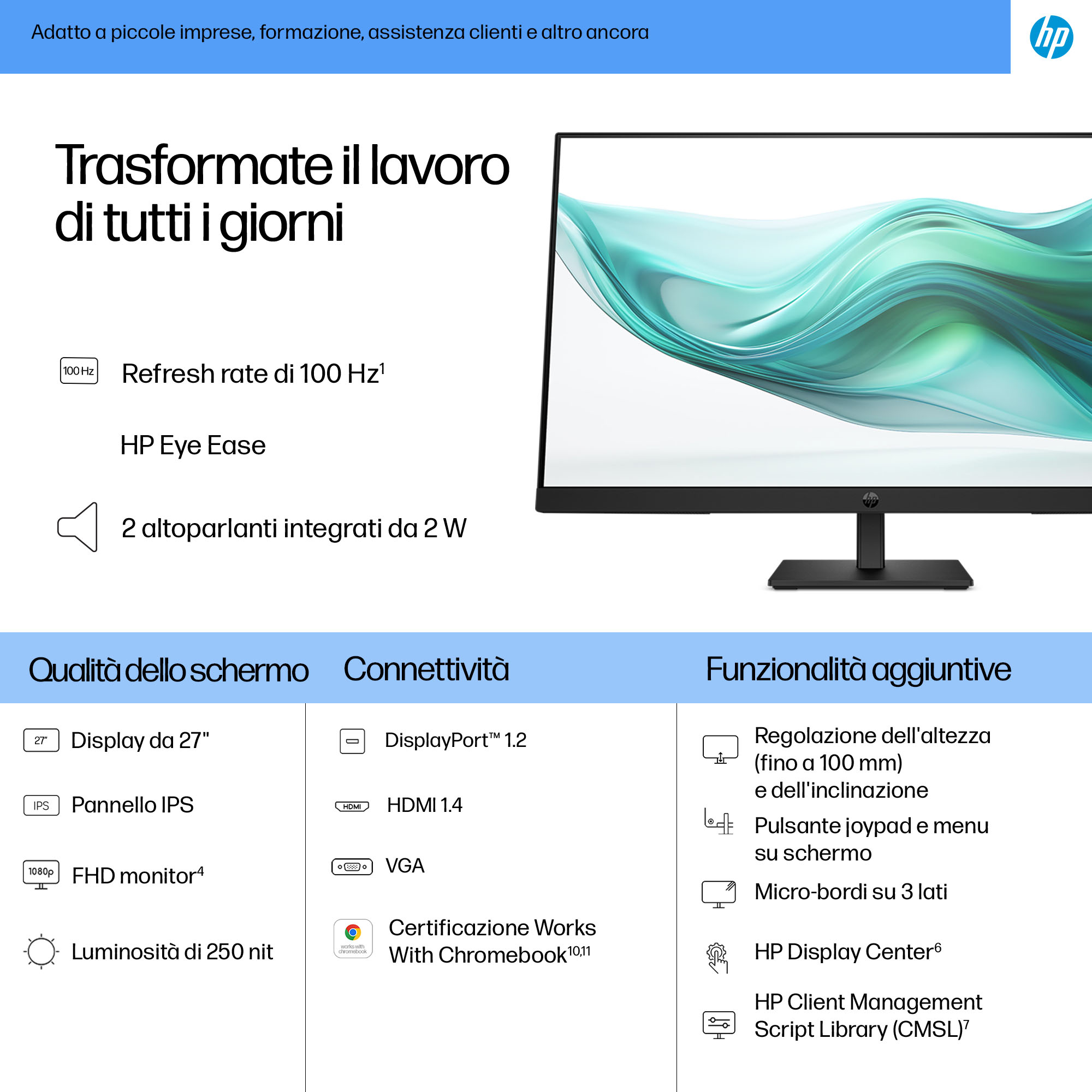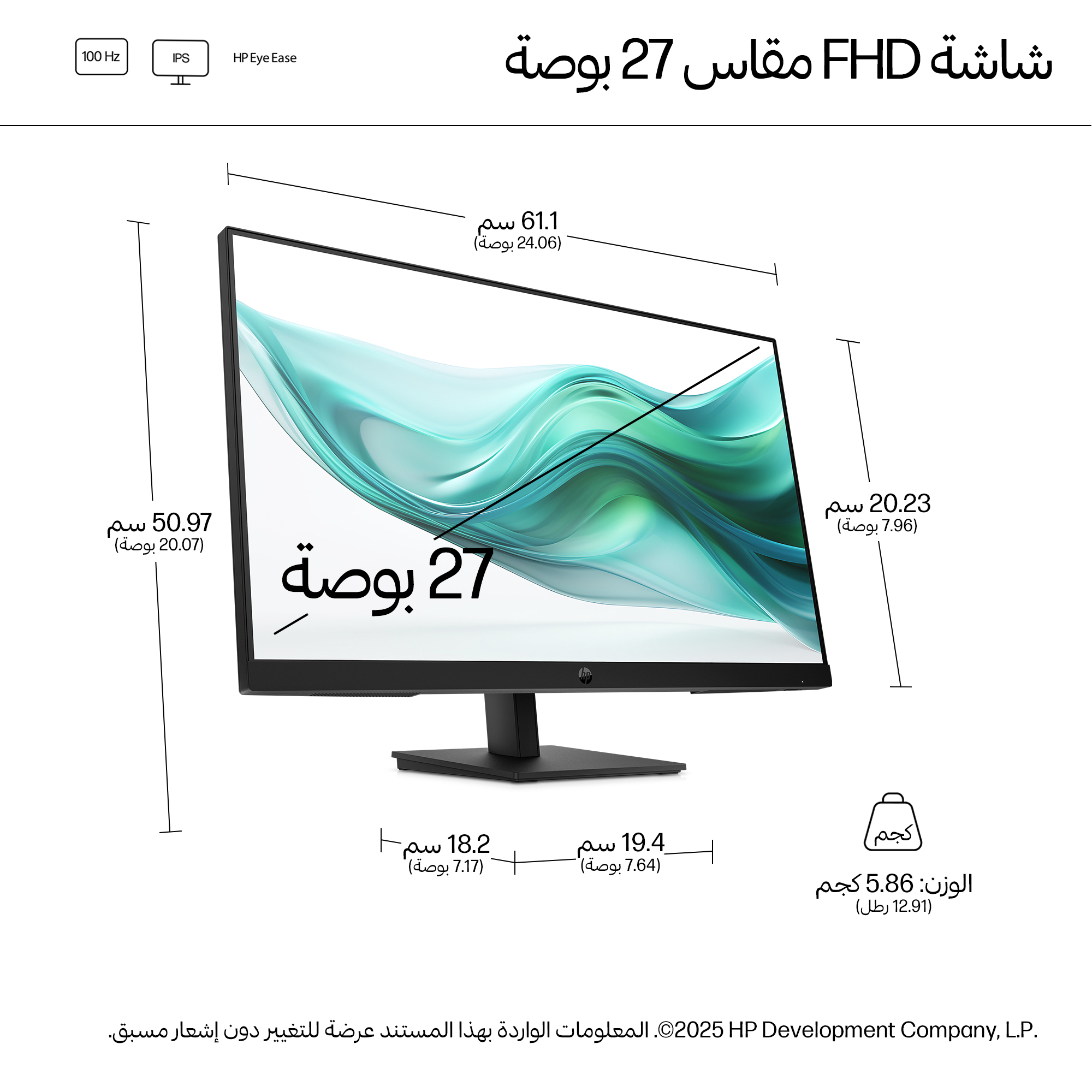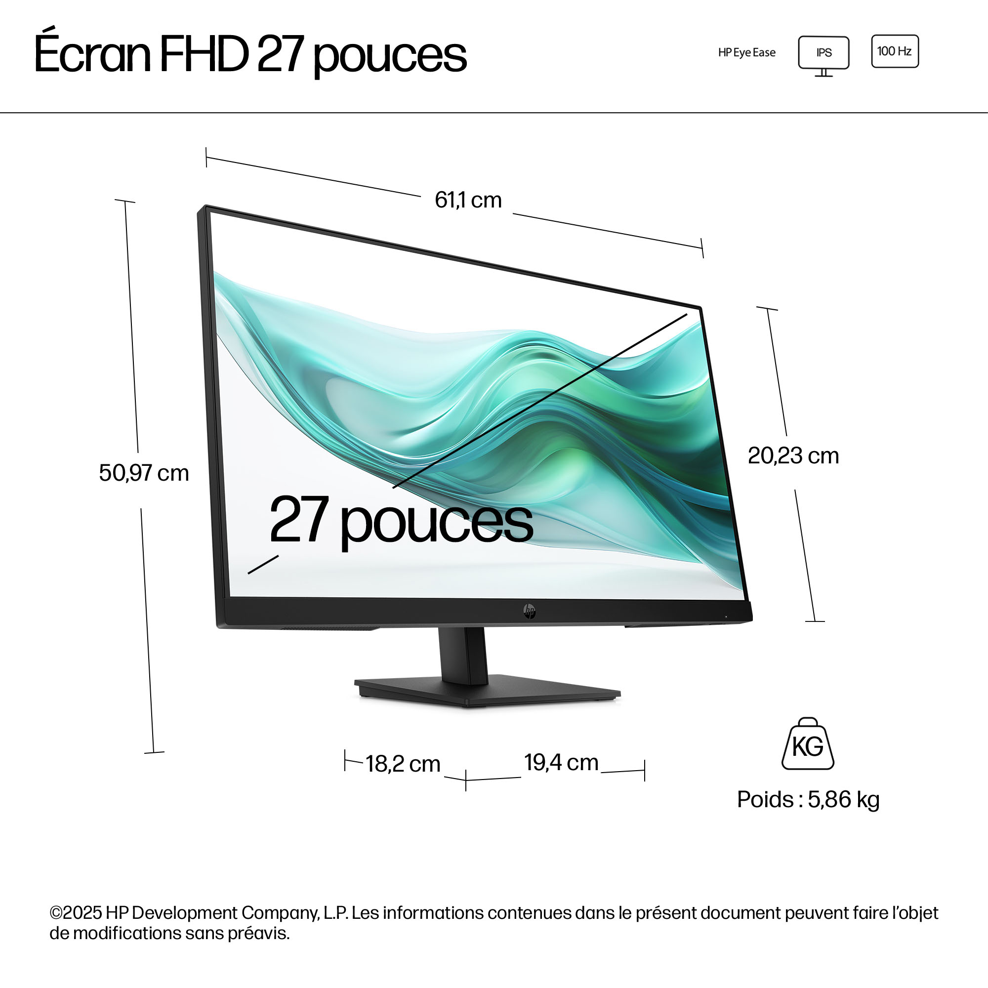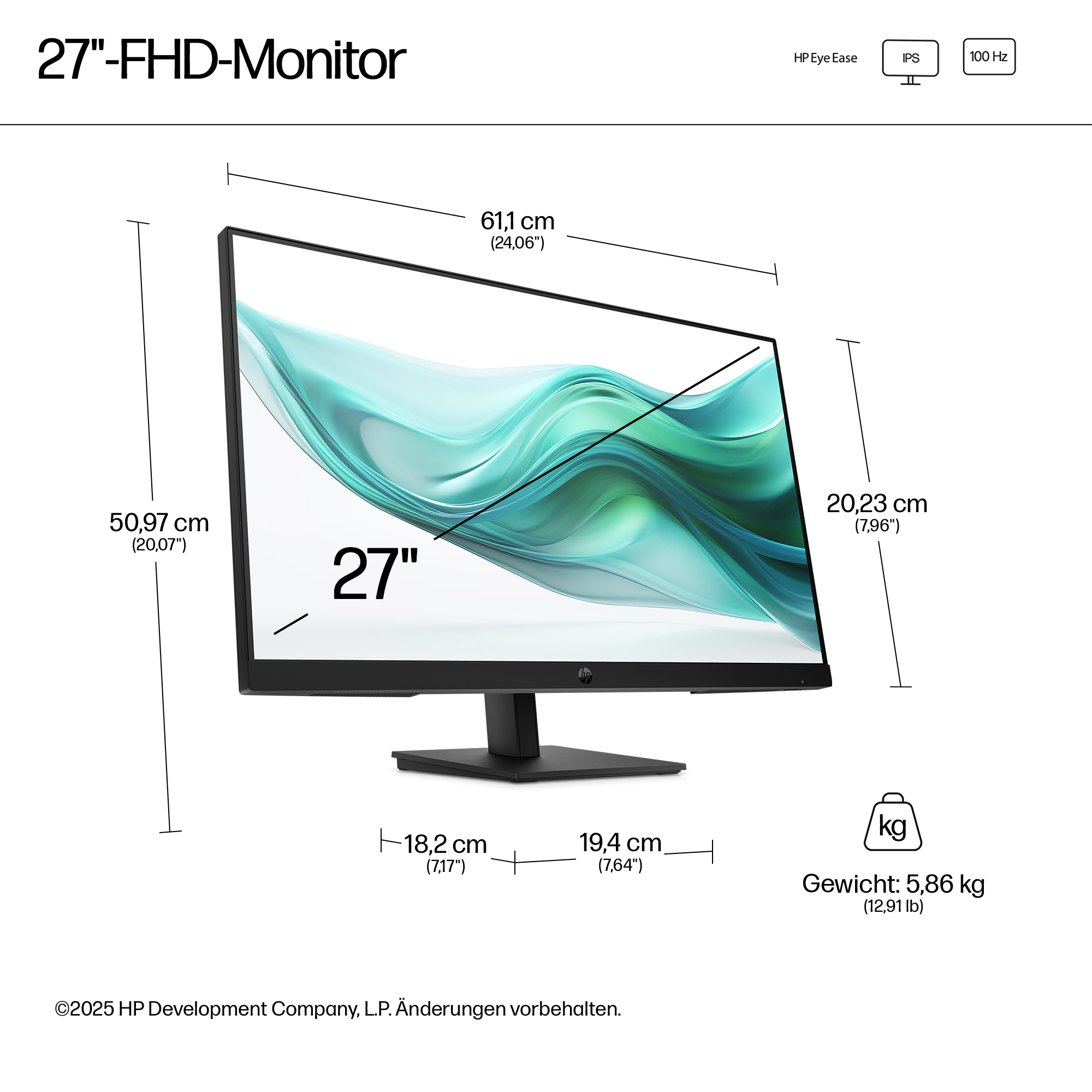 - 27-inch Full HD (1920 x 1080) display delivers sharp, vibrant images ideal for detailed work and video conferencing.
