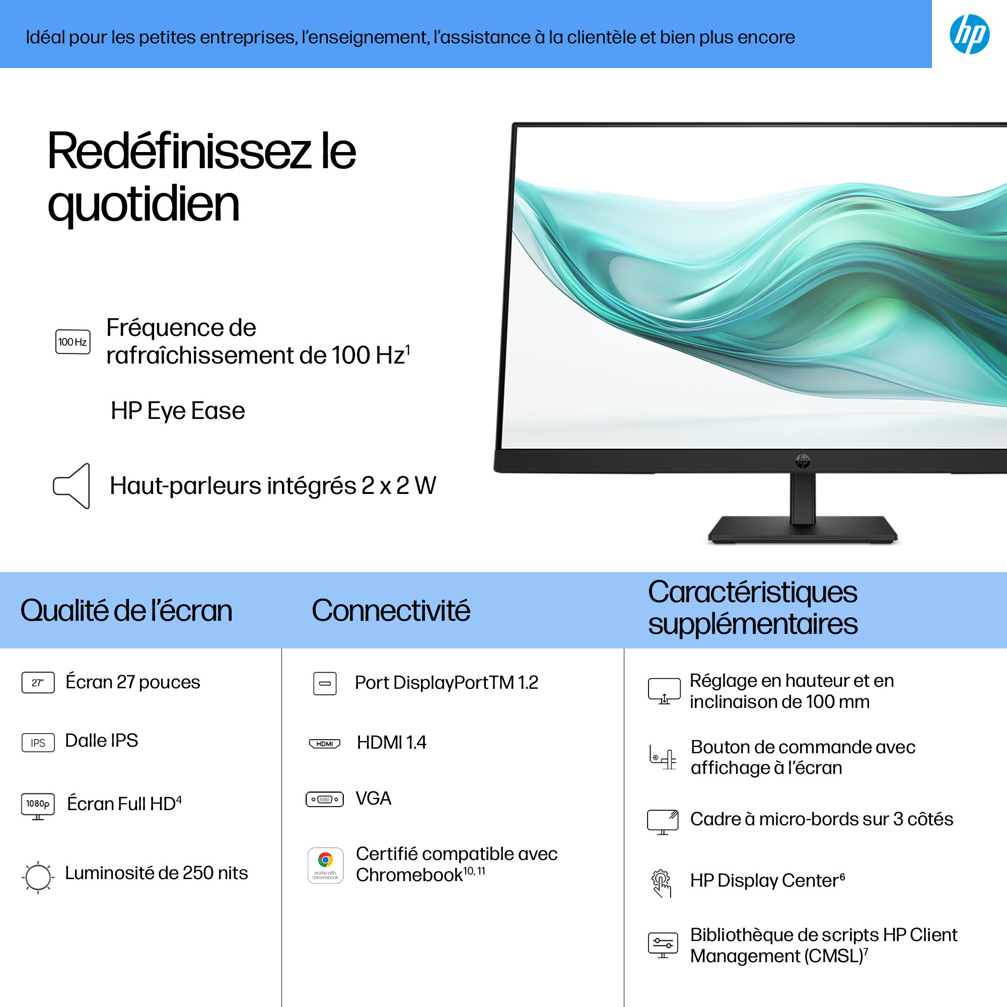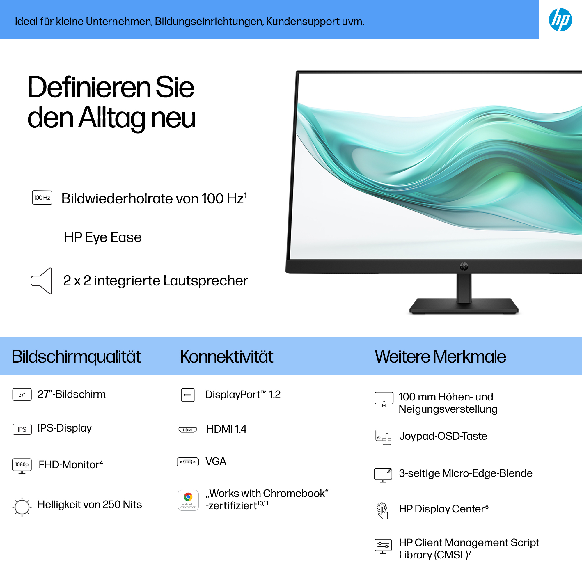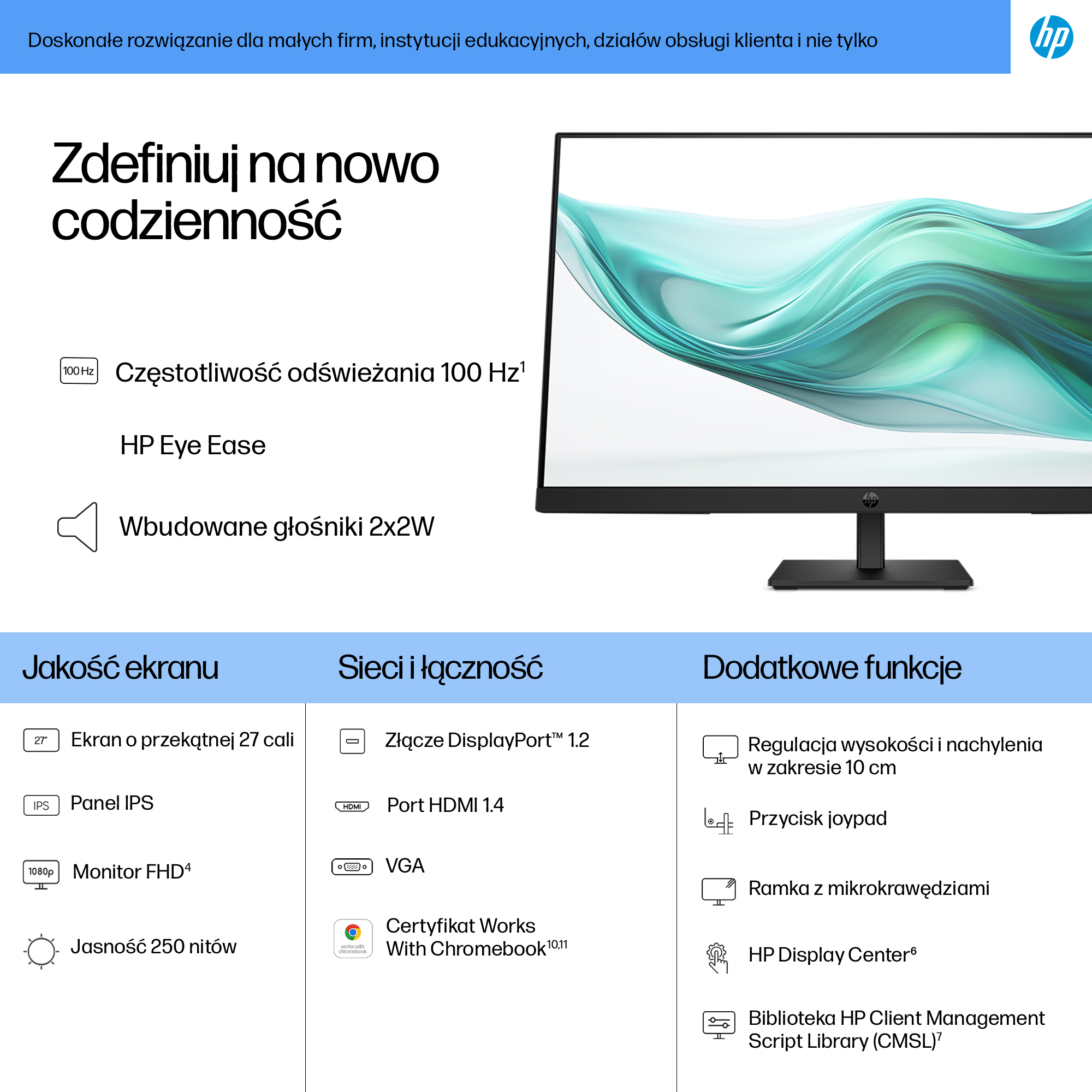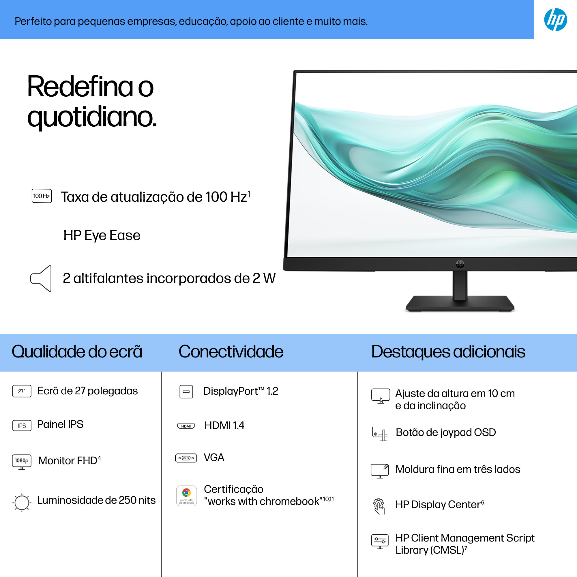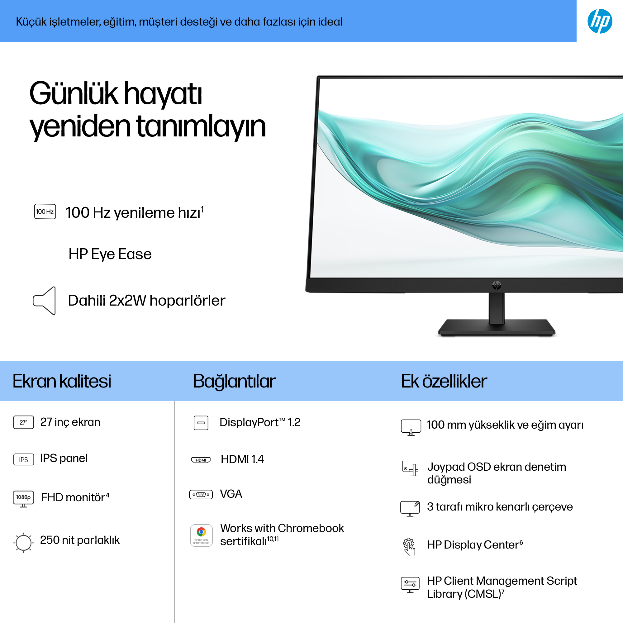 - 27-inch Full HD (1920 x 1080) display delivers sharp, vibrant images ideal for detailed work and video conferencing.