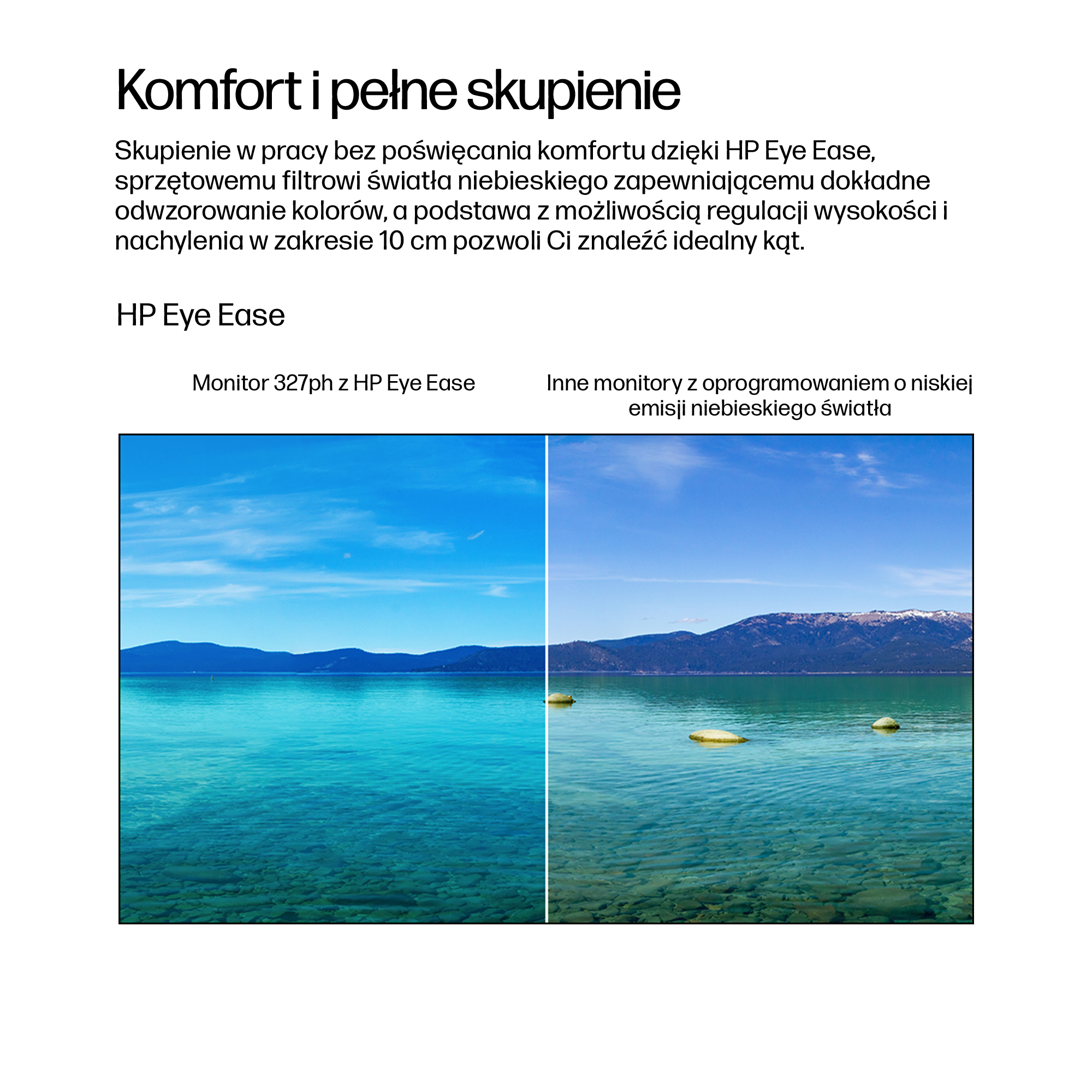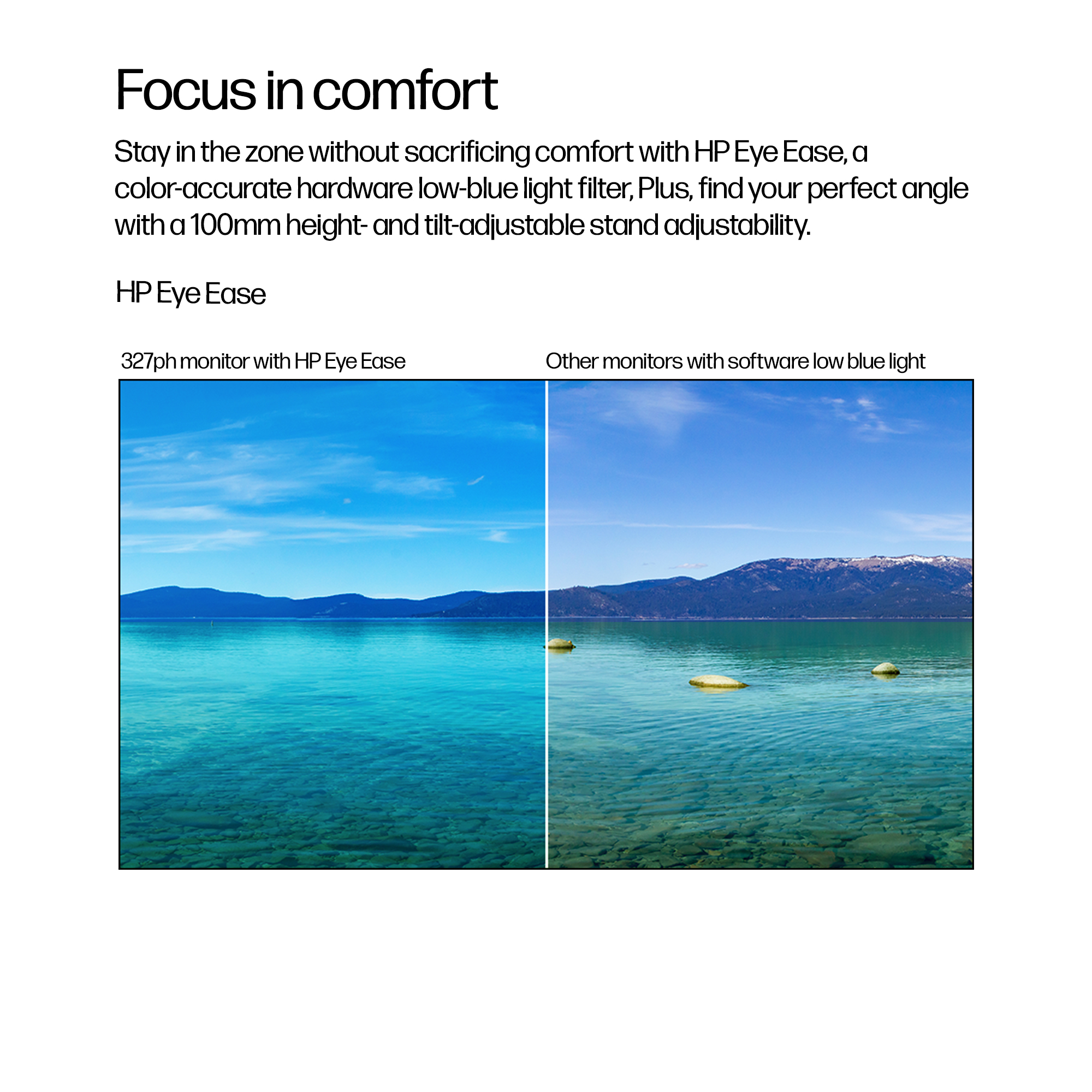 The HP Series 3 Pro 27 inch FHD Monitor – 327ph computer monitor features a sleek, minimalist design with narrow bezels that maximise screen real estate. Its matte black finish complements professional office environments, while the sturdy stand provides stable support with easy tilt adjustments. This monitor balances aesthetics and functionality, making it a smart addition to any modern workspace.