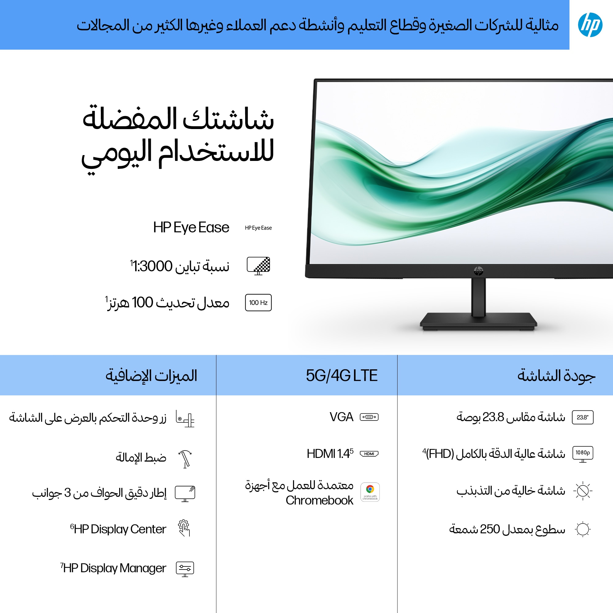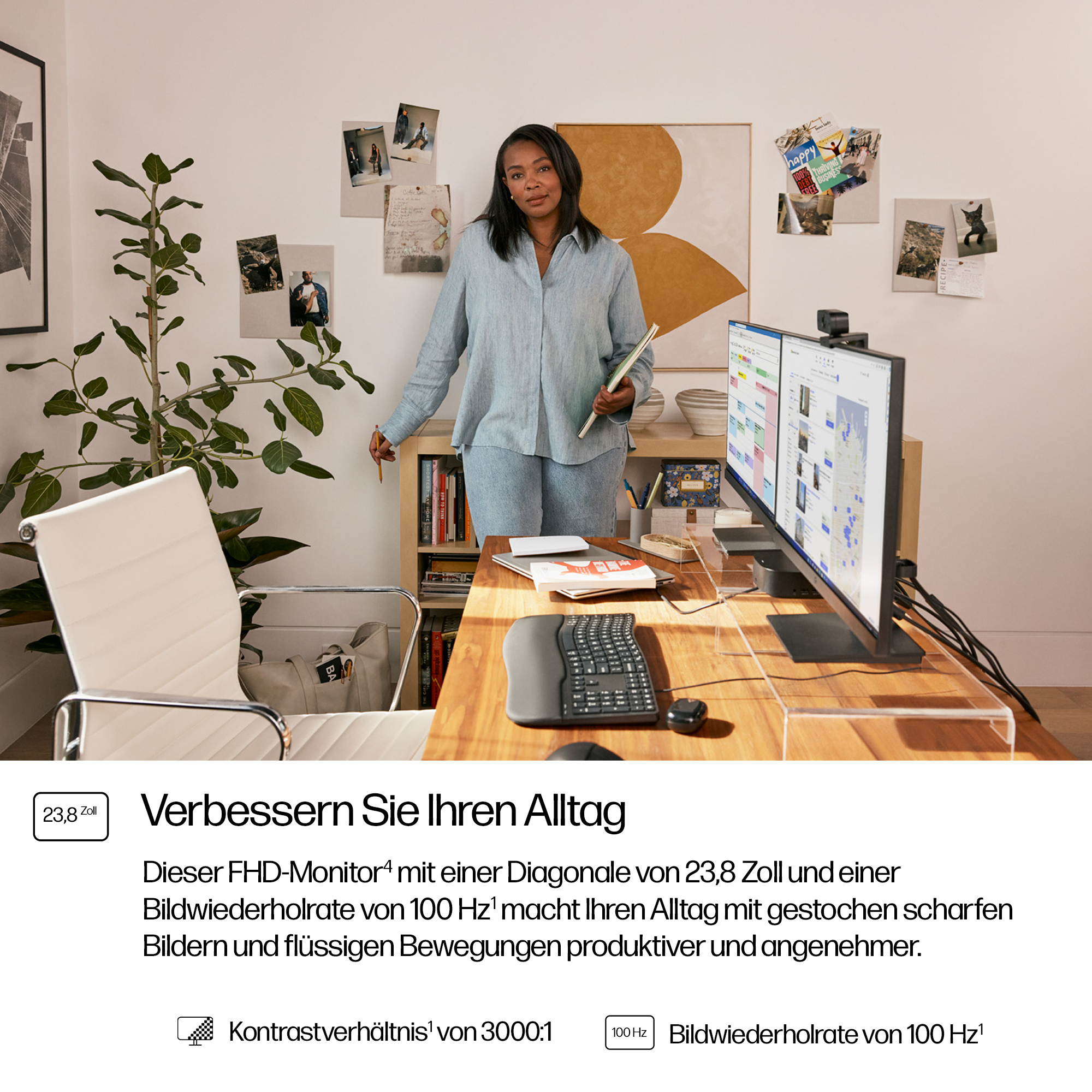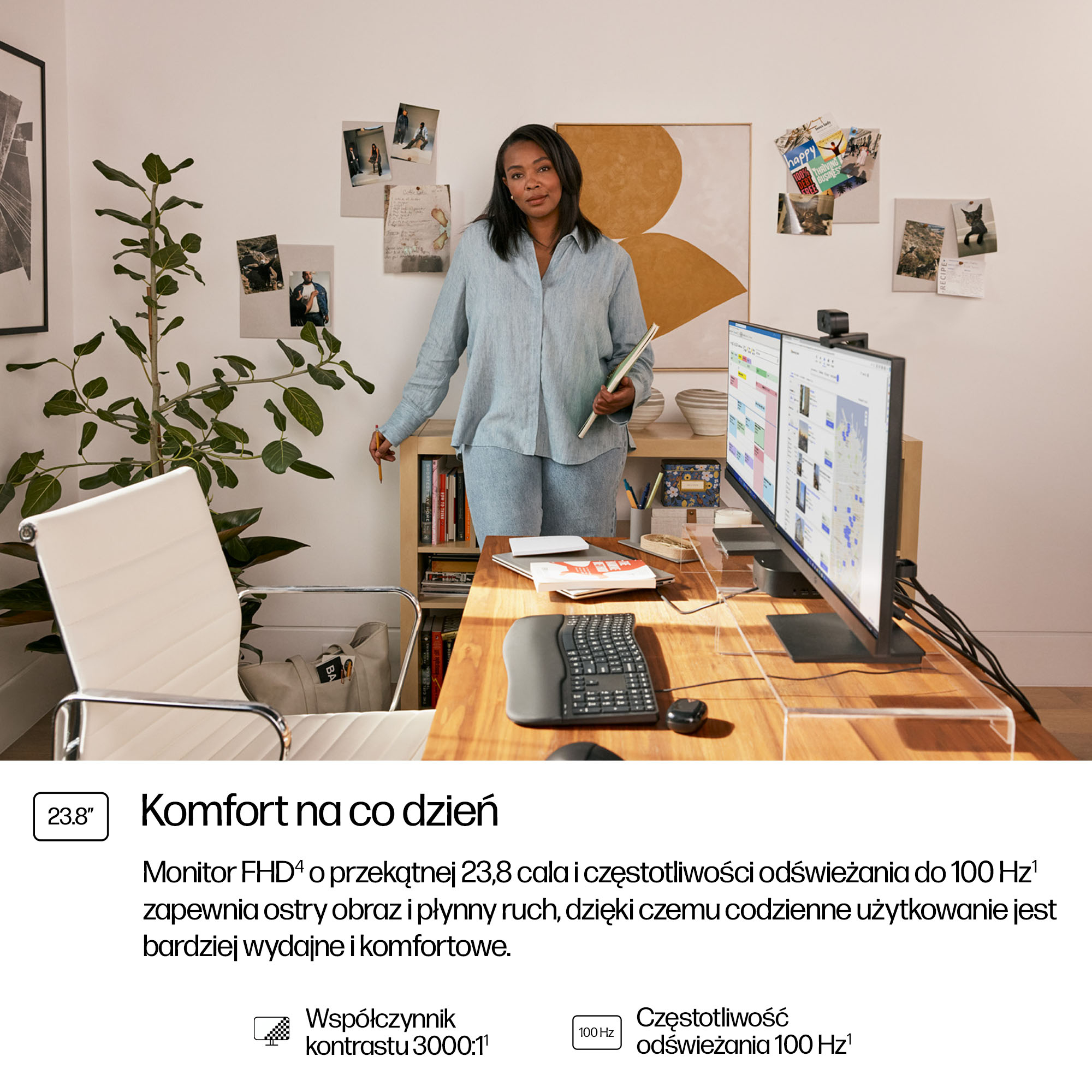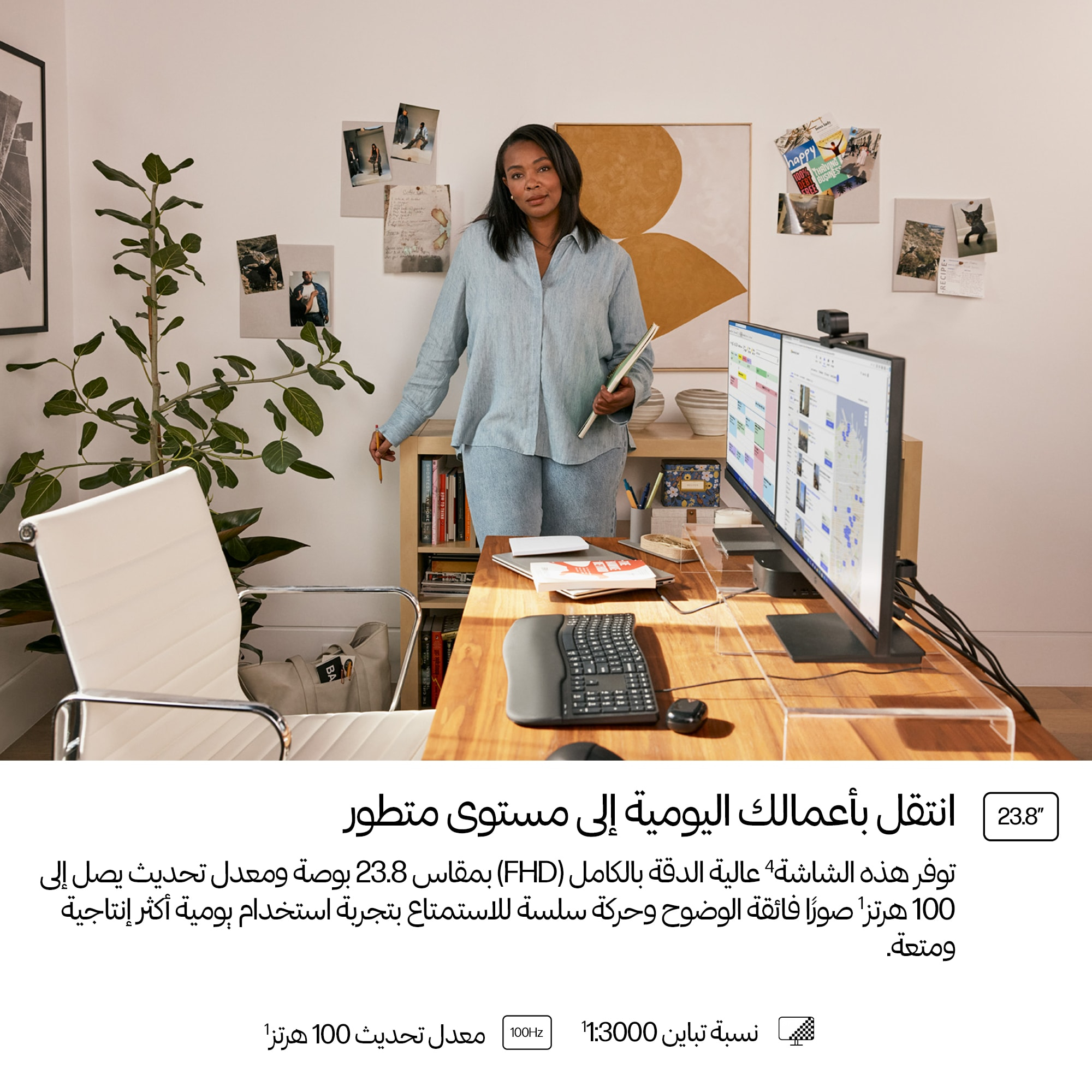 - 23.8-inch Full HD (1920 x 1080) display delivering sharp, clear images for detailed work and presentations.