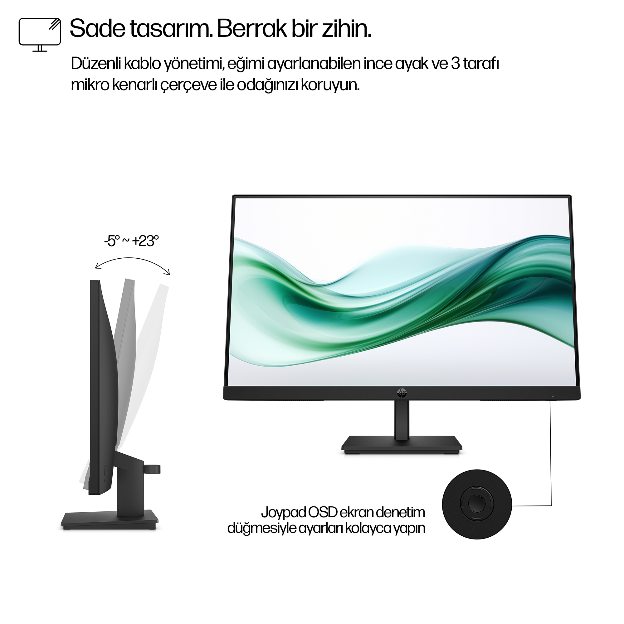 The HP Series 3 Pro 23.8 inch FHD Monitor – 324pv computer monitor features a modern, minimalist design with slim bezels that maximise screen real estate. Its matte black finish complements any professional workspace, while the adjustable tilt stand ensures user comfort throughout the day. The compact footprint makes it suitable for both individual desks and shared workstations.