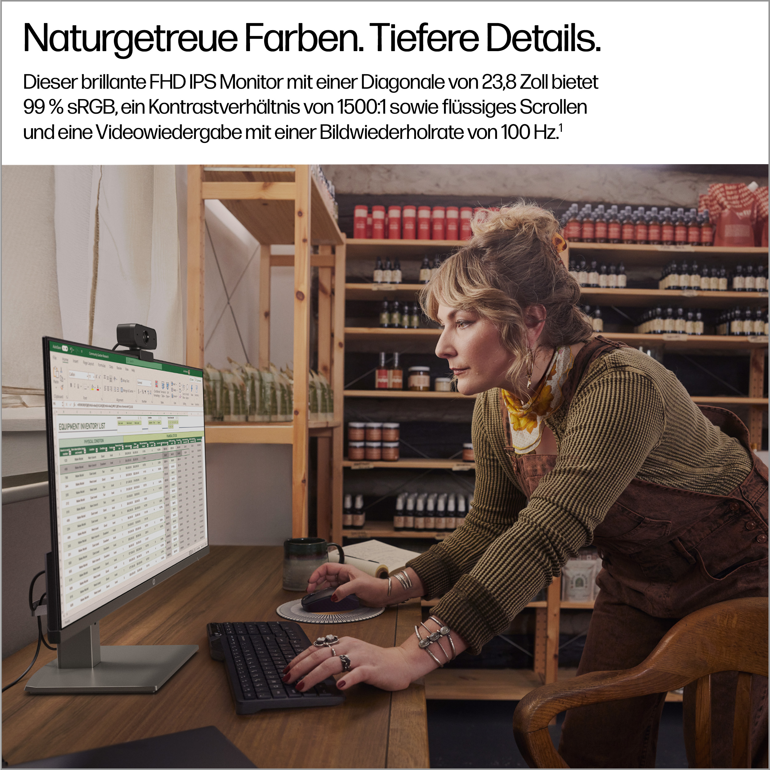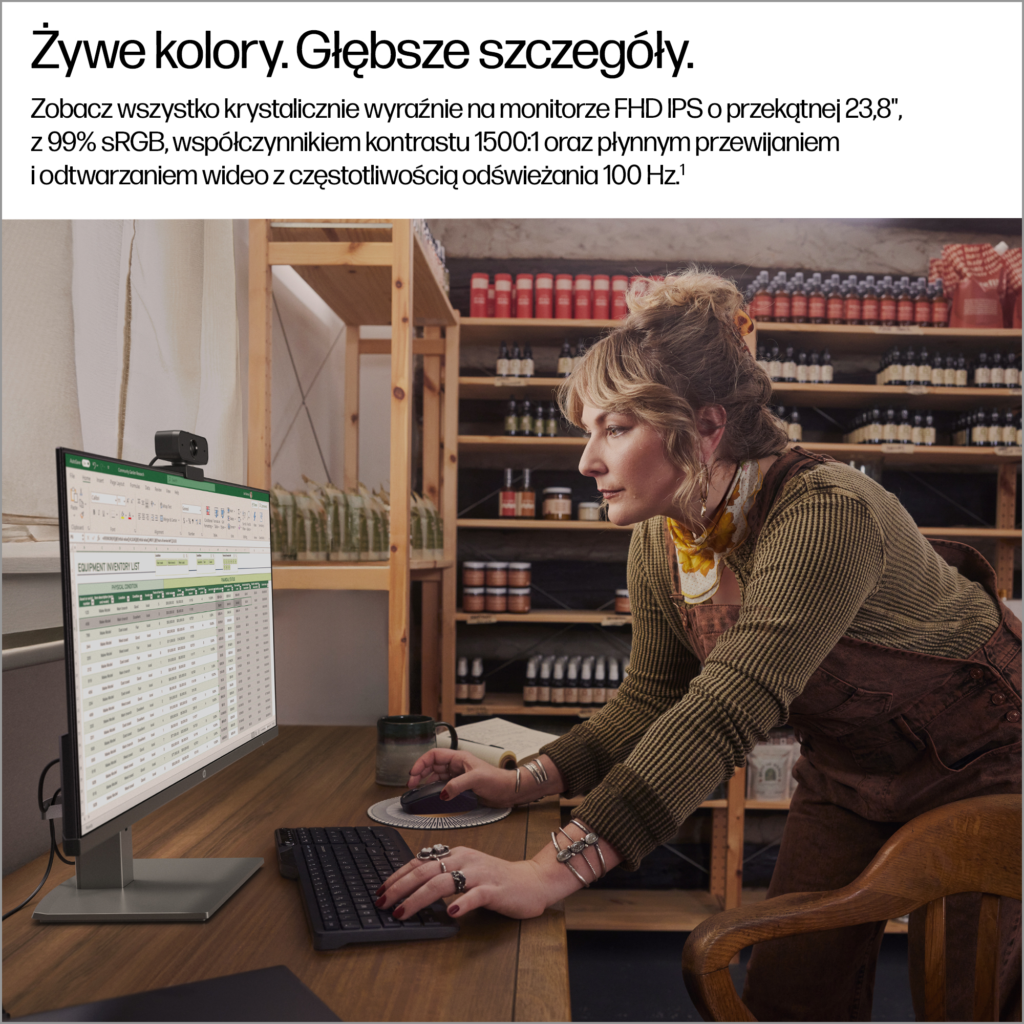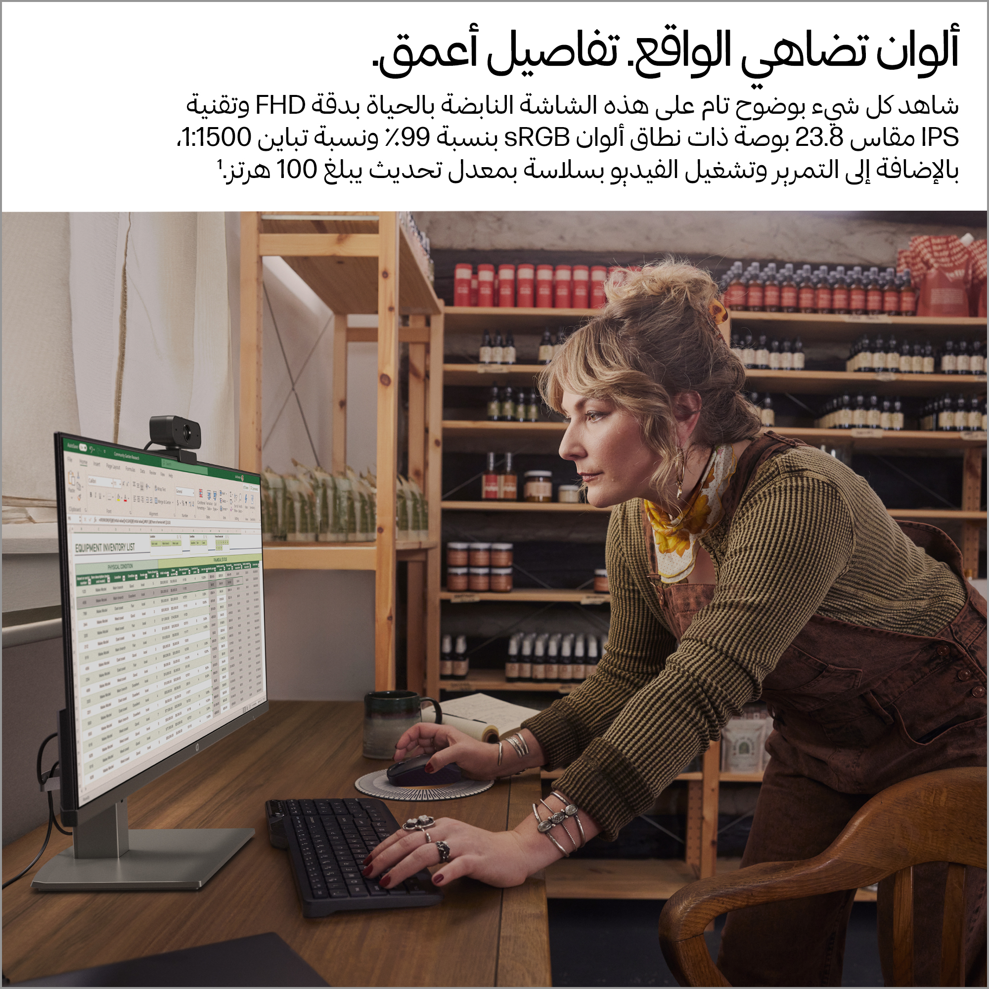- 23.8 inch Full HD (1920 x 1080) IPS panel delivers sharp, vibrant images with wide viewing angles for collaborative work.