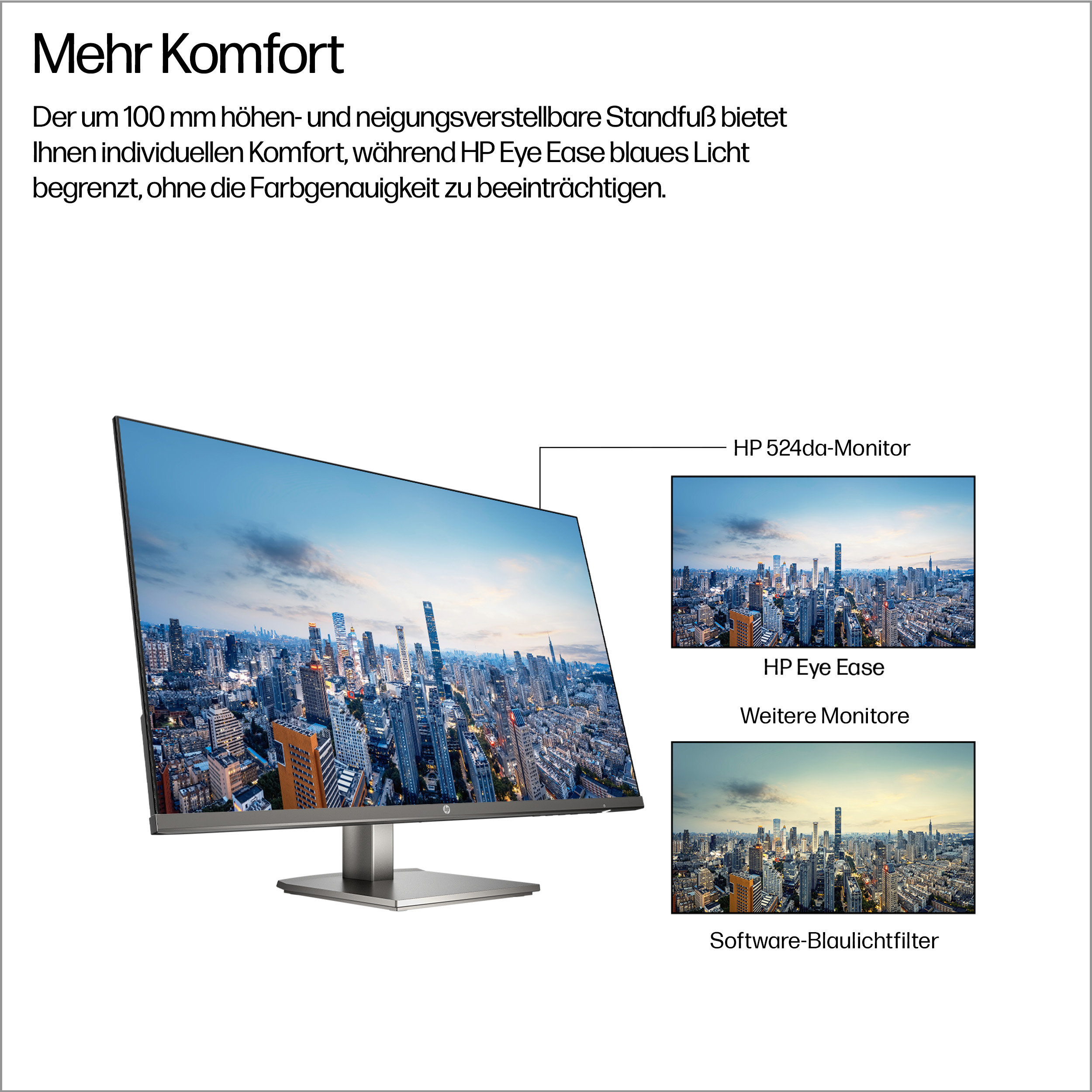 The HP Series 5 23.8 inch FHD Monitor – 524da computer monitor features a modern, minimalist design with slim bezels that maximise screen real estate. Its matte black finish complements professional office environments, while the ergonomic stand offers tilt adjustments for personalised comfort. This monitor’s sleek profile fits neatly into any workspace, supporting both aesthetic appeal and functional efficiency.