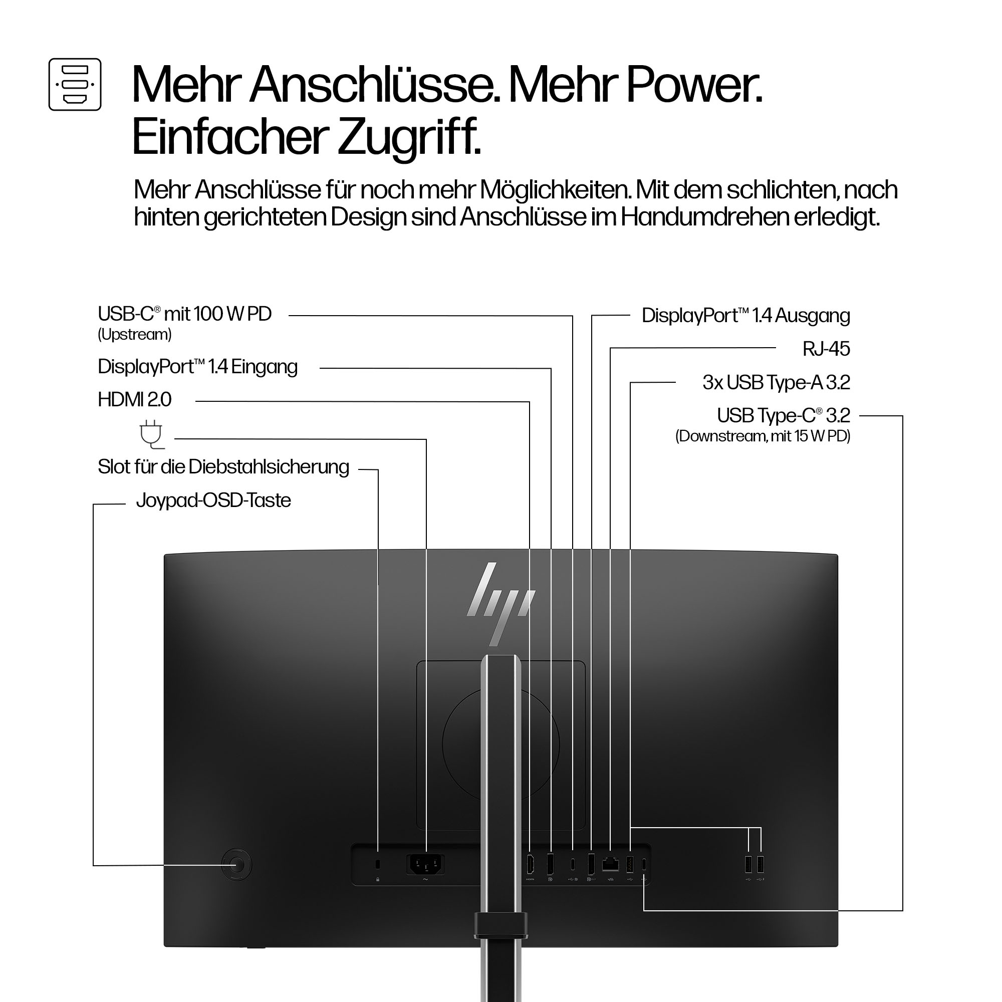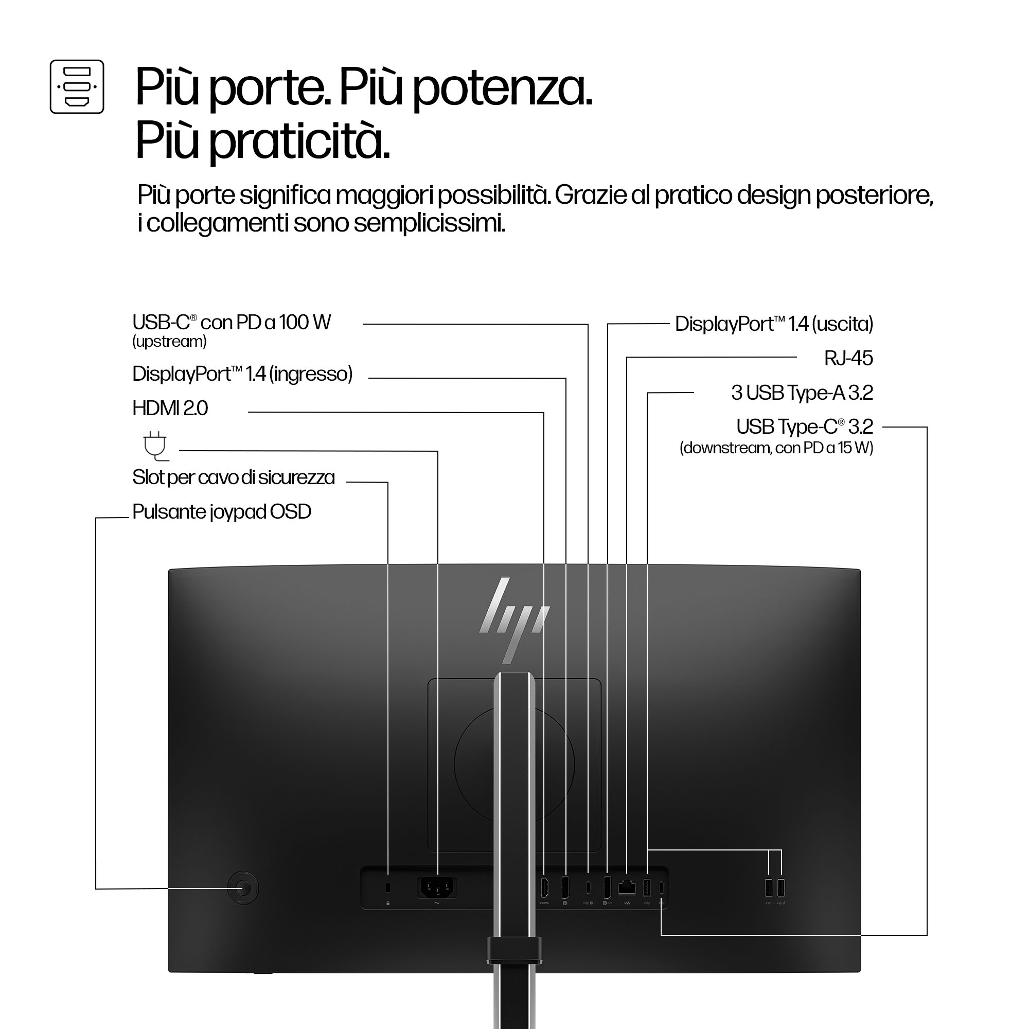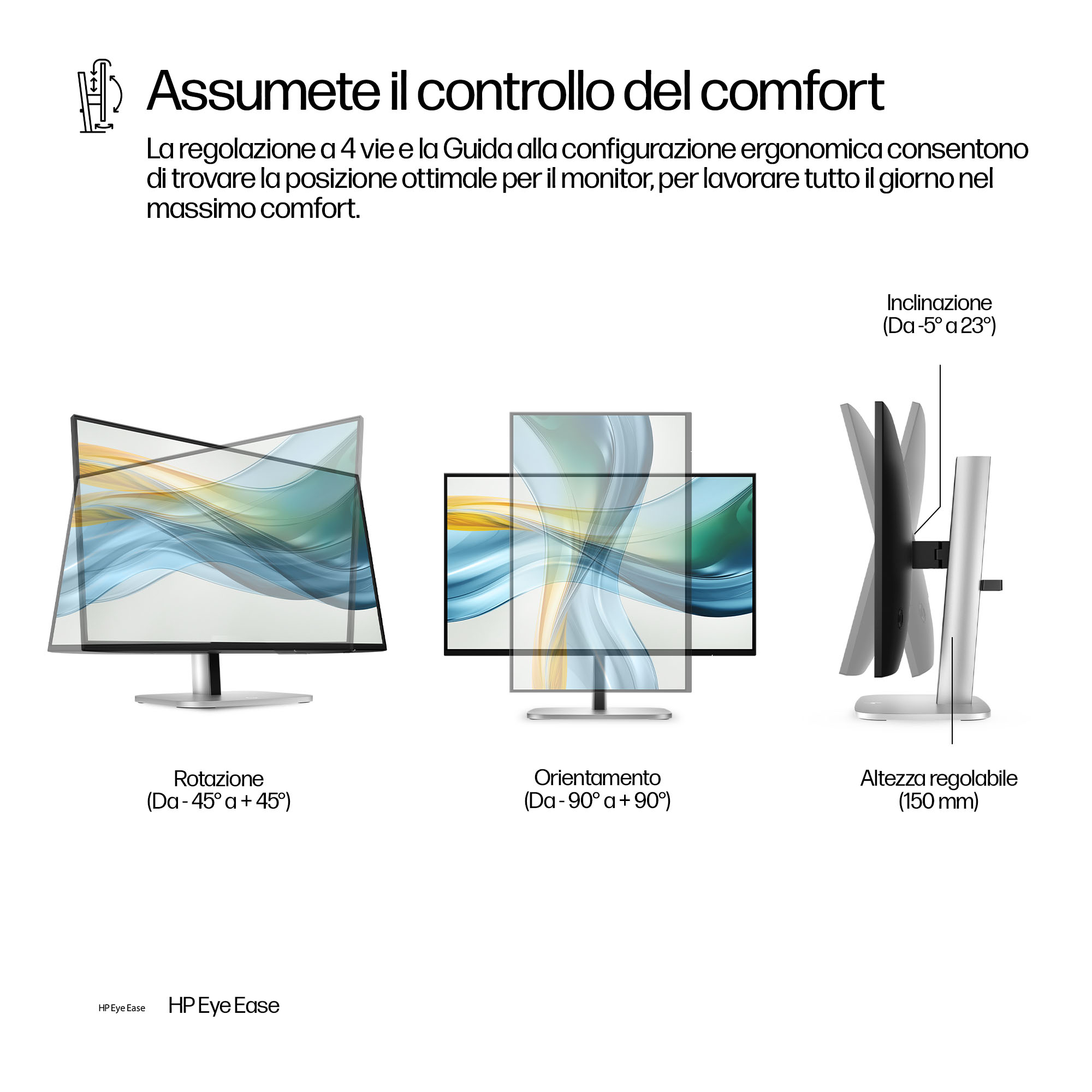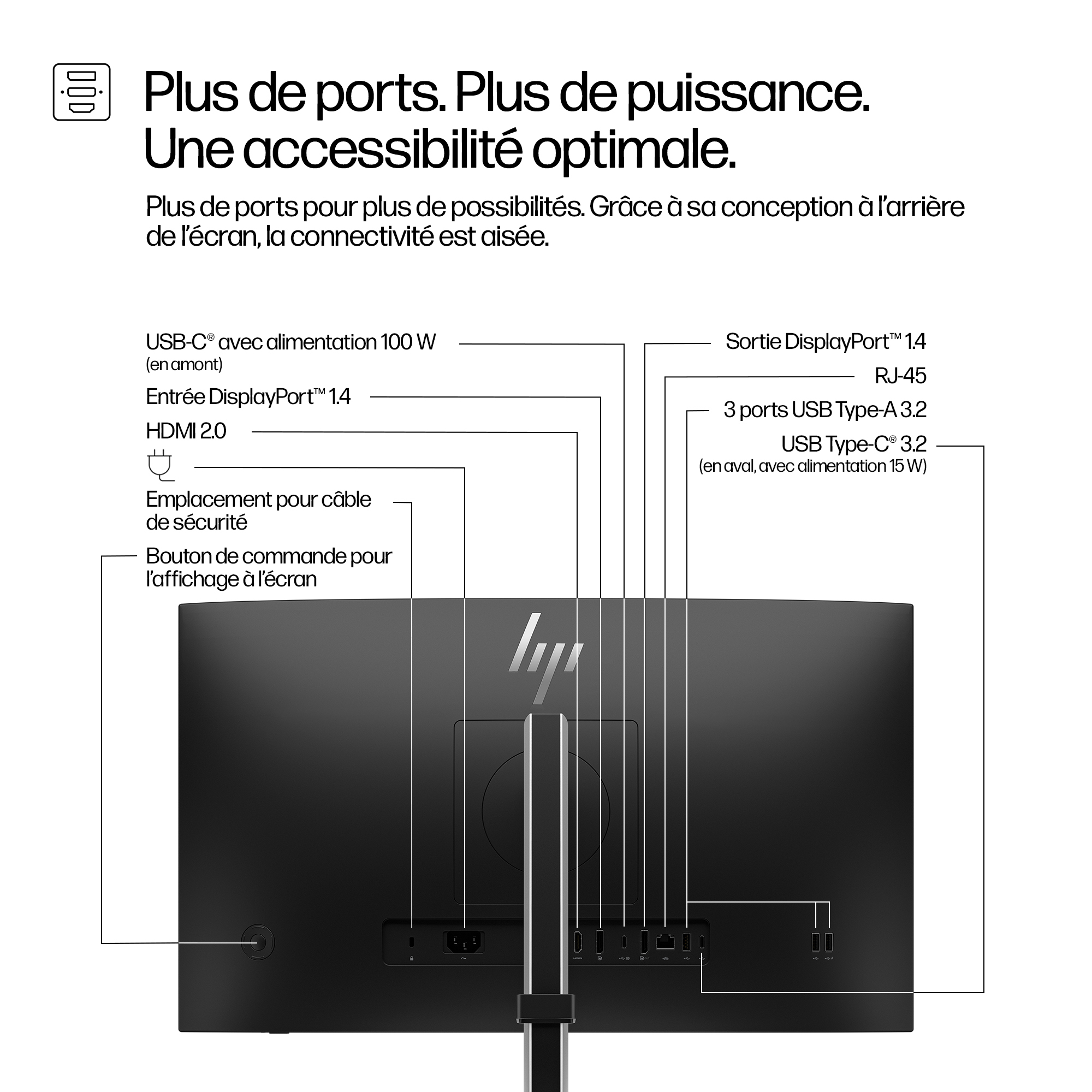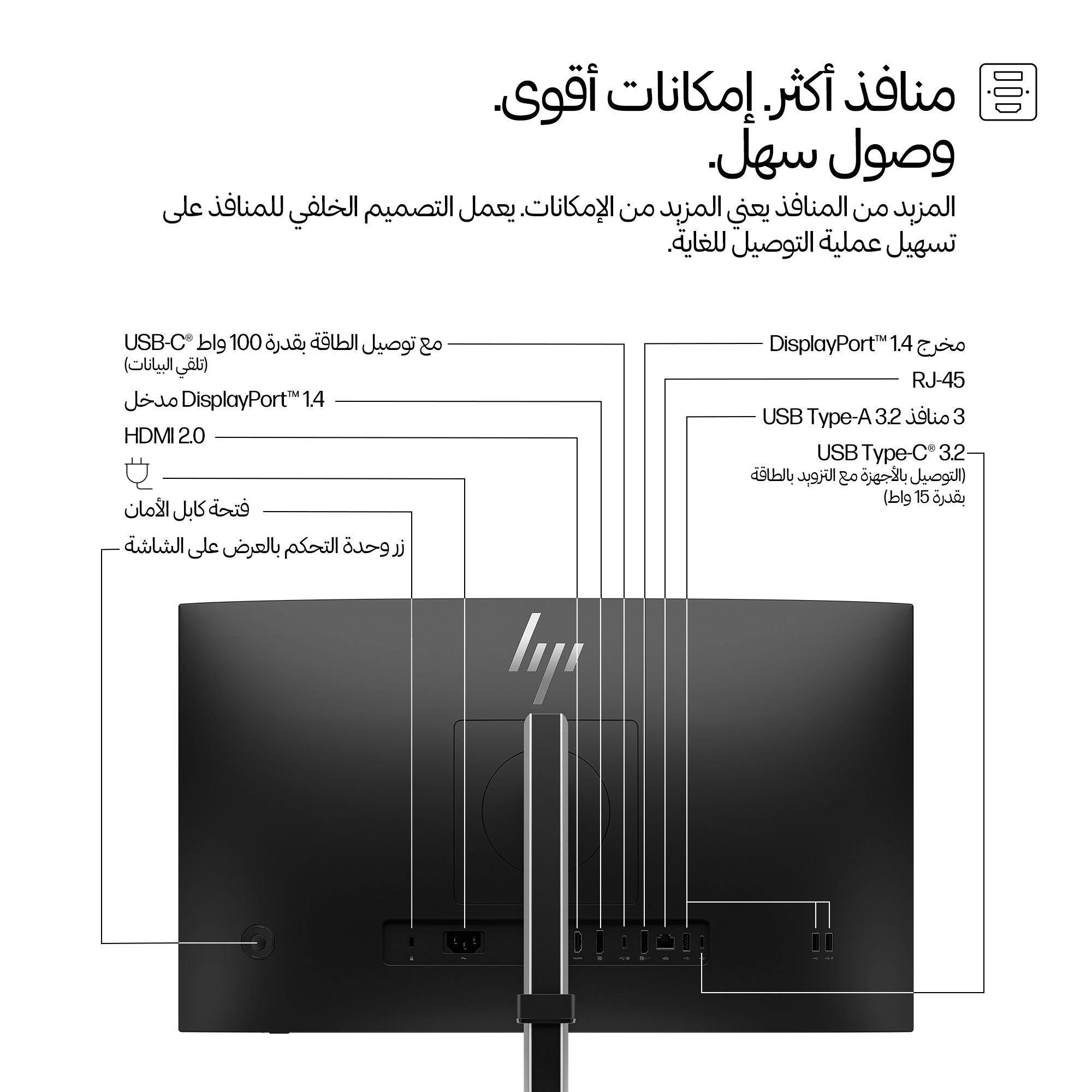 The HP Series 5 Pro 23.8 inch FHD USB-C Monitor – 524pu computer monitor features a sleek, minimalist design with narrow bezels that maximise screen real estate and create a modern, professional look. Its matte black finish complements any office décor, while the ergonomic stand ensures user comfort throughout the workday. The compact footprint makes it ideal for both individual desks and shared workspaces.