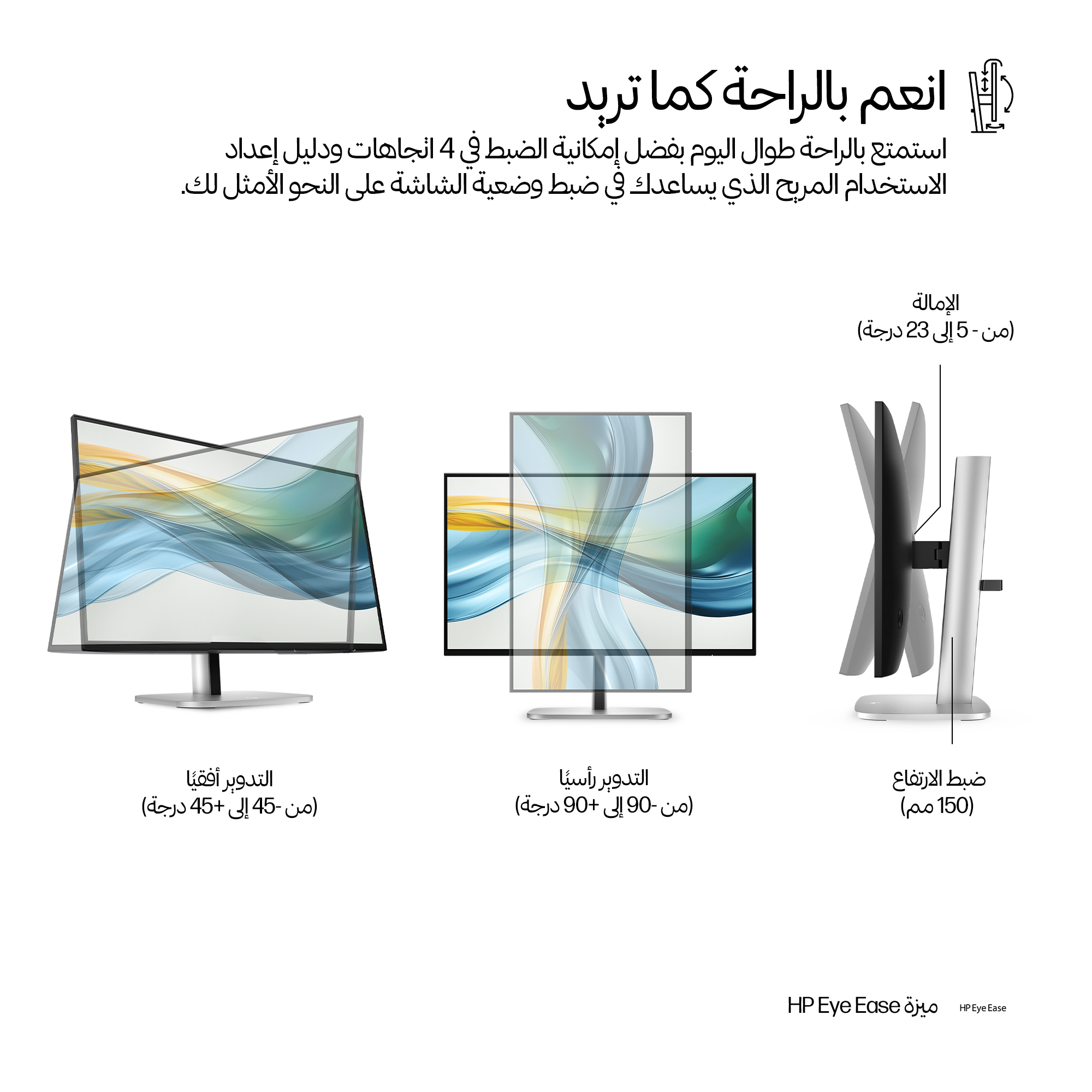 - Adjustable stand with tilt, swivel, and height options supports comfortable, customised viewing positions for extended use.