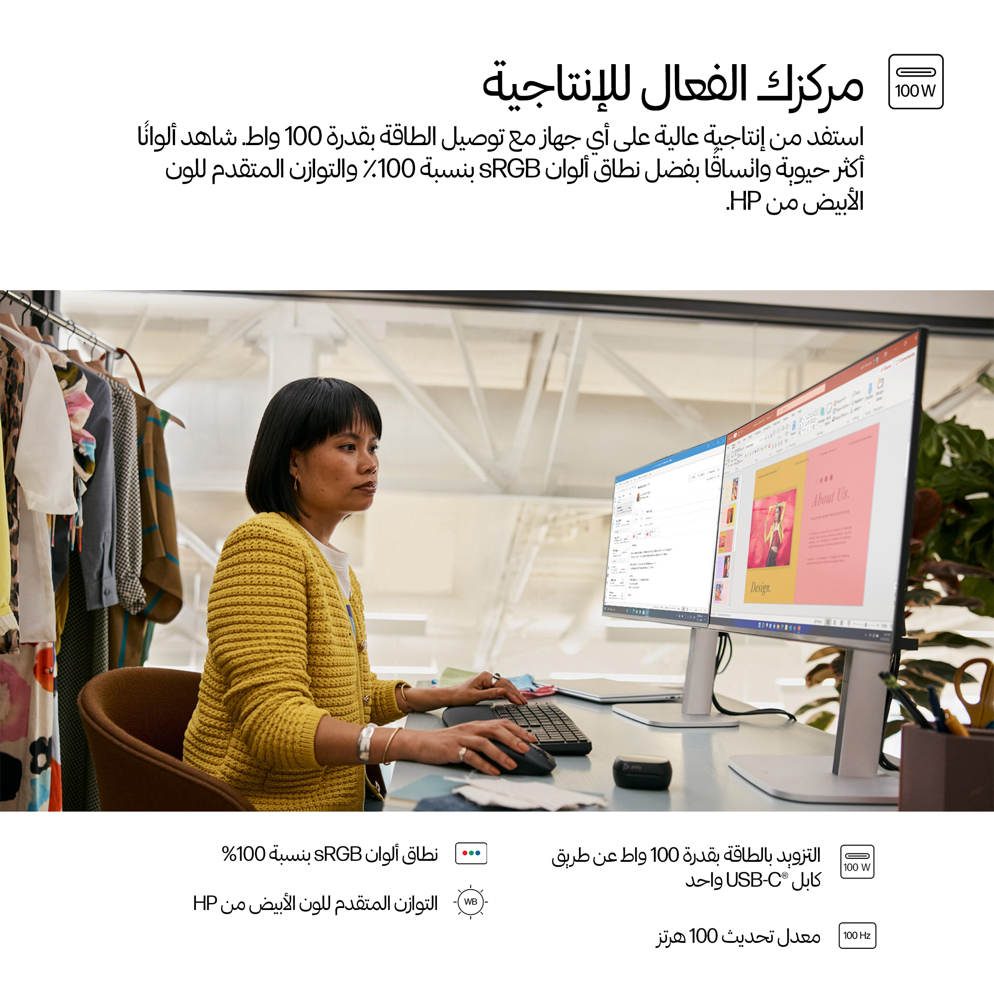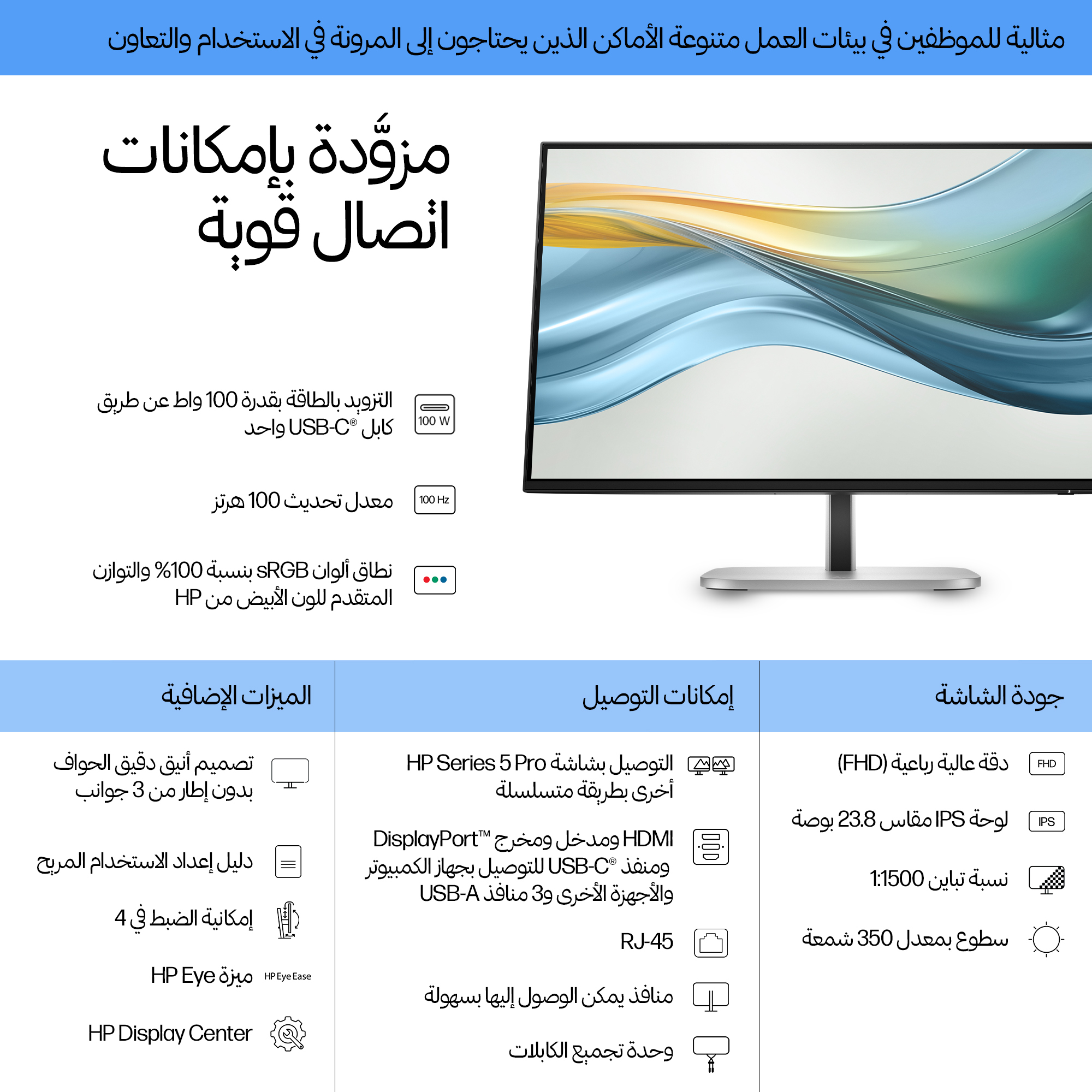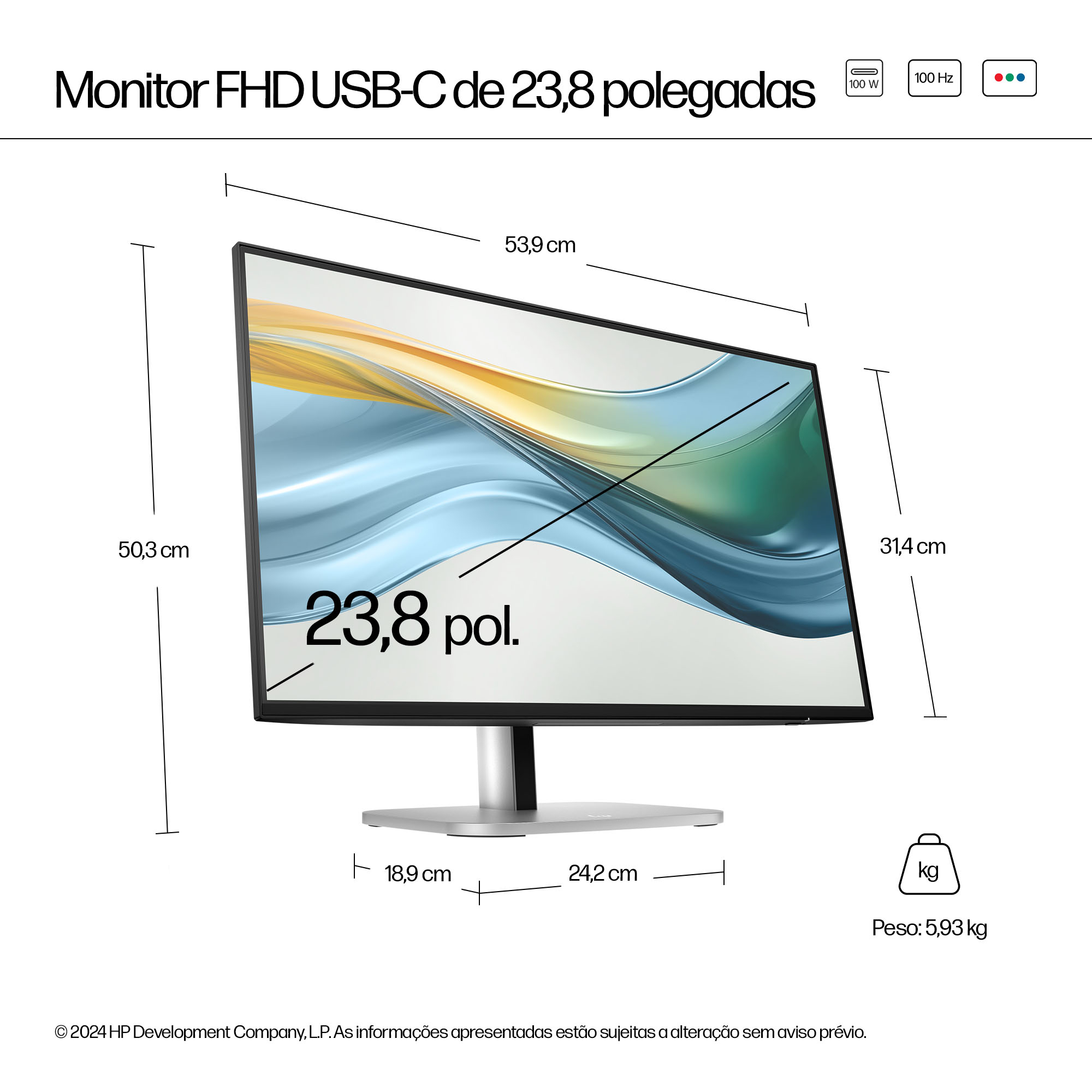 - 23.8 inch Full HD (1920 x 1080) IPS panel delivers sharp, vibrant visuals with wide viewing angles for collaborative work.