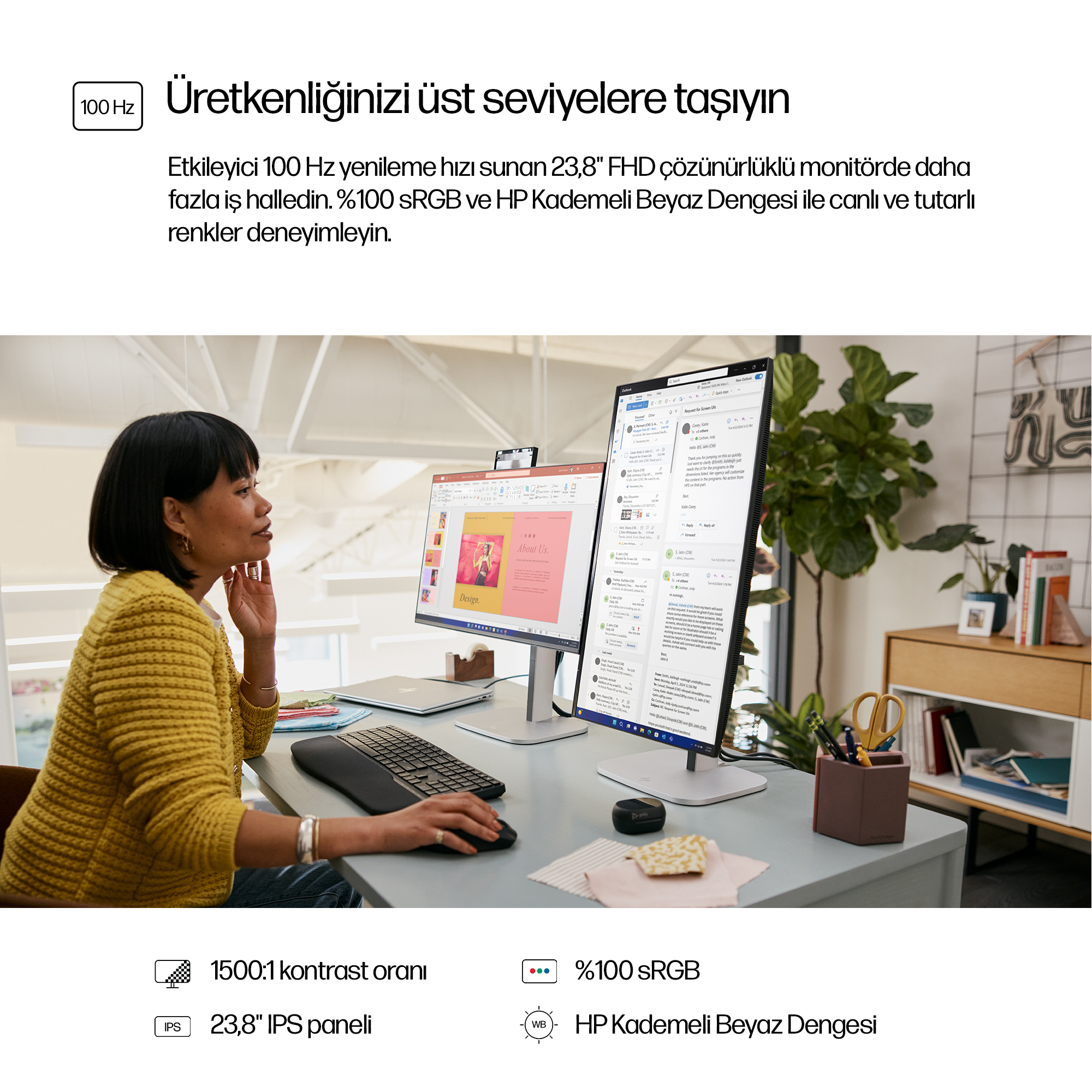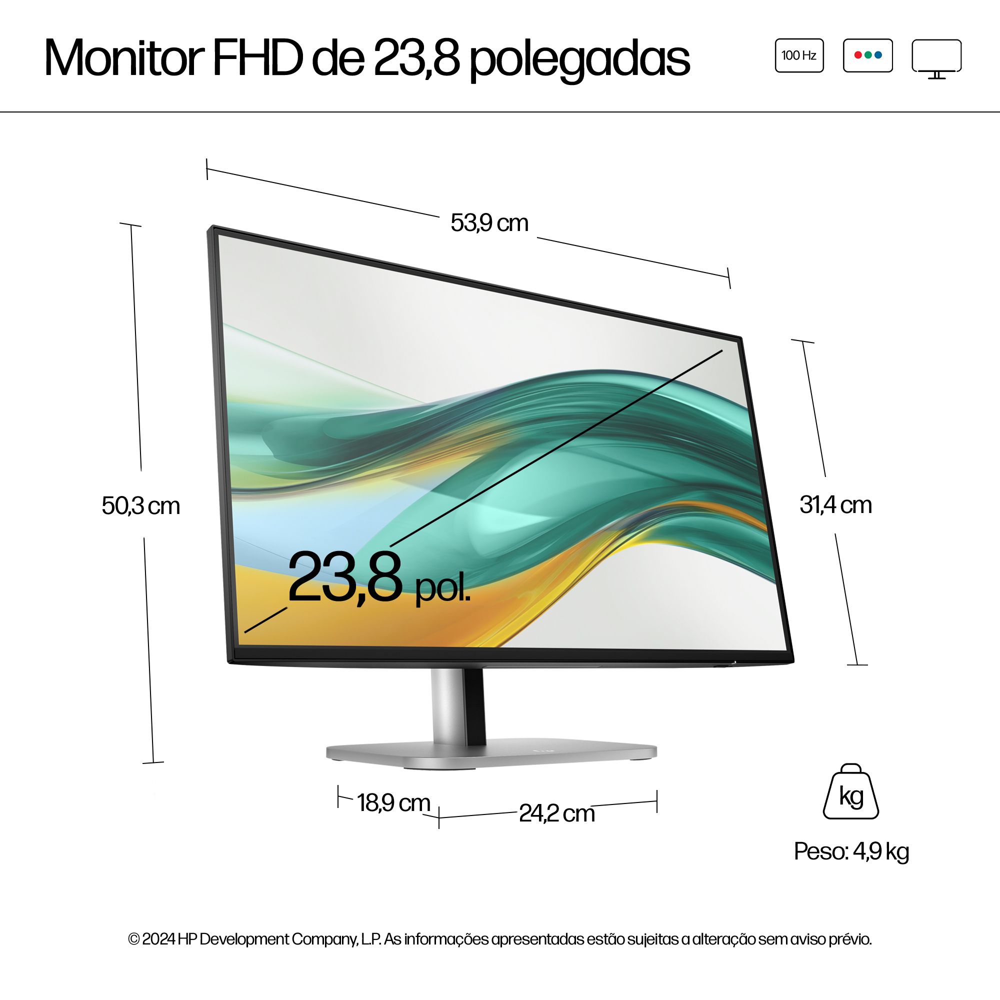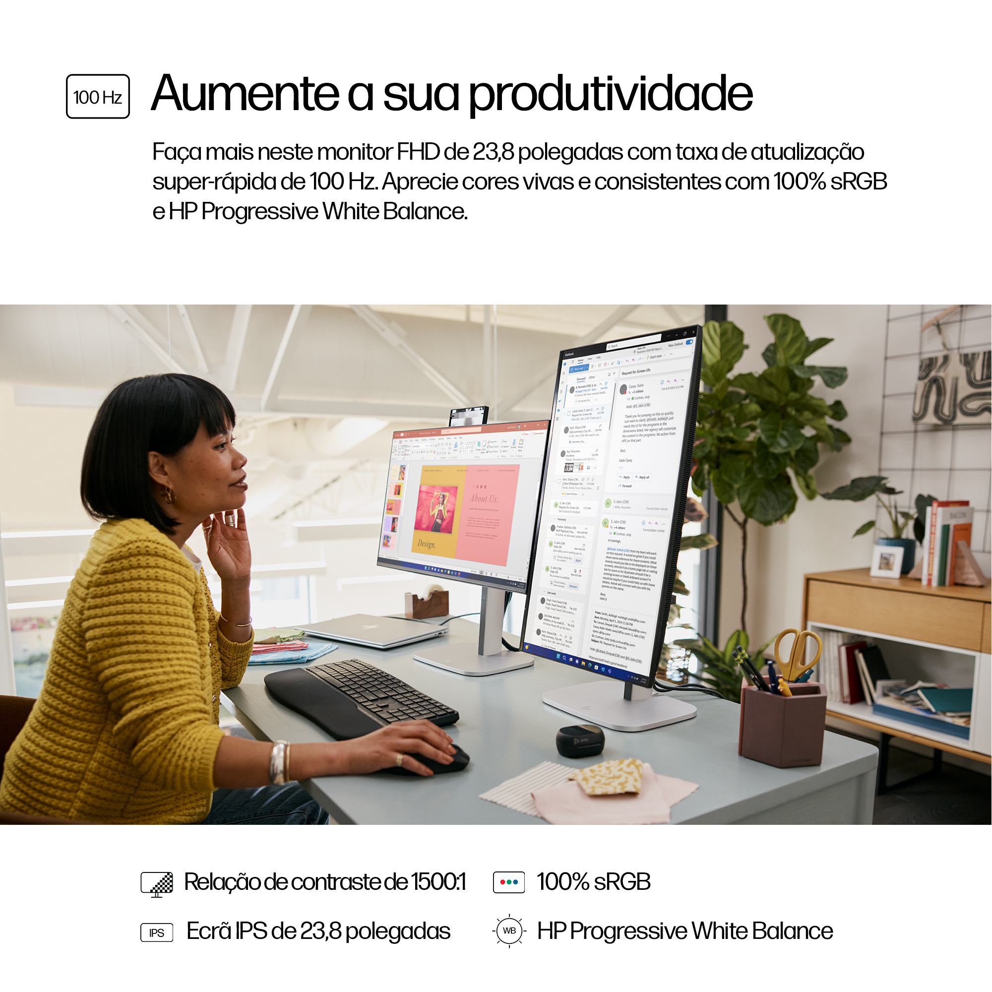 - 23.8 inch Full HD (1920 x 1080) display delivers sharp, clear images for detailed work and presentations.