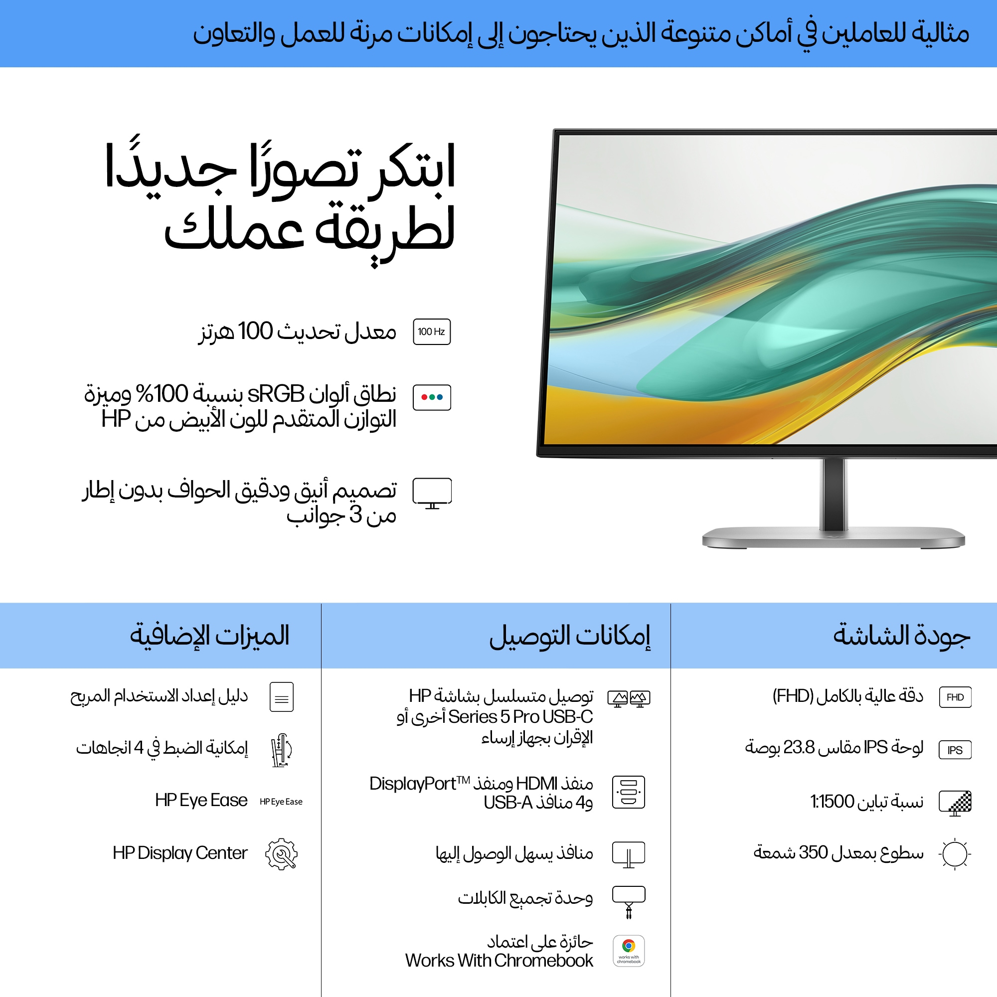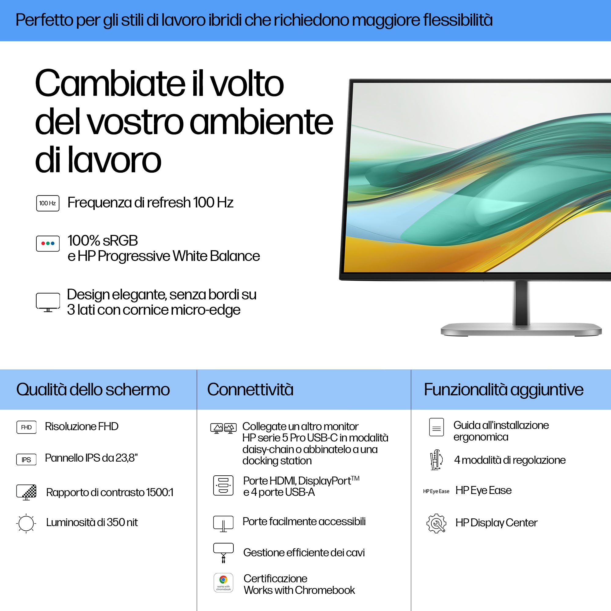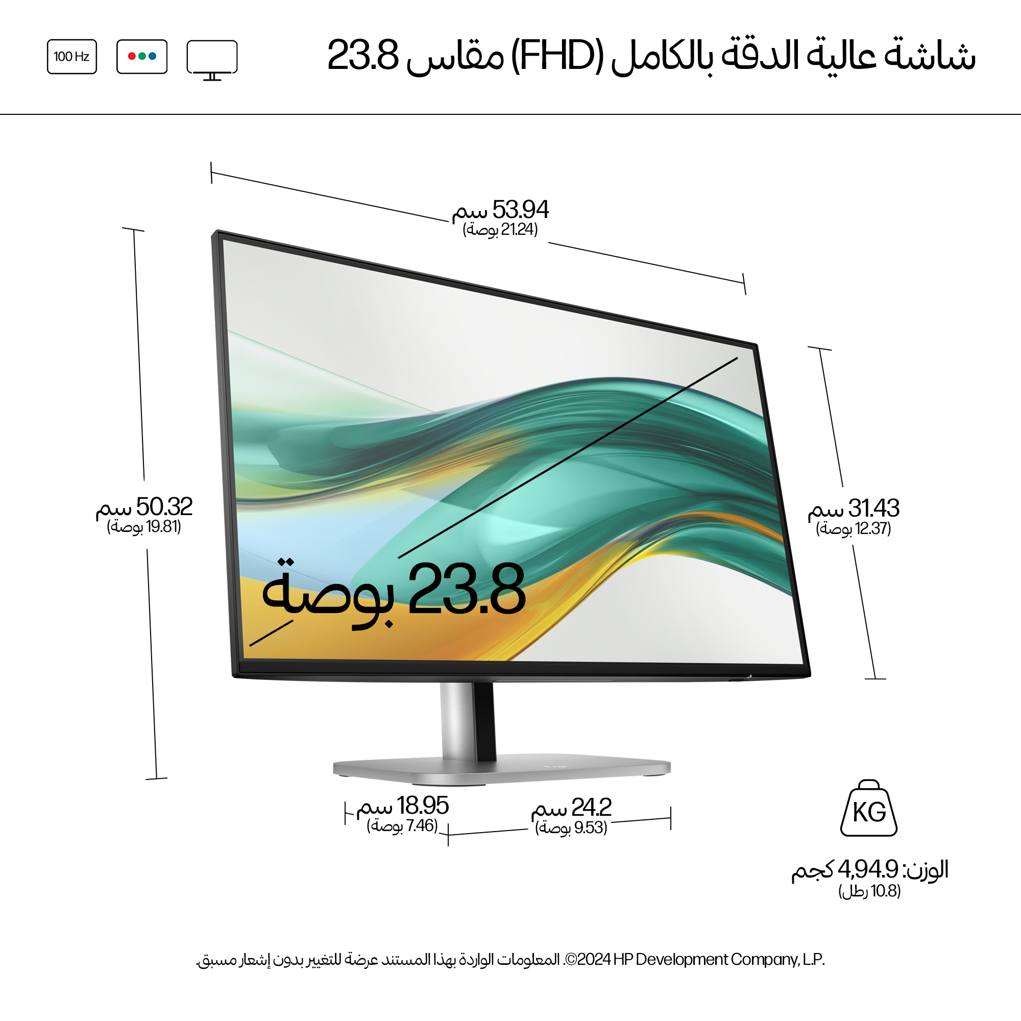- 23.8 inch Full HD (1920 x 1080) display delivers sharp, clear images for detailed work and presentations.
