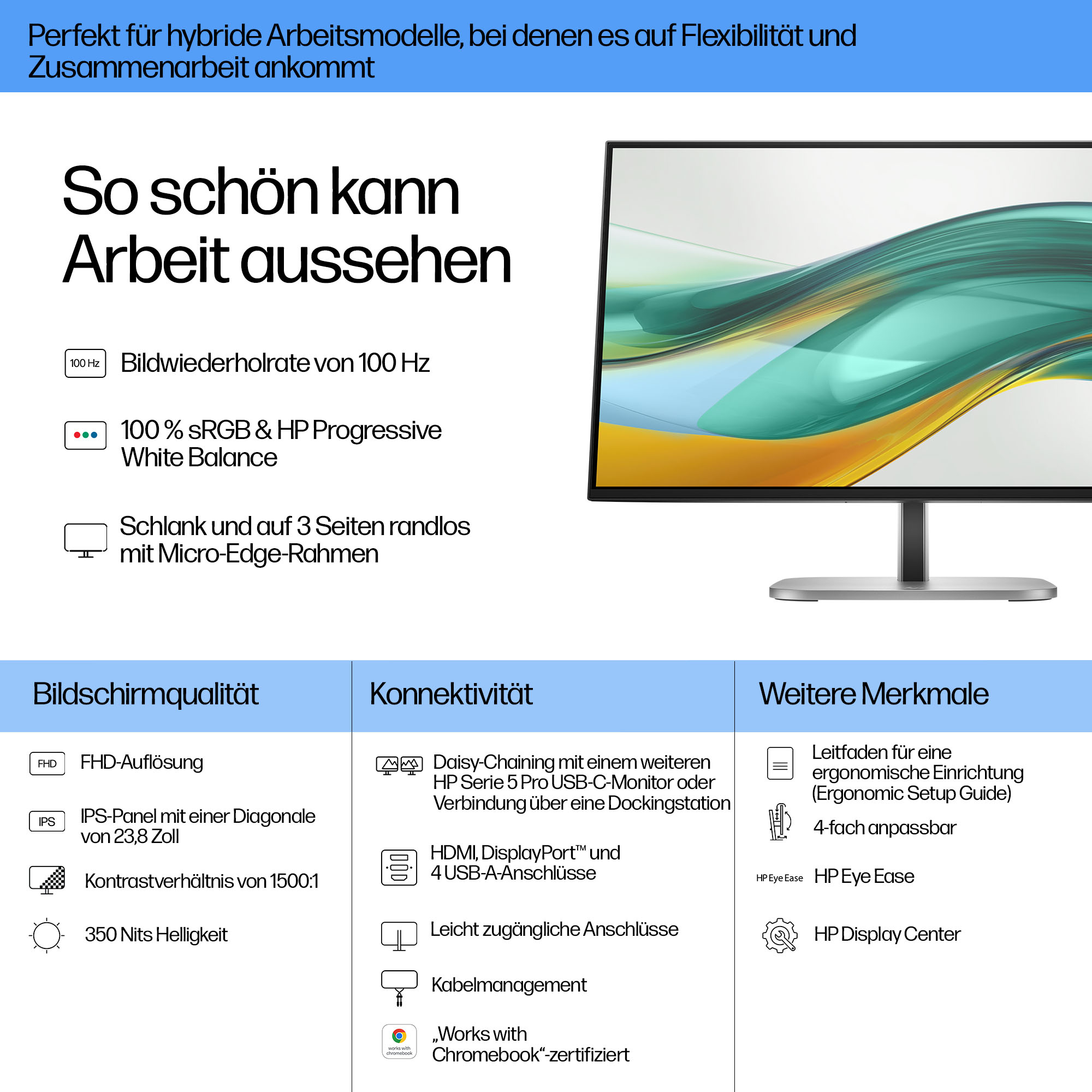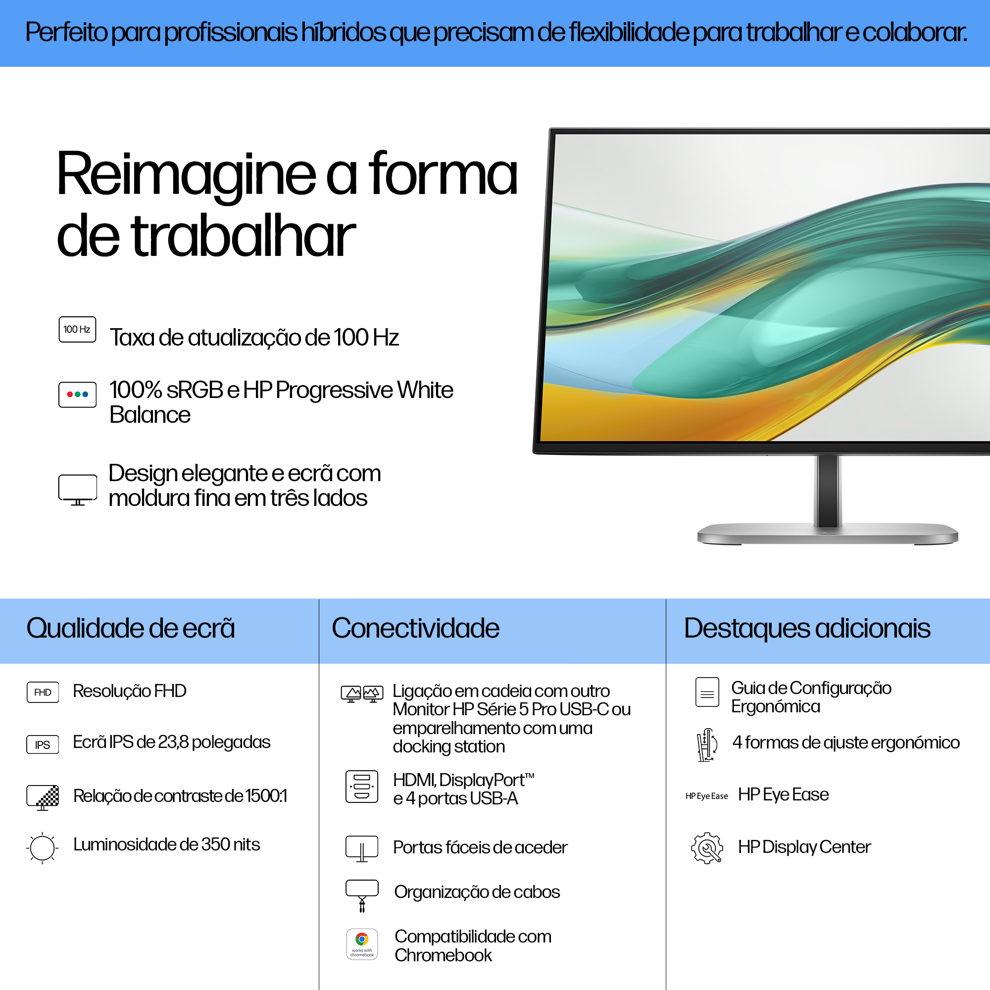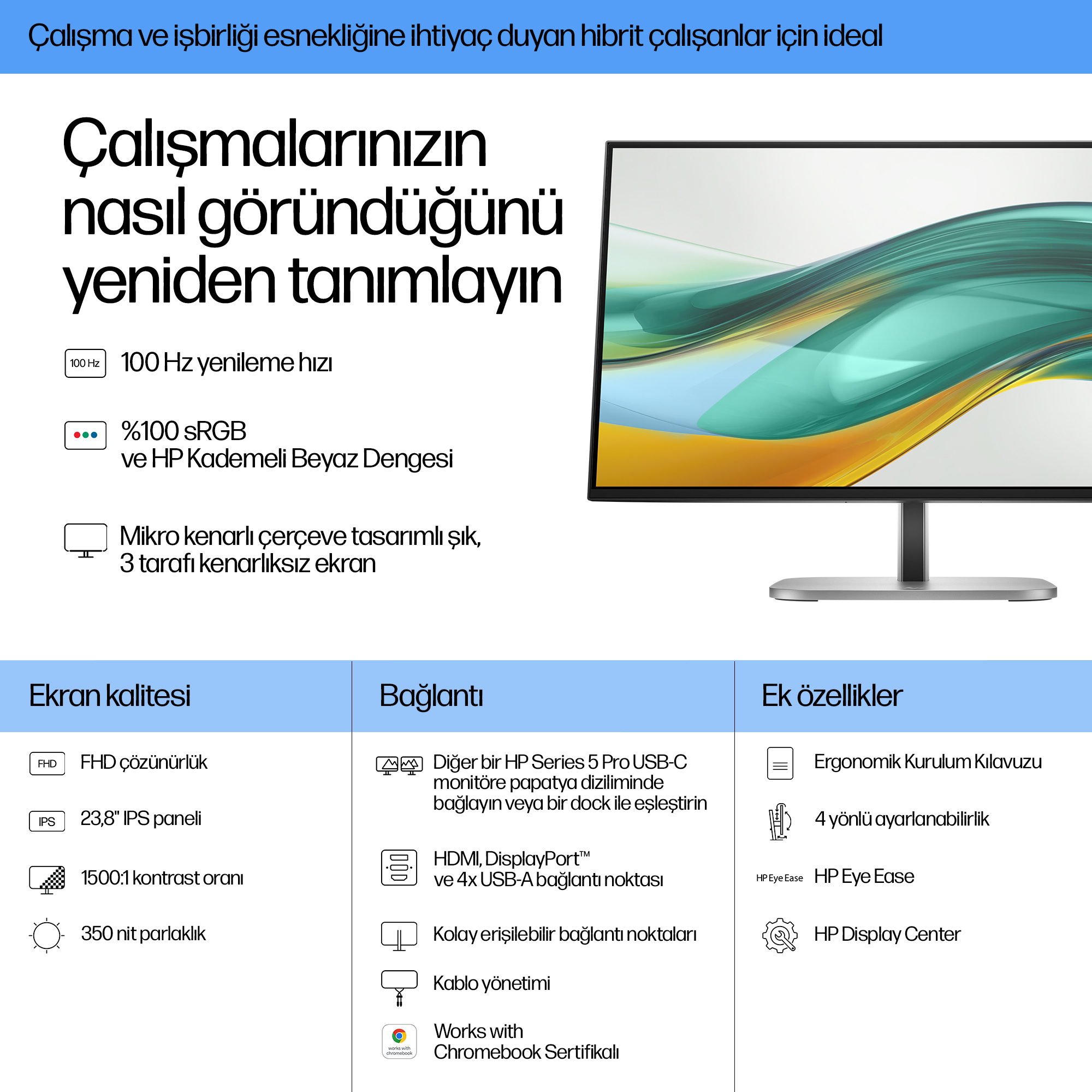 - The monitor’s IPS panel technology ensures consistent colour accuracy and wide viewing angles, critical for collaborative workspaces.