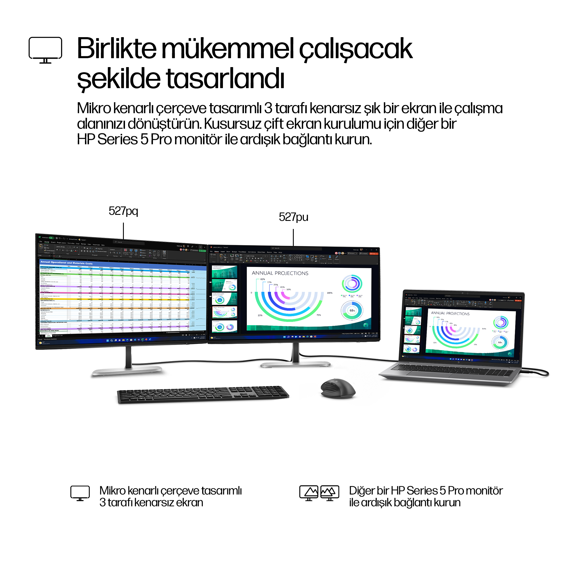 The HP Series 5 Pro 27 inch QHD USB-C Monitor – 527pu computer monitor features a sleek, modern design with narrow bezels that maximise screen space and minimise distractions. Its matte black finish complements professional office settings, while the sturdy adjustable stand offers flexibility and stability. The overall aesthetic balances functionality with a premium look, enhancing any workspace environment.