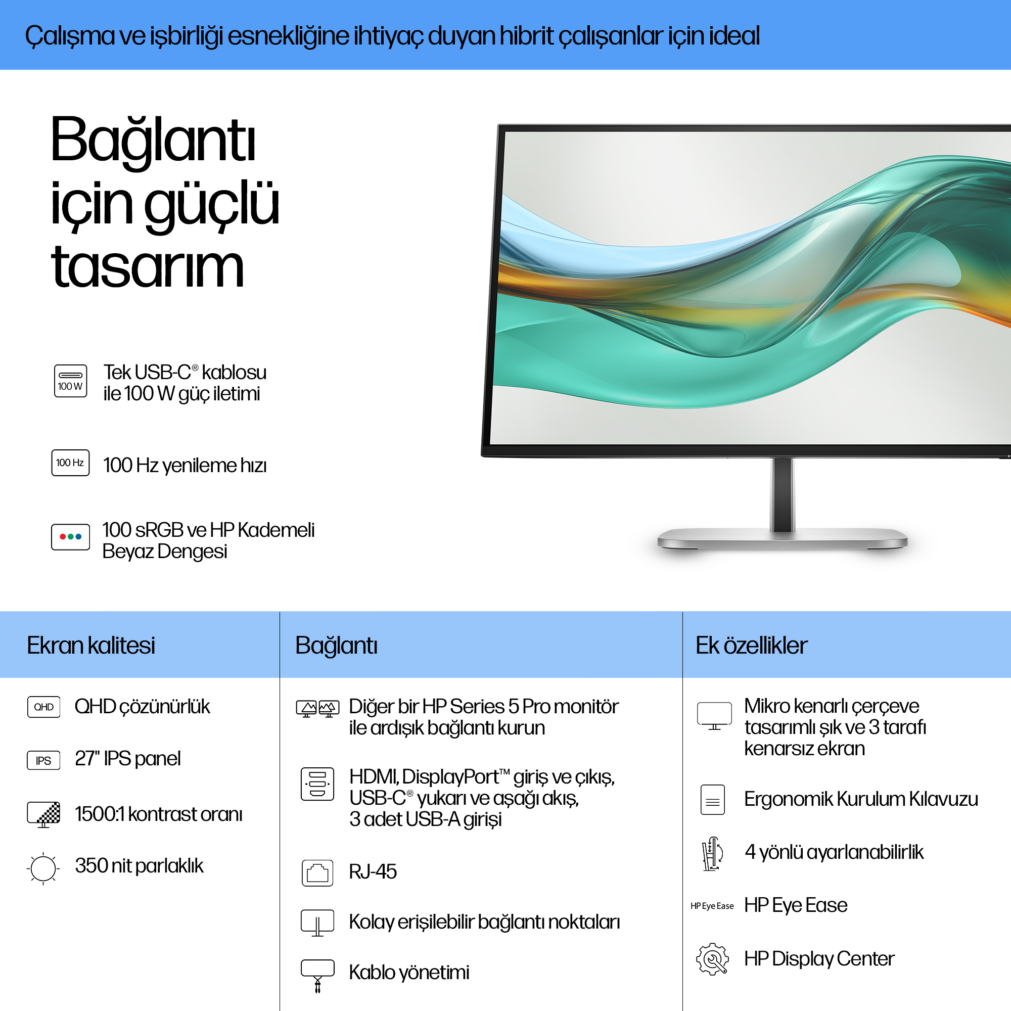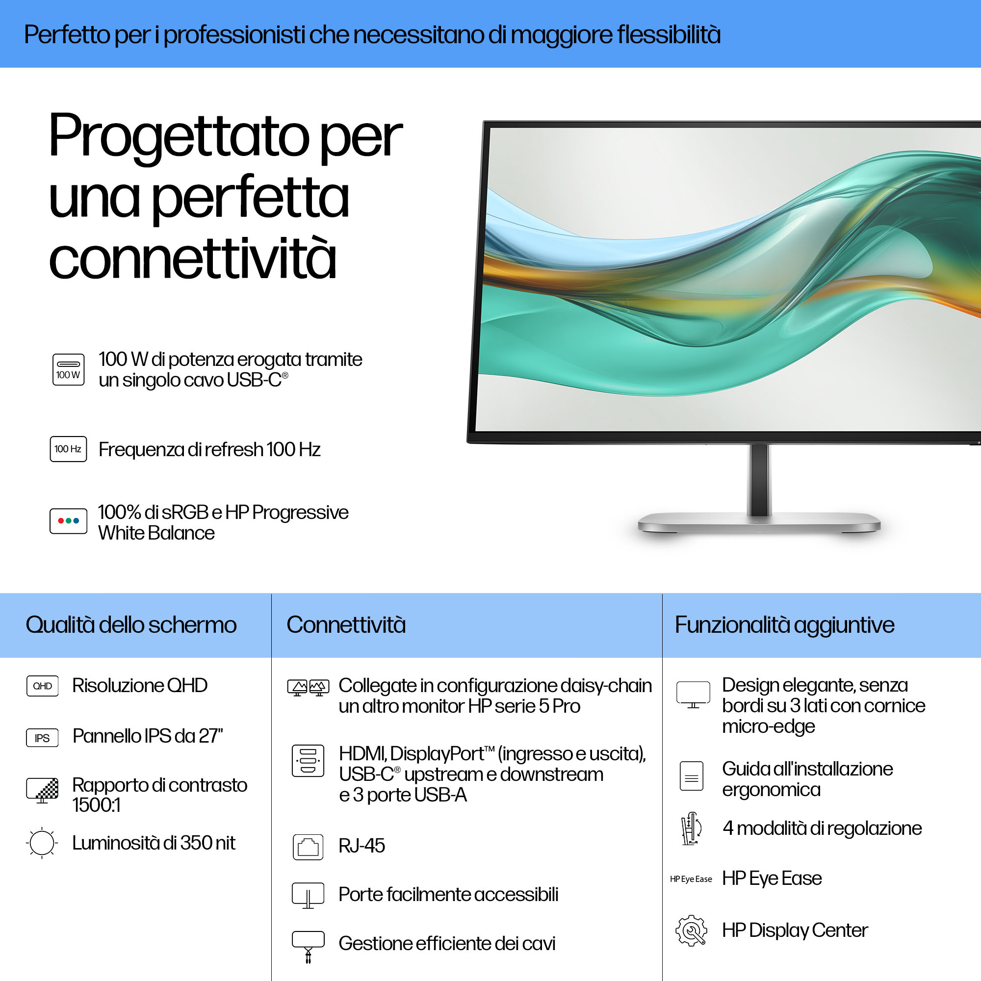 - 27-inch QHD (2560 x 1440) resolution delivers sharp, detailed visuals ideal for design, data analysis, and video conferencing.