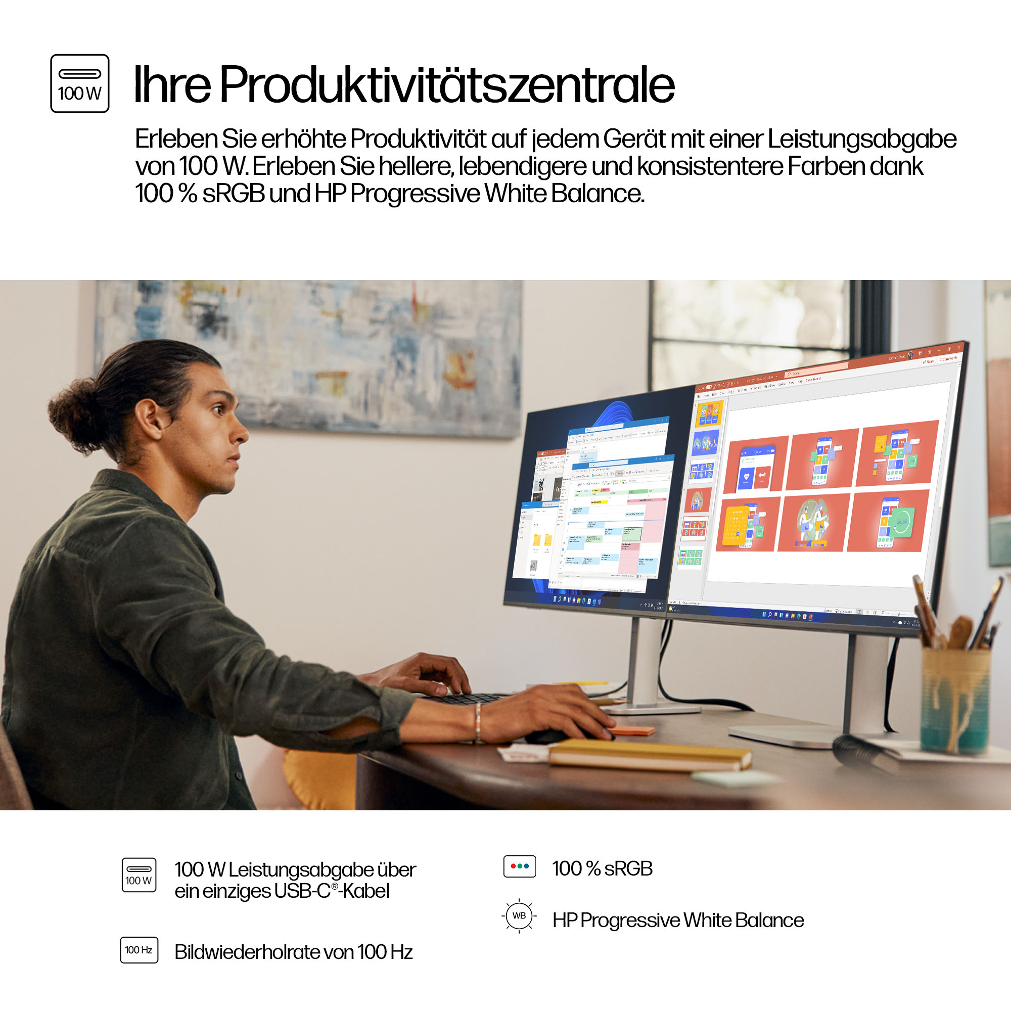 - USB-C connectivity simplifies workspace setup by combining video, data, and power delivery through a single cable.