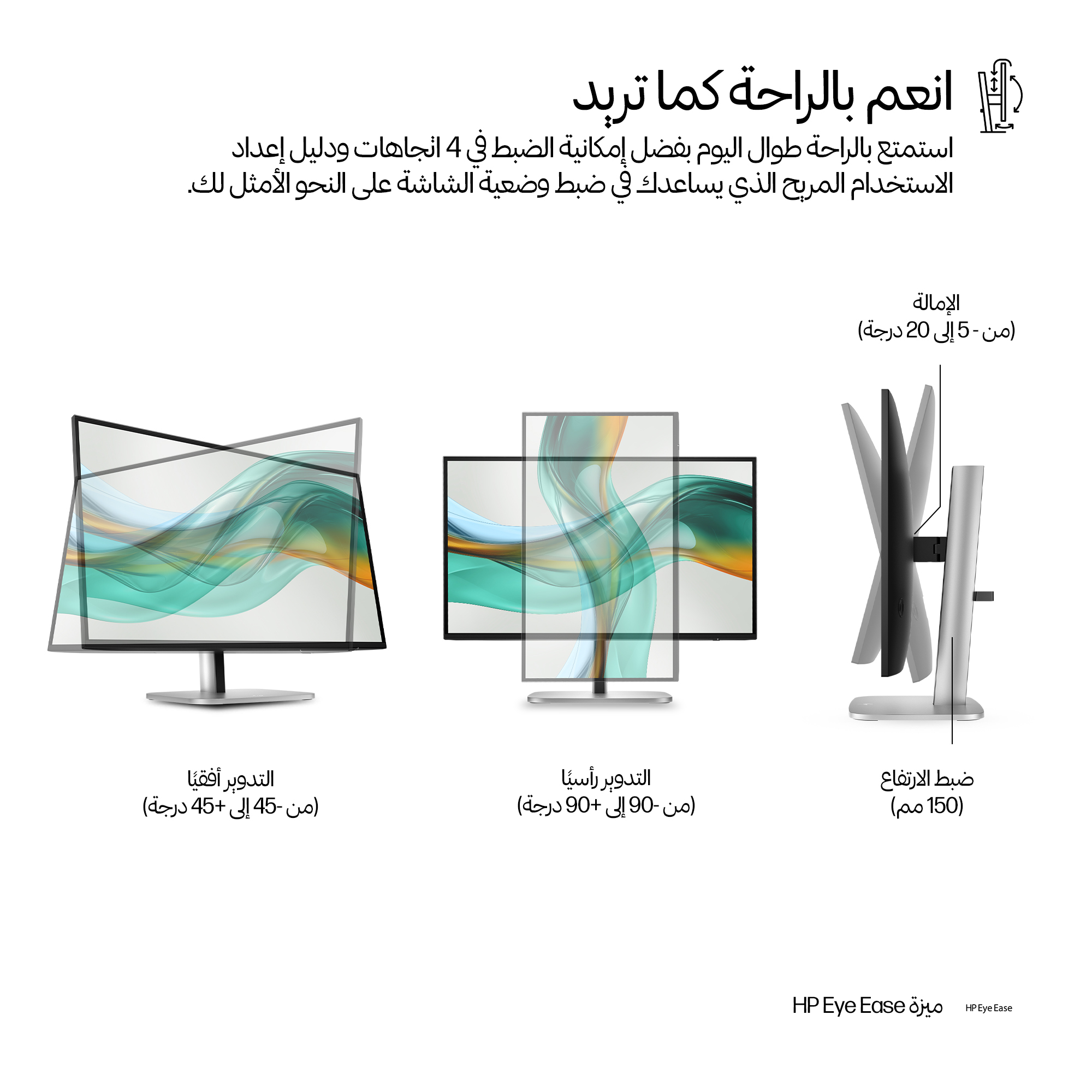 - Ergonomic adjustable stand supports tilt, swivel, and height adjustments for personalised comfort during long work hours.