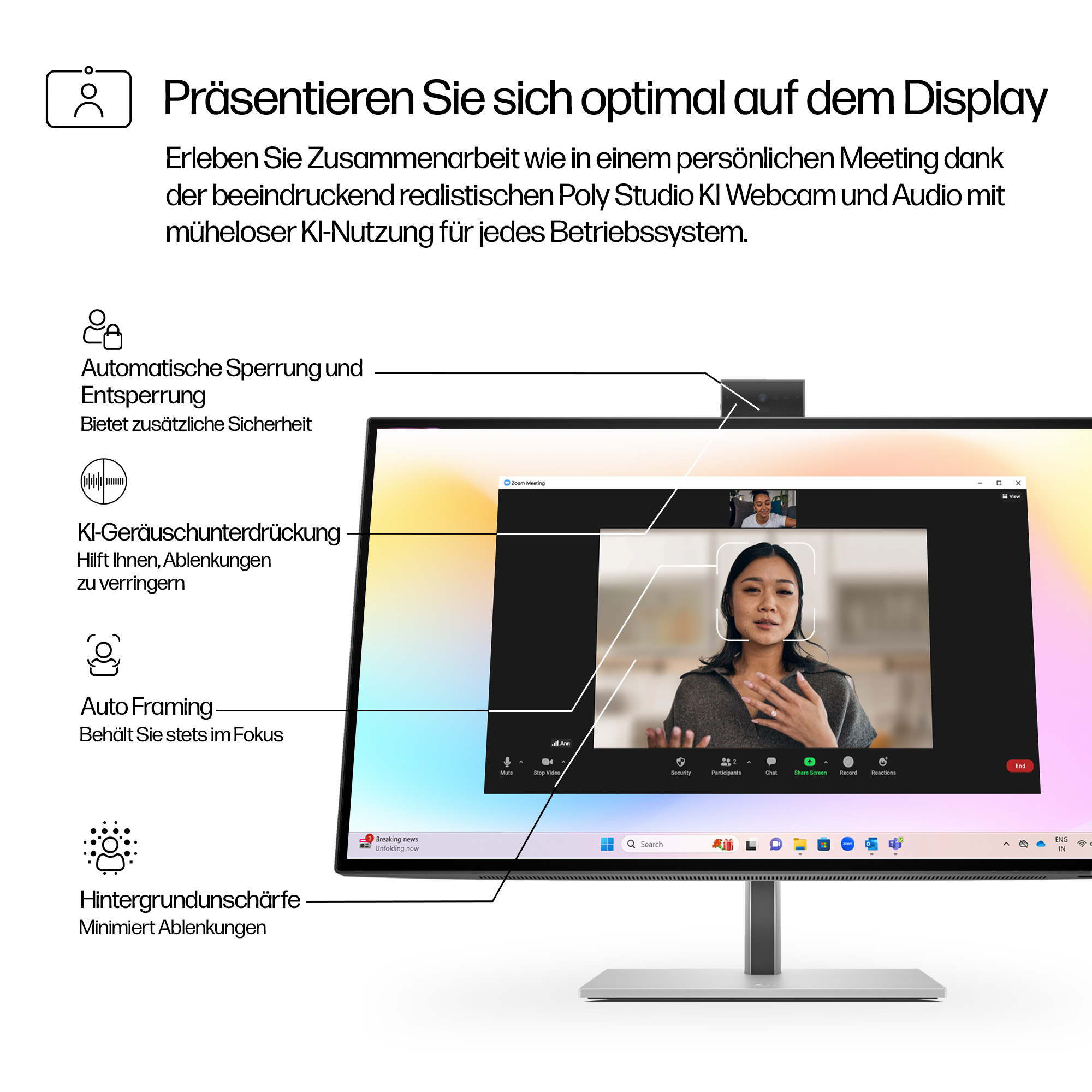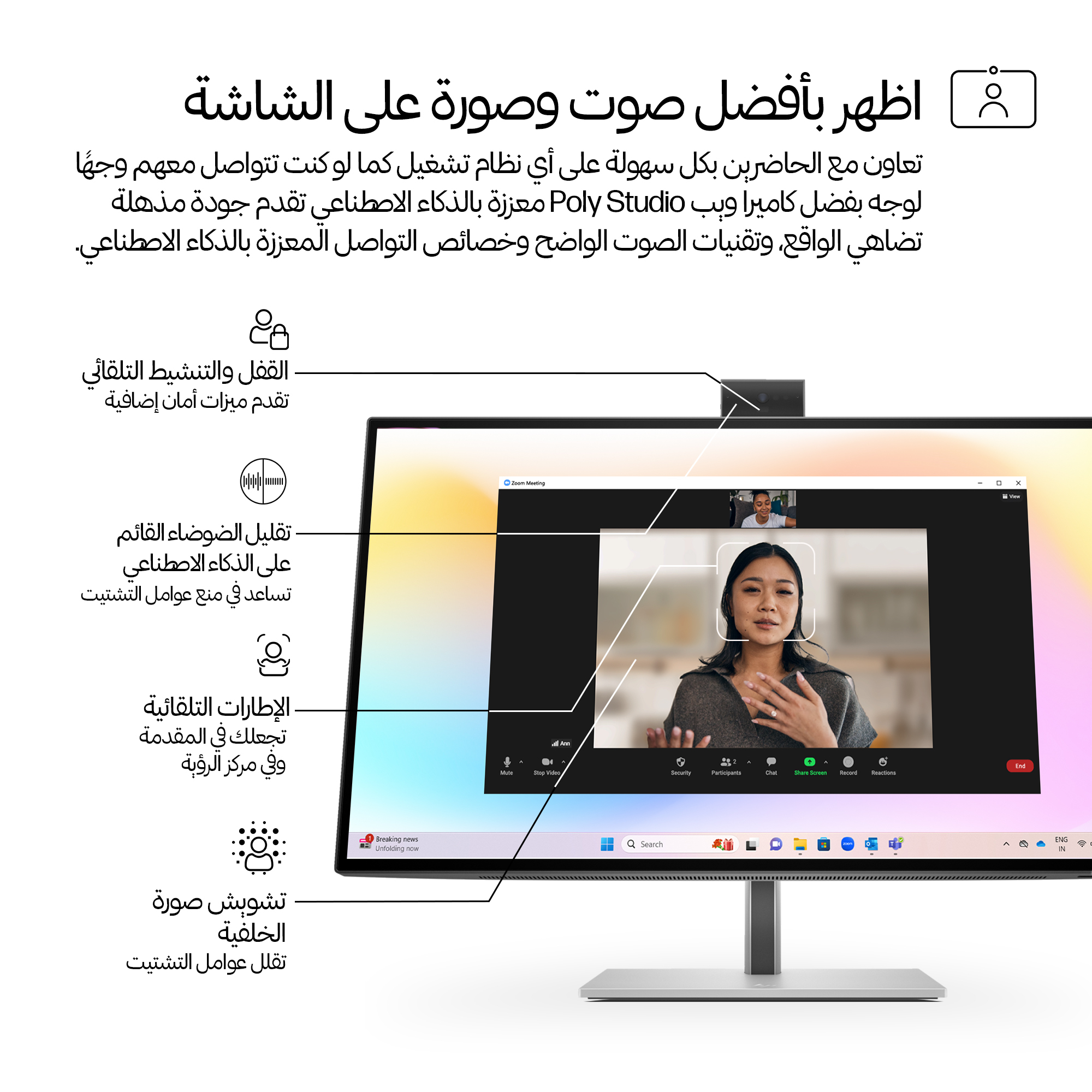 - Stunning 27-inch 4K UHD display delivers exceptional image clarity for detailed presentations and video conferencing.