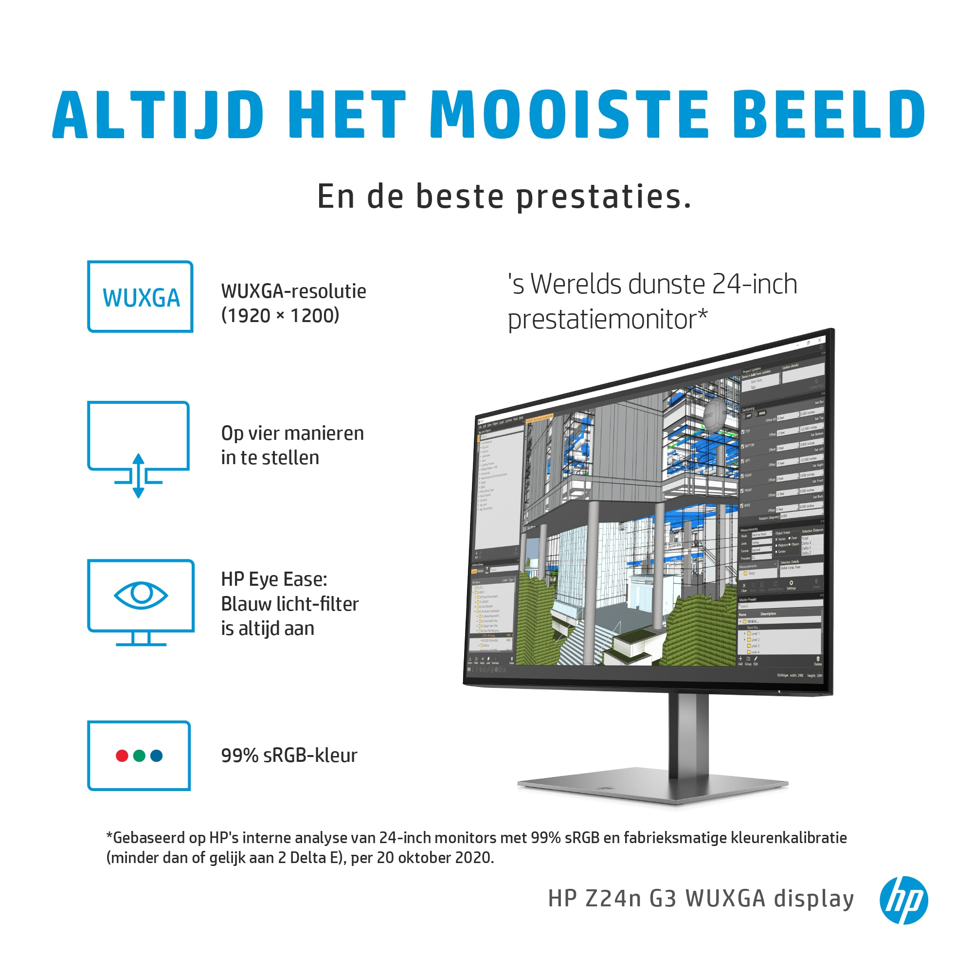 - 24-inch WUXGA (1920 x 1200) resolution for sharp, clear images and enhanced screen real estate.