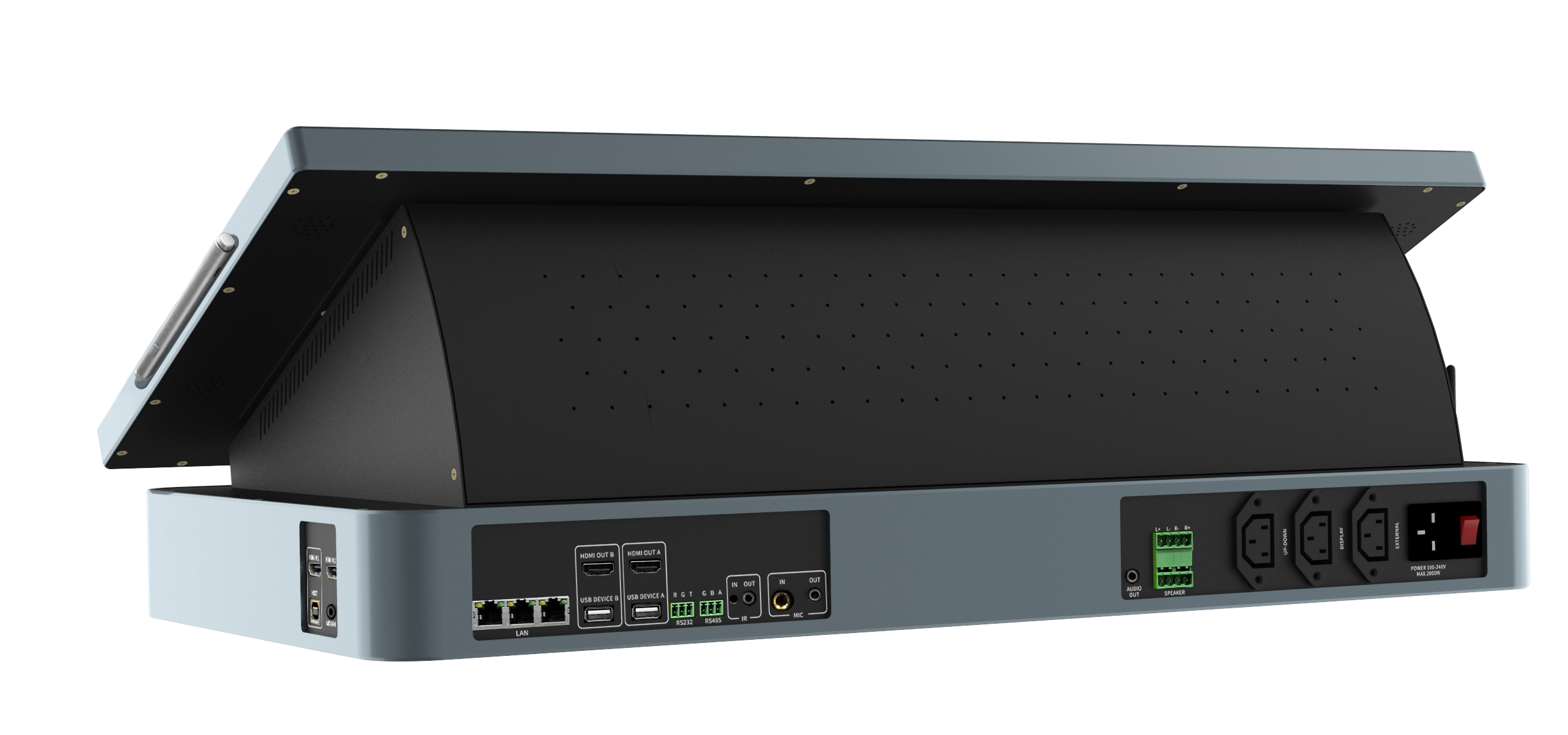 - The podium features a high-resolution touchscreen with multi-touch capabilities, enabling intuitive control and annotation during presentations.