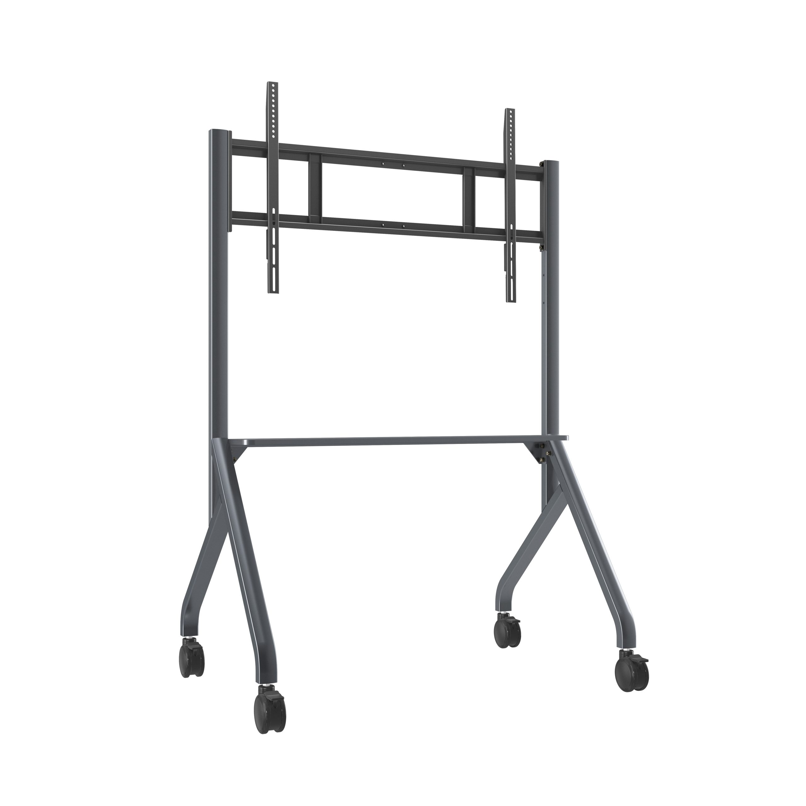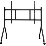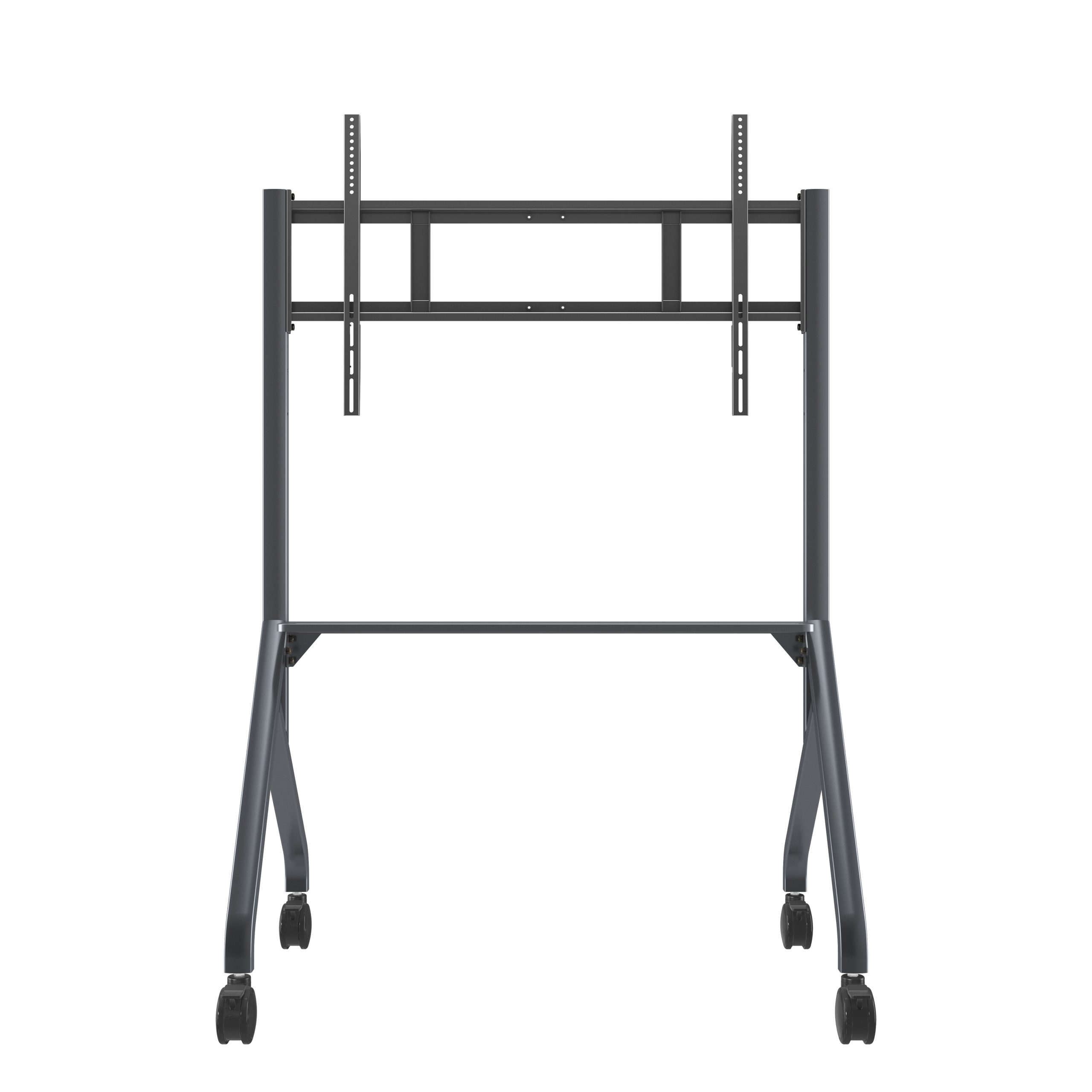 The IQTouch Mobile Stand – Fixed Height (65′-86′ + 98′-110′) features a sleek, professional design with a matte black finish that complements modern office aesthetics. Its sturdy frame conveys reliability while maintaining a minimalist profile to avoid visual clutter. The smooth casters and integrated cable management enhance usability without compromising on style. Overall, it offers a balanced blend of form and function suitable for any corporate environment.