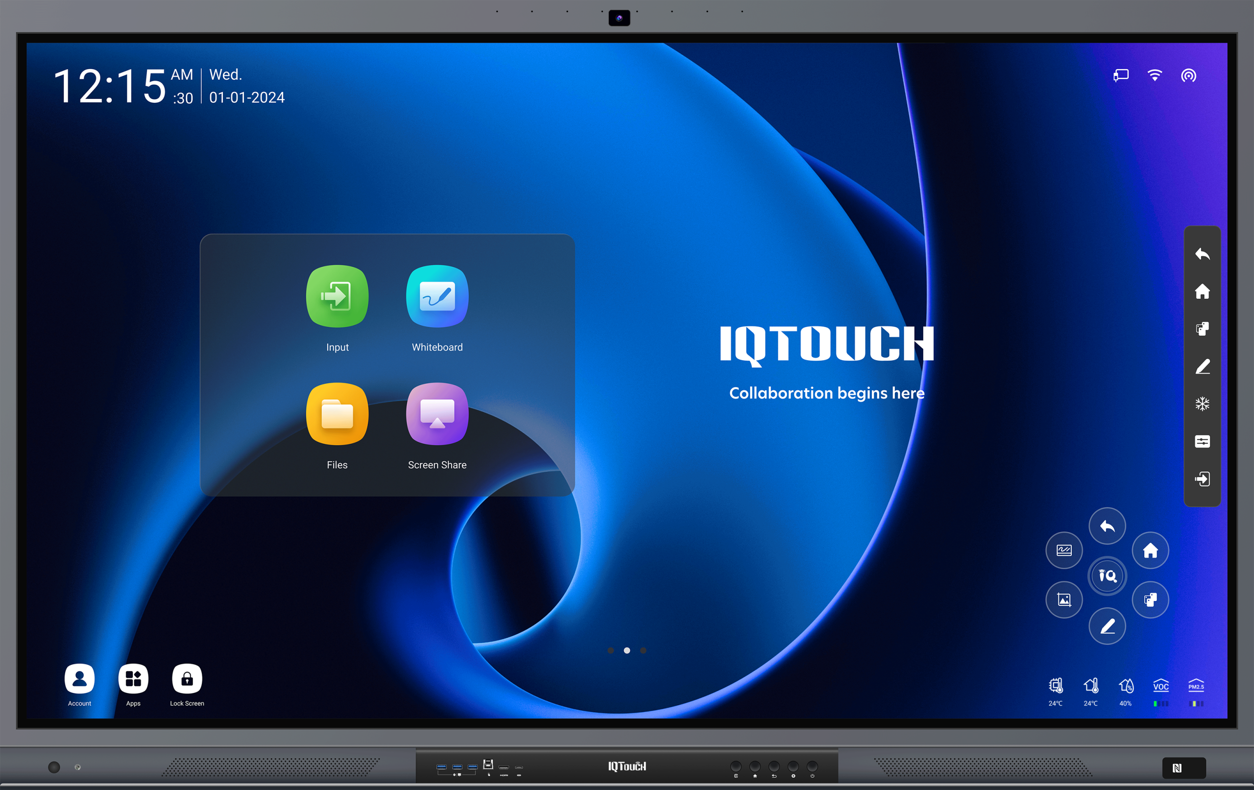 The IQTOUCH Q-SERIES QA1300 Pro boasts a sleek, modern design with slim bezels that maximise screen real estate and provide an immersive viewing experience. Its robust build quality ensures durability, while the minimalist aesthetic complements any professional workspace. The intuitive touch interface feels responsive and natural, encouraging user engagement and collaboration.