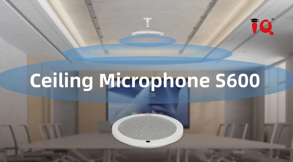 - The IQTouch S600 ceiling mic utilises beamforming technology to focus on active speakers, delivering clear audio even in acoustically challenging environments.