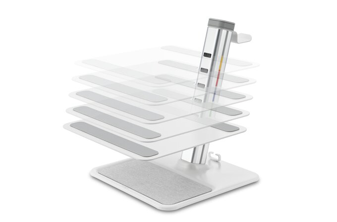 - By elevating the laptop screen, it encourages better posture, which can reduce workplace injuries and improve employee wellbeing.