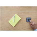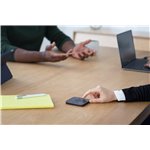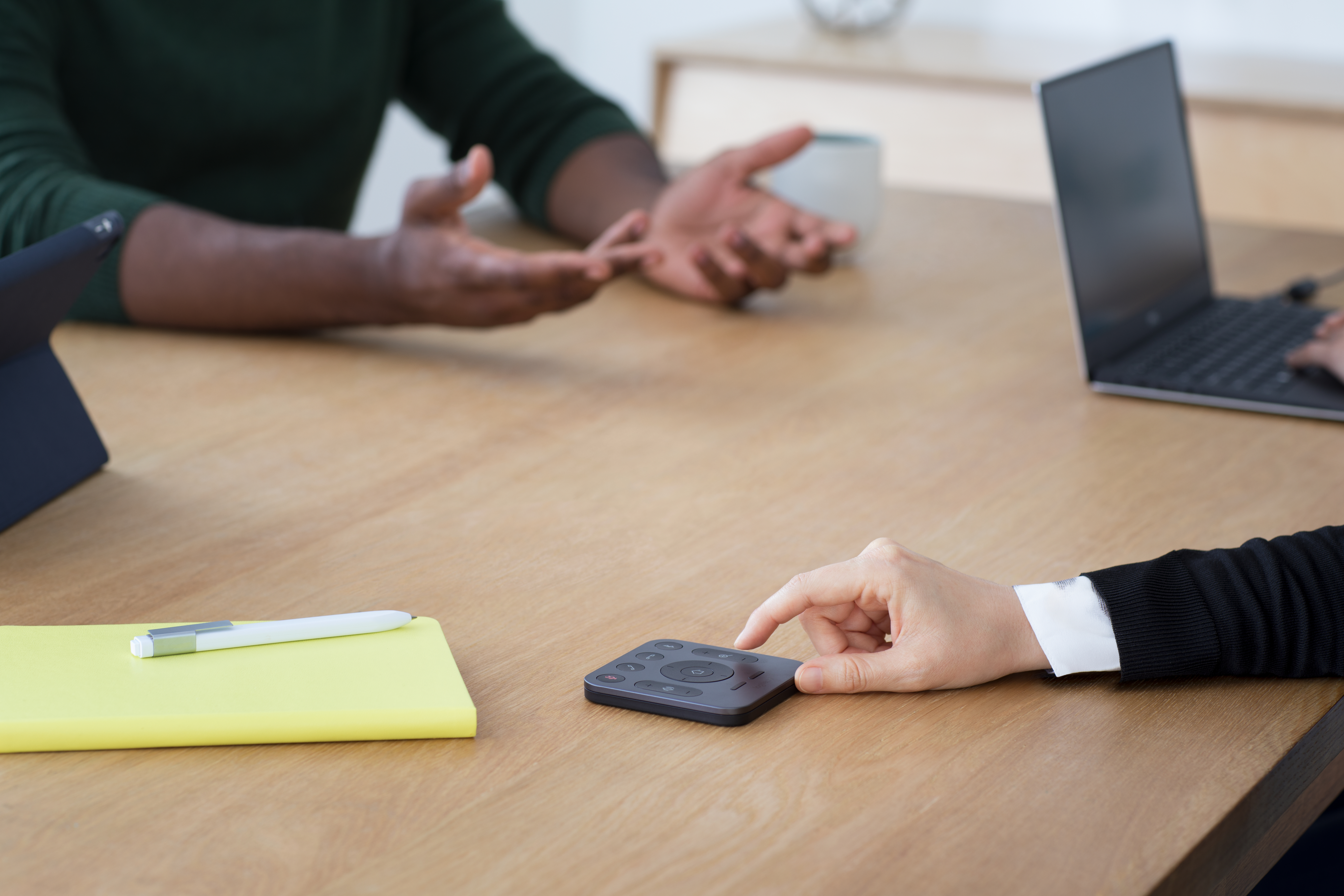 The Logitech MeetUp remote control features a sleek, minimalist design with a matte finish that complements modern office aesthetics. Its compact size fits comfortably in the hand, while the well-spaced buttons provide tactile feedback for intuitive operation. The remote’s lightweight build ensures it can be easily passed around or stored when not in use, making it a practical addition to any meeting room.