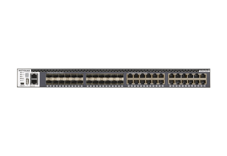 - The NETGEAR M4300-24X24F network switch features 24 fixed 10GBASE-T ports and 24 fixed 10GbE SFP+ ports, delivering versatile connectivity options for diverse network environments.