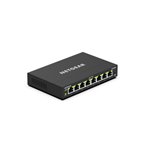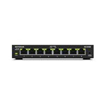 The NETGEAR GS308E network switch features a compact, robust metal chassis with a sleek black finish that fits neatly into any office setup. Its minimalist design includes clear LED indicators for each port, providing at-a-glance status updates. The fanless construction ensures quiet operation, while the sturdy build guarantees durability in demanding business environments.