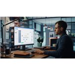 - Ergonomic stand with height, tilt, and swivel adjustments to ensure comfortable, customised viewing for extended work hours.
